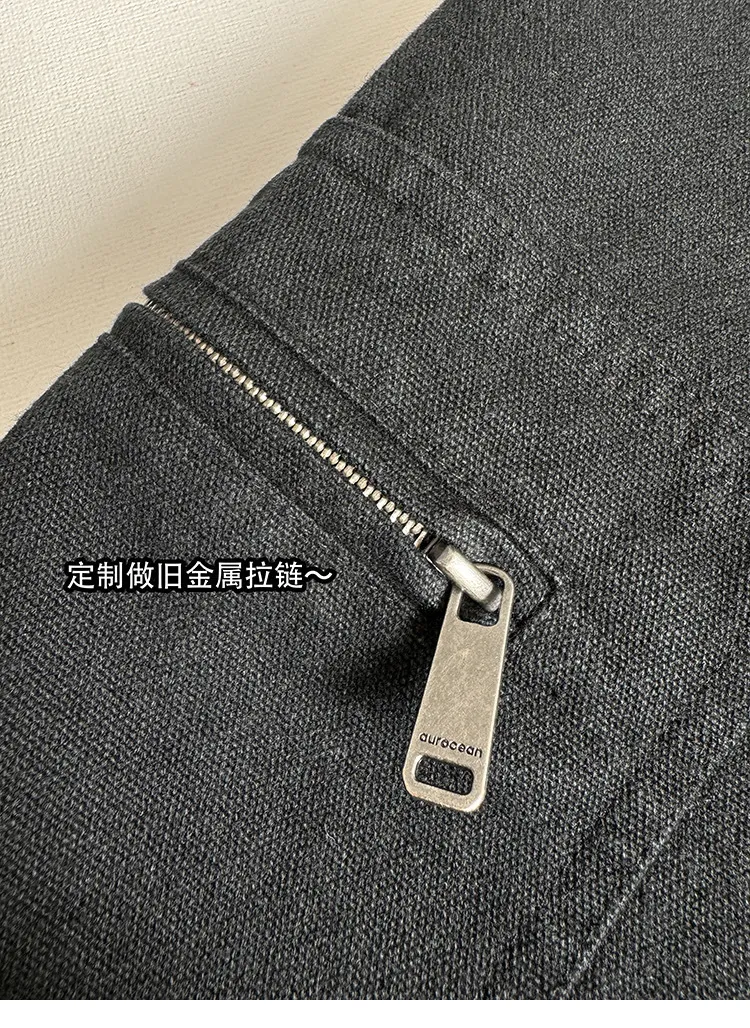 AUROCEAN 男高深灰 復古學院 收褶 闊腿 堆堆褲 西裝褲(深灰色)