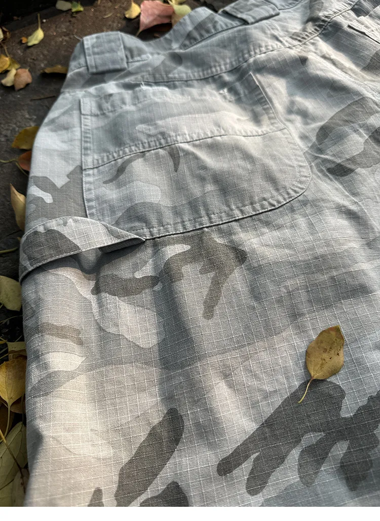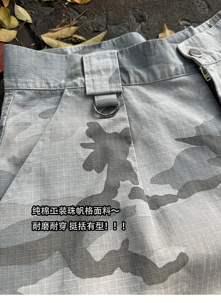 AUROCEAN 灰調 暗紋 破壞 迷彩 寬版 六分褲 短褲(淺灰色)