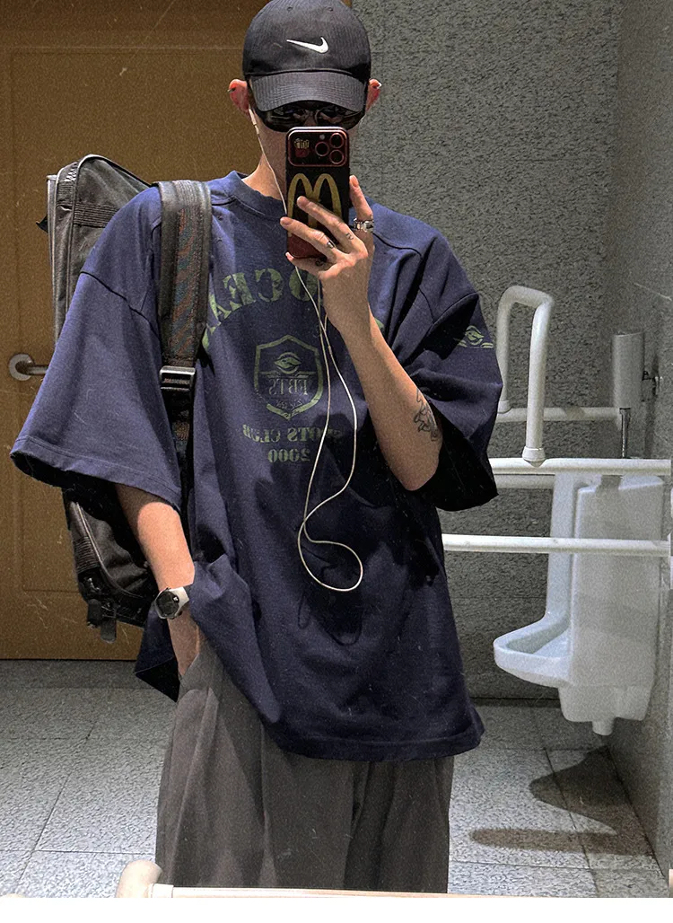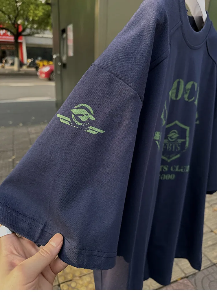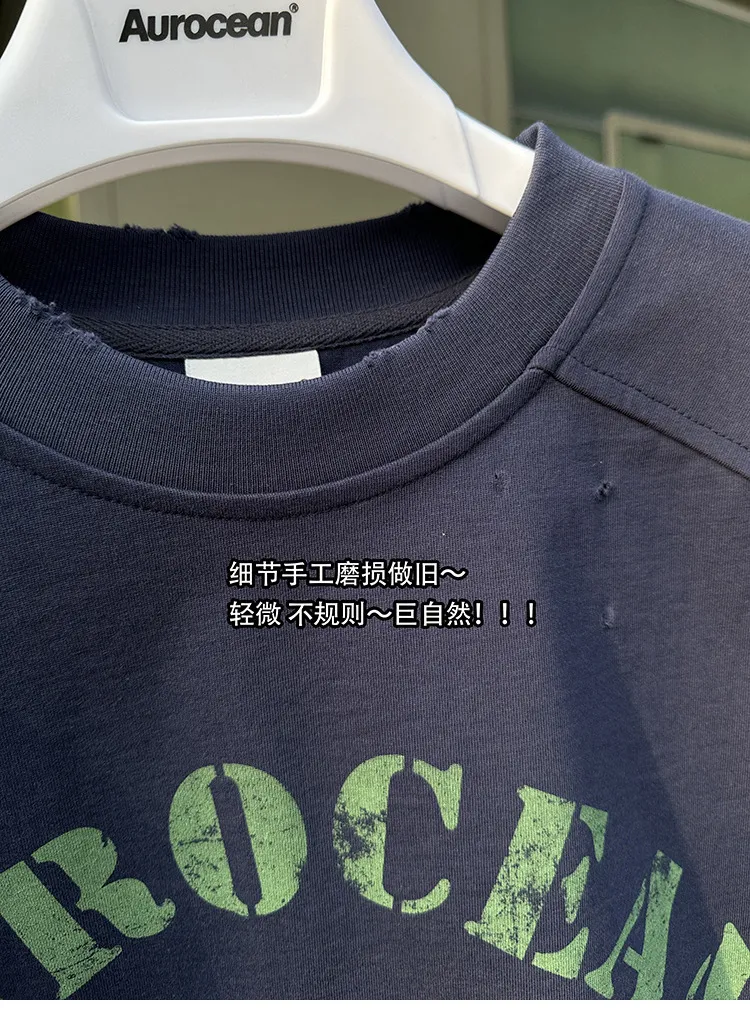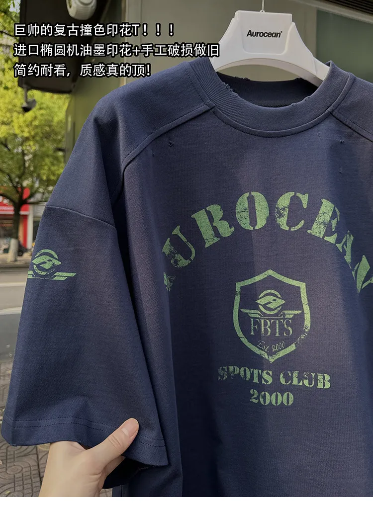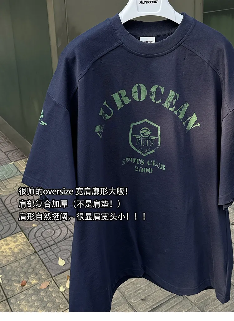 AUROCEAN 破舊油墨 印花 磨損 重磅 短袖 TEE(藏青色)