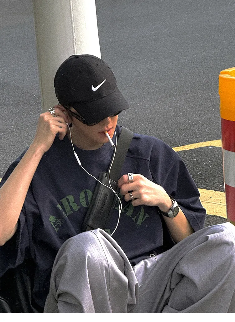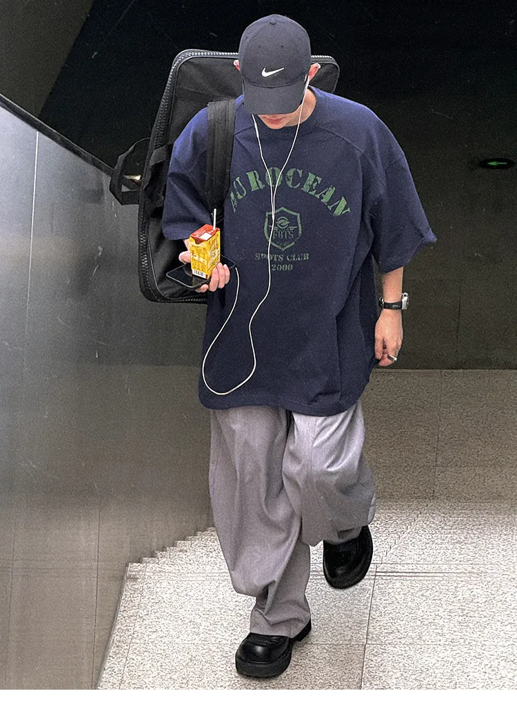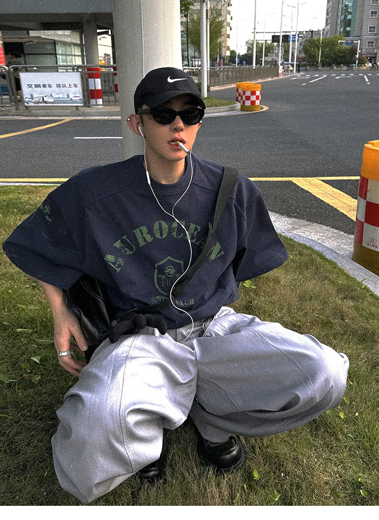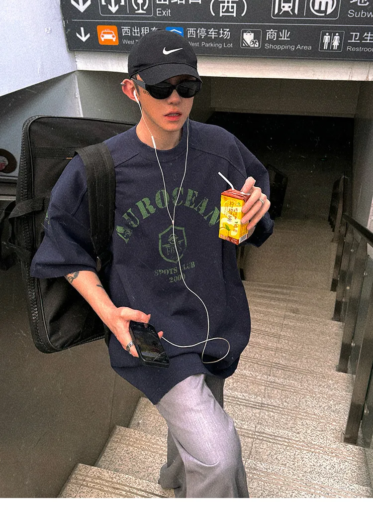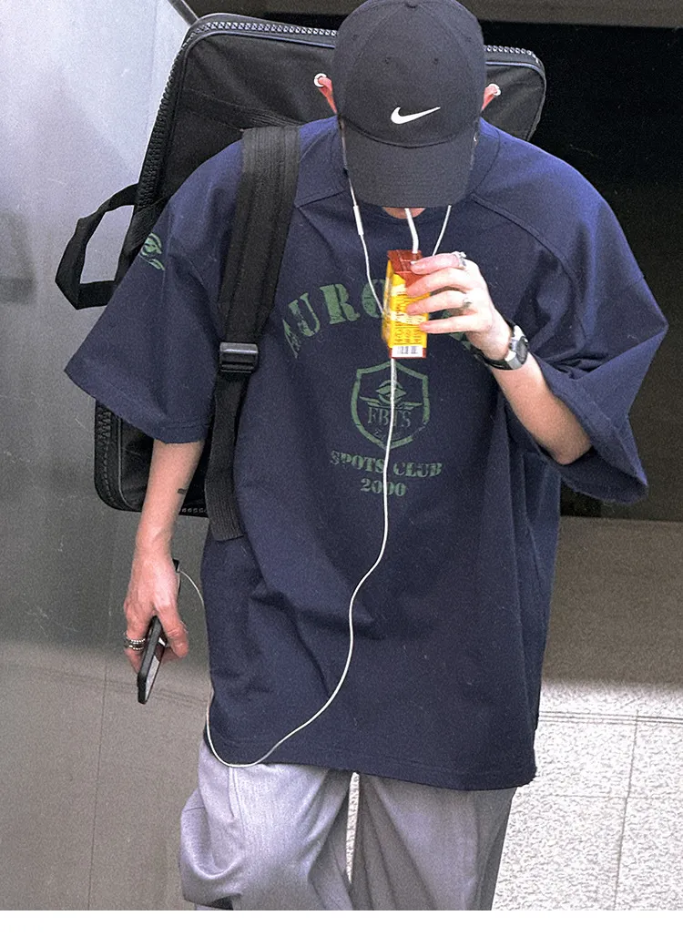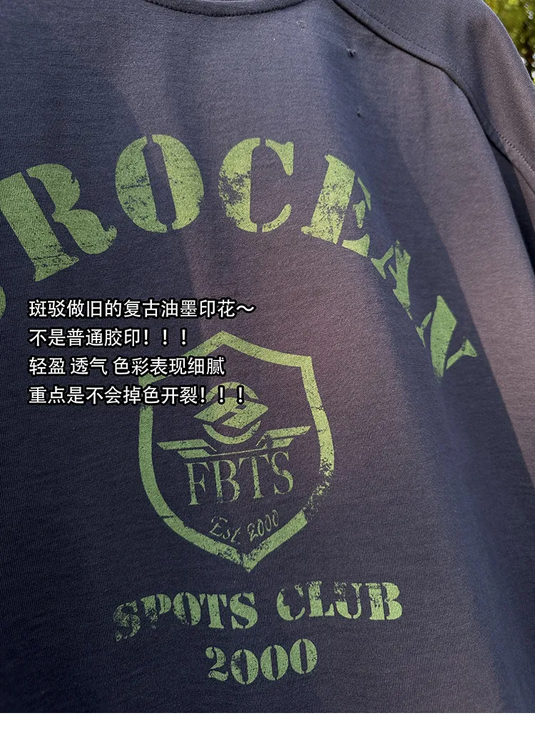 AUROCEAN 破舊油墨 印花 磨損 重磅 短袖 TEE(藏青色)