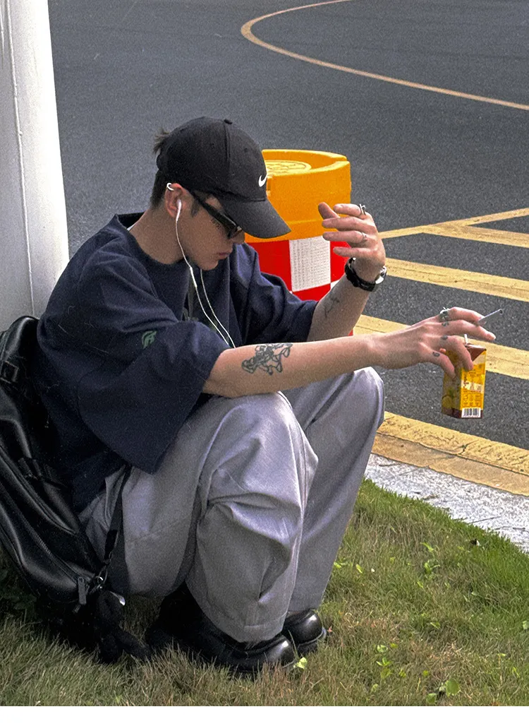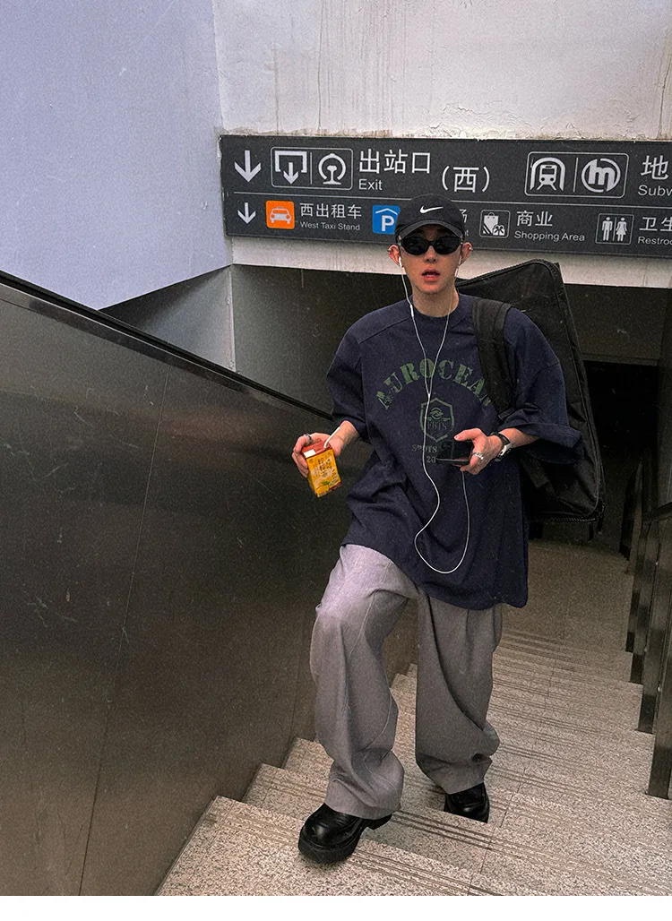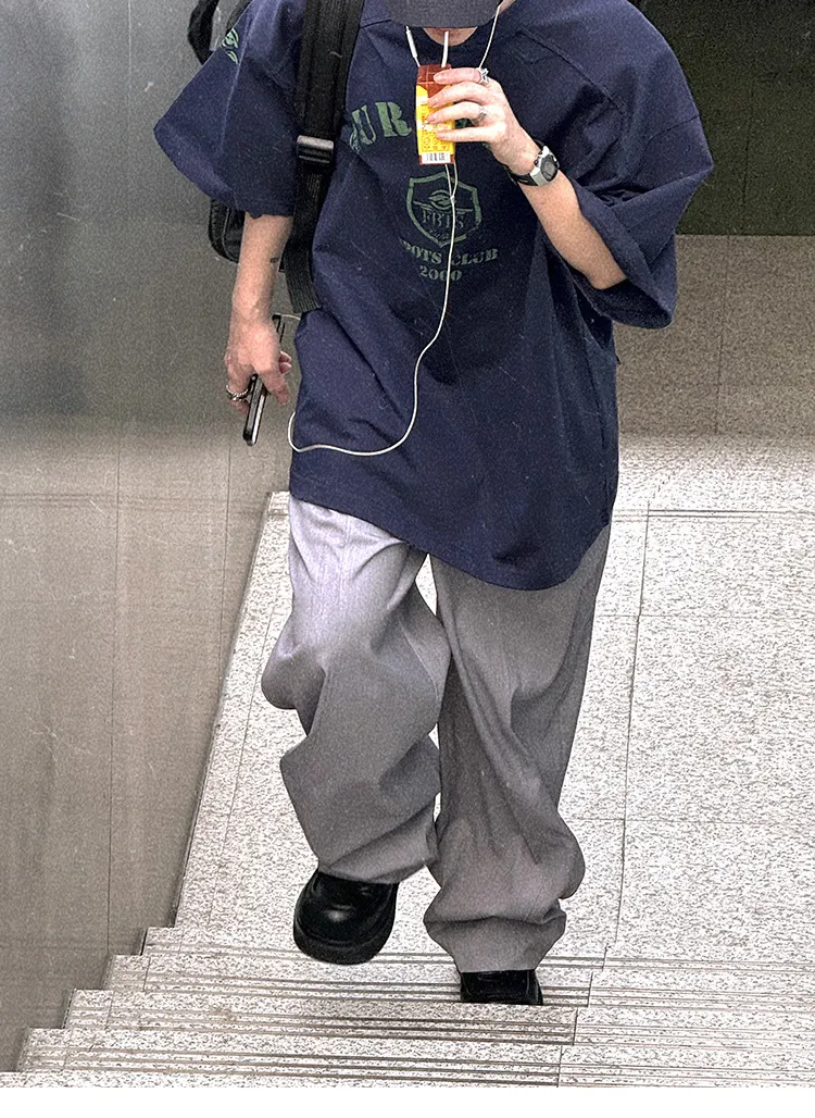 AUROCEAN 男高深灰 復古學院 收褶 闊腿 堆堆褲 西裝褲(深灰色)