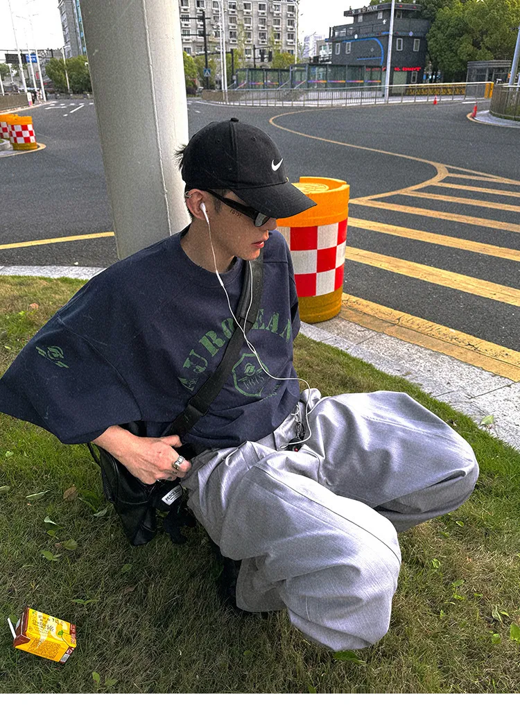 AUROCEAN 訂製水洗 暗紋 破壞 迷彩 闊腿 工裝褲 長褲(淺灰色)