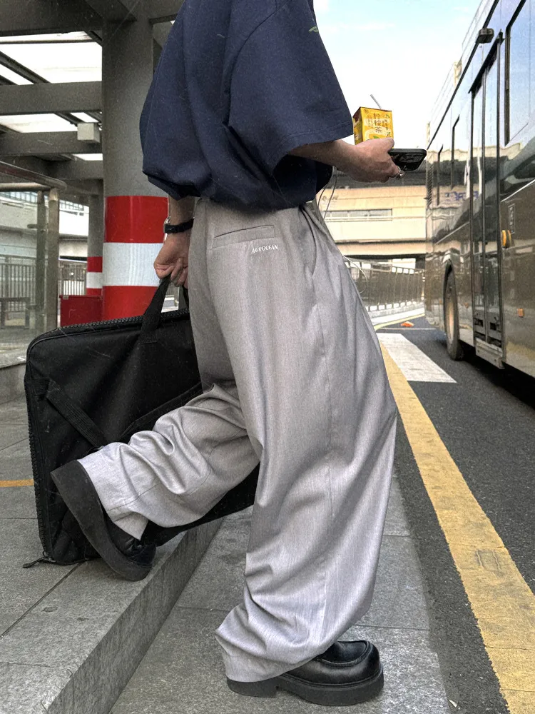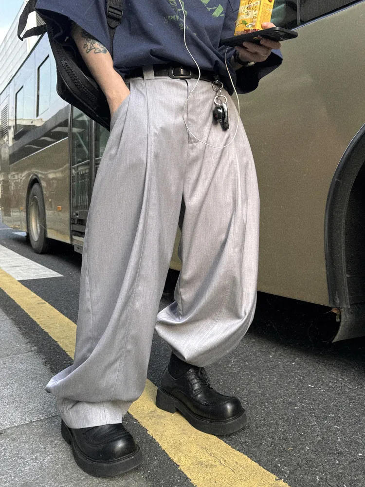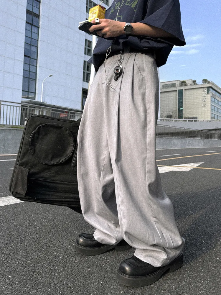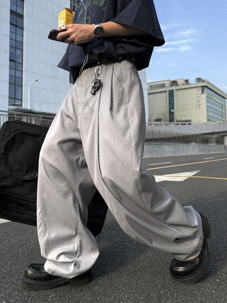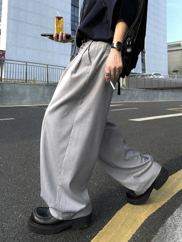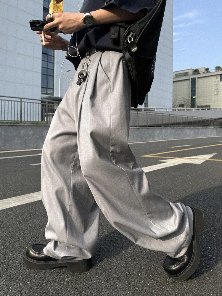 AUROCEAN 男高深灰 復古學院 收褶 闊腿 堆堆褲 西裝褲(深灰色)