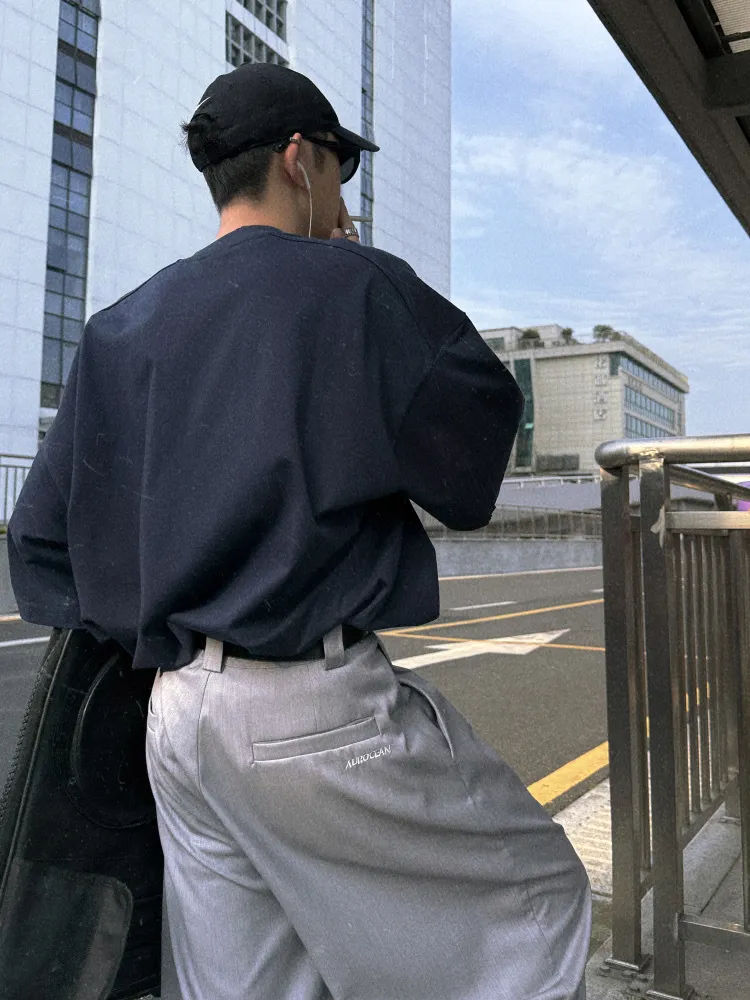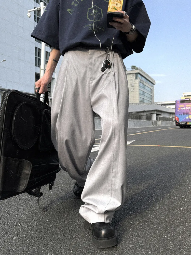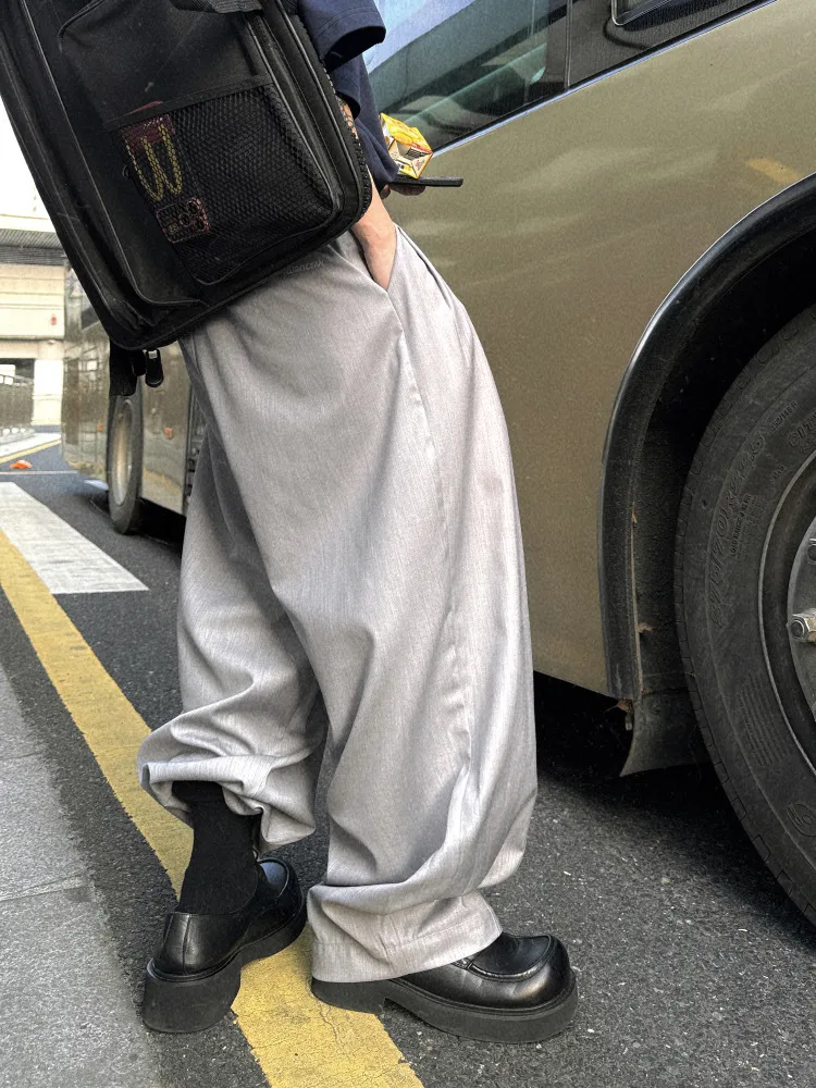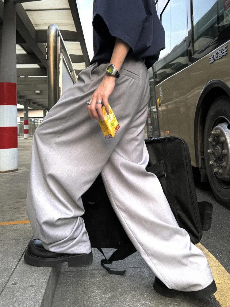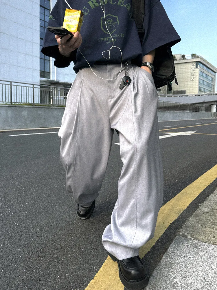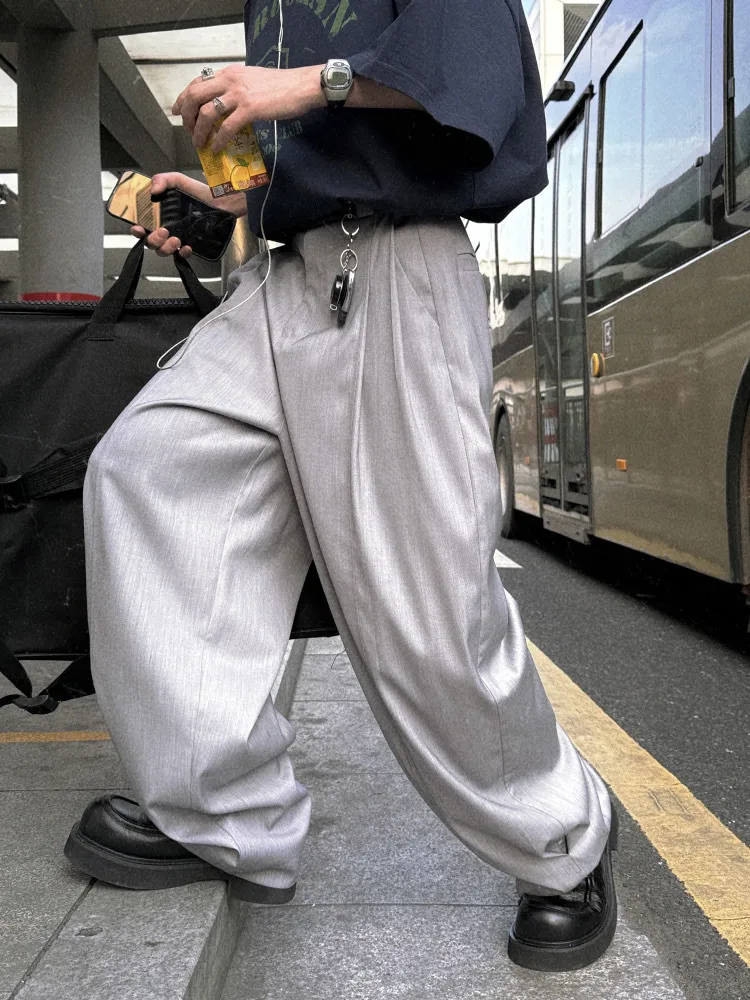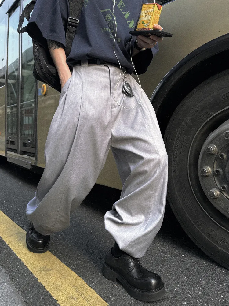 AUROCEAN 男高深灰 復古學院 收褶 闊腿 堆堆褲 西裝褲(深灰色)