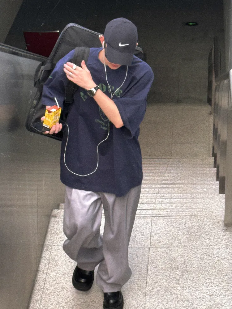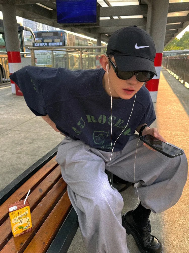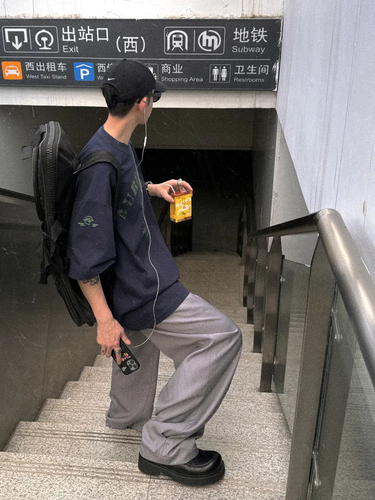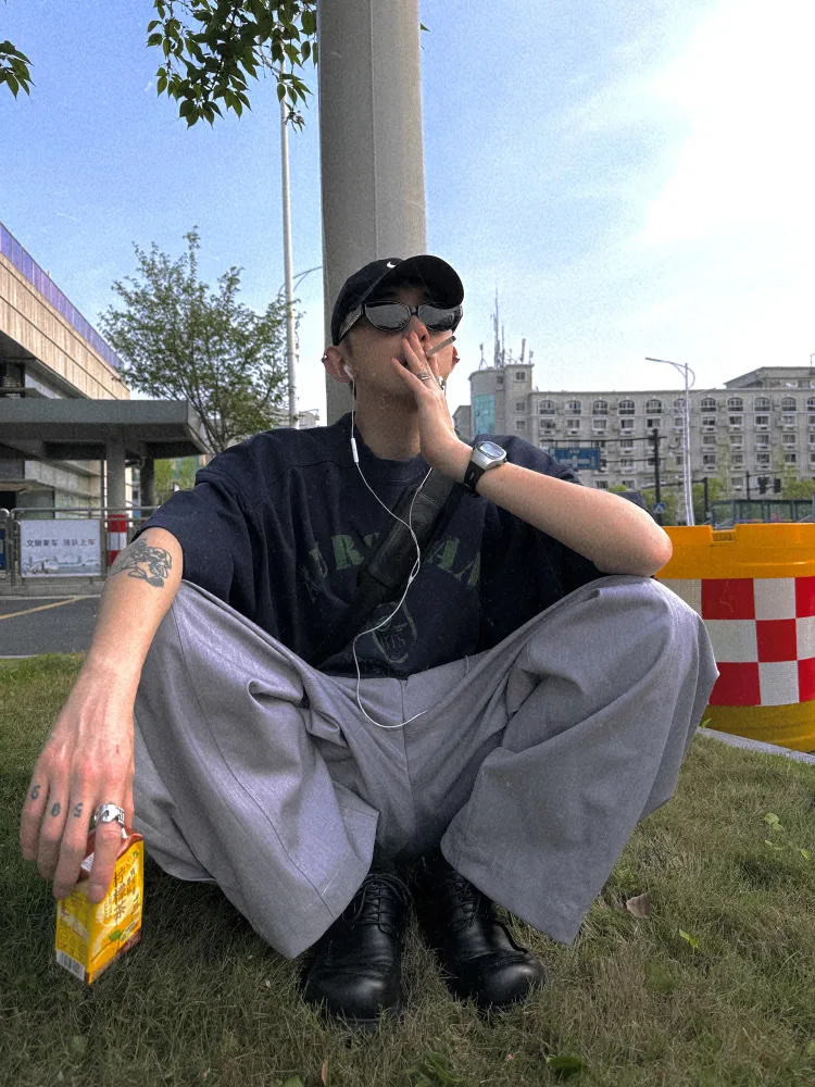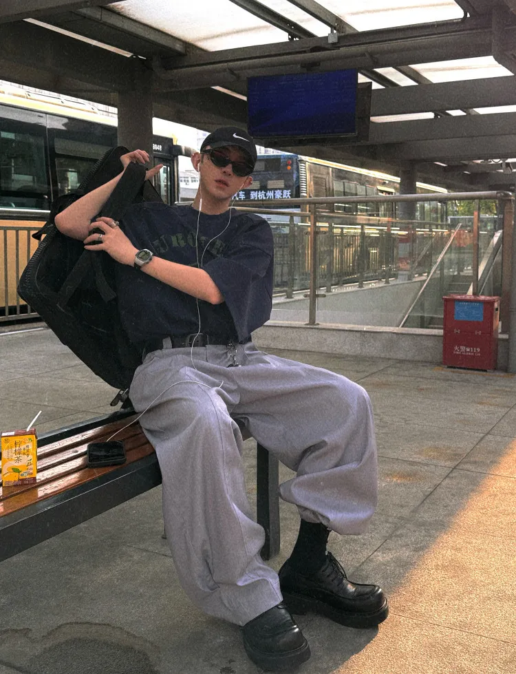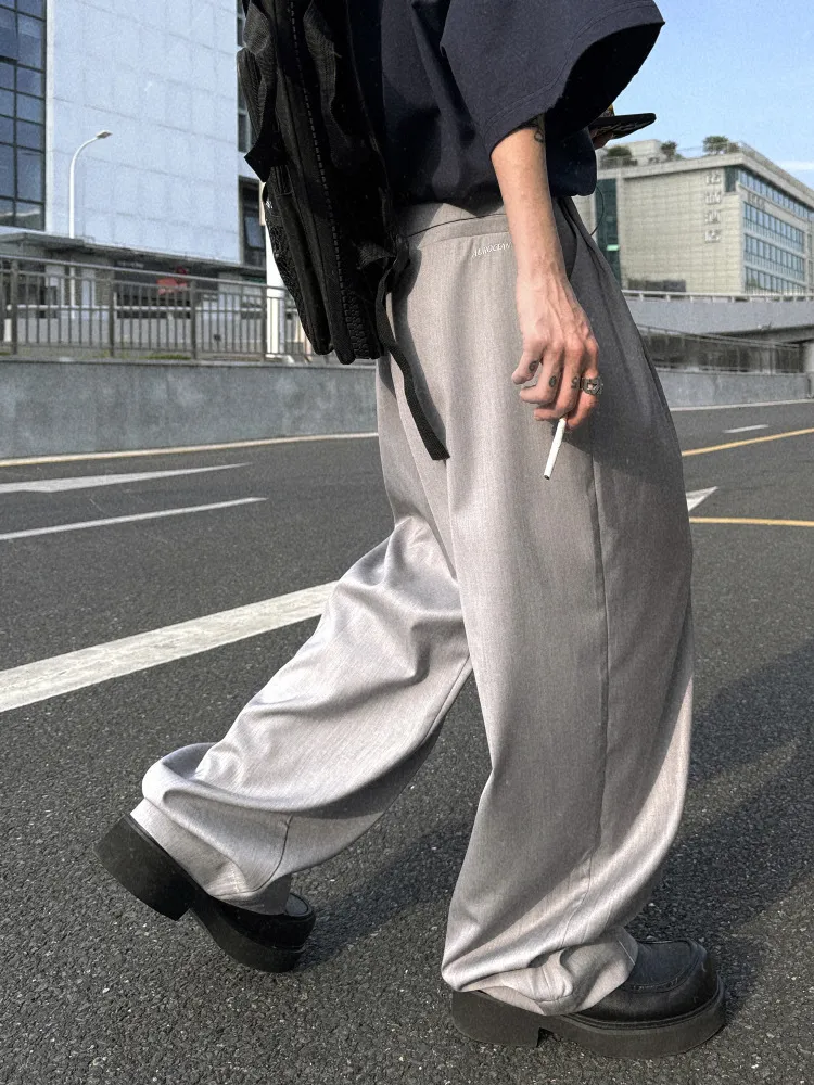 AUROCEAN 男高深灰 復古學院 收褶 闊腿 堆堆褲 西裝褲(深灰色)