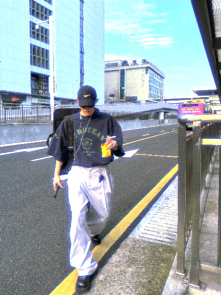 AUROCEAN 訂製水洗 暗紋 破壞 迷彩 闊腿 工裝褲 長褲(淺灰色)