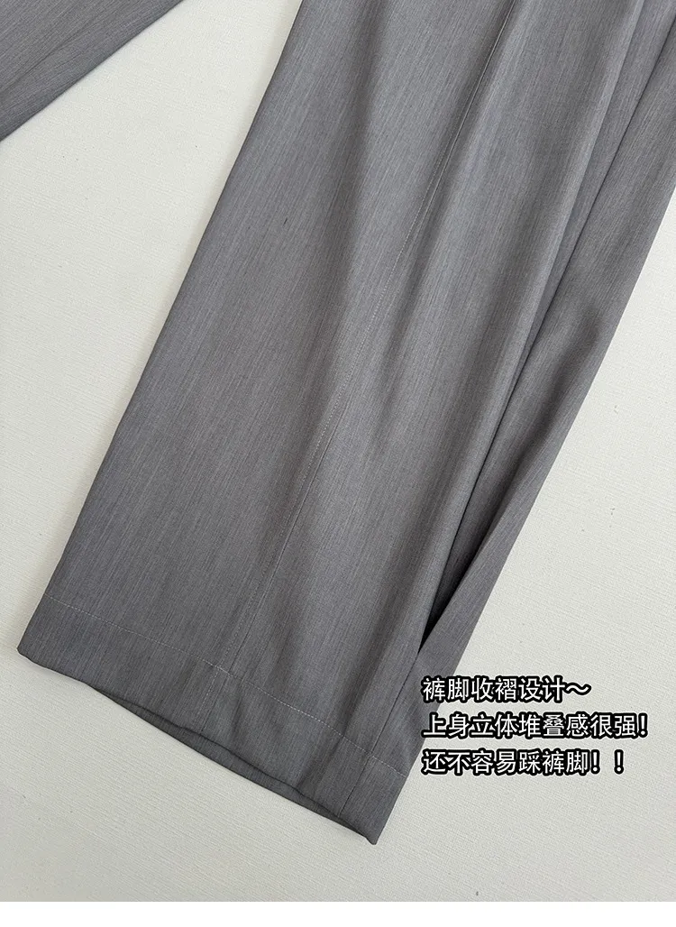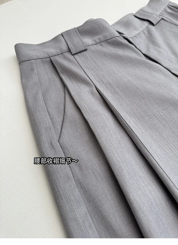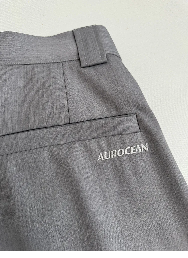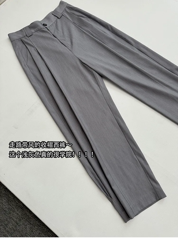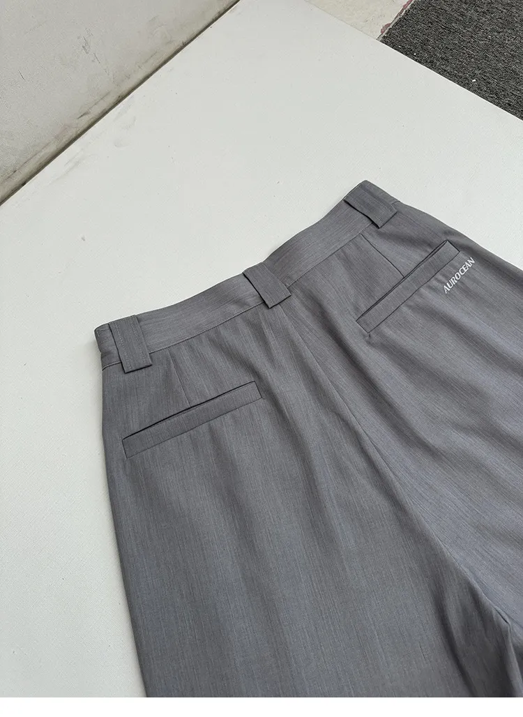 AUROCEAN 銀灰色 復古學院 收褶 闊腿 堆堆褲 西裝褲(銀灰色)