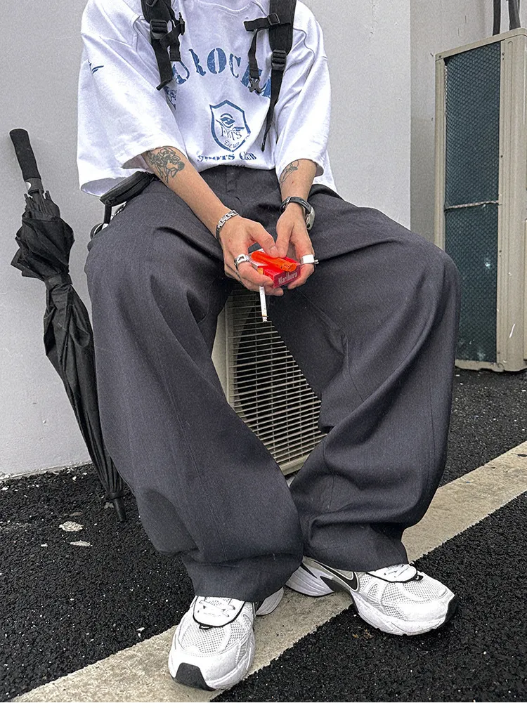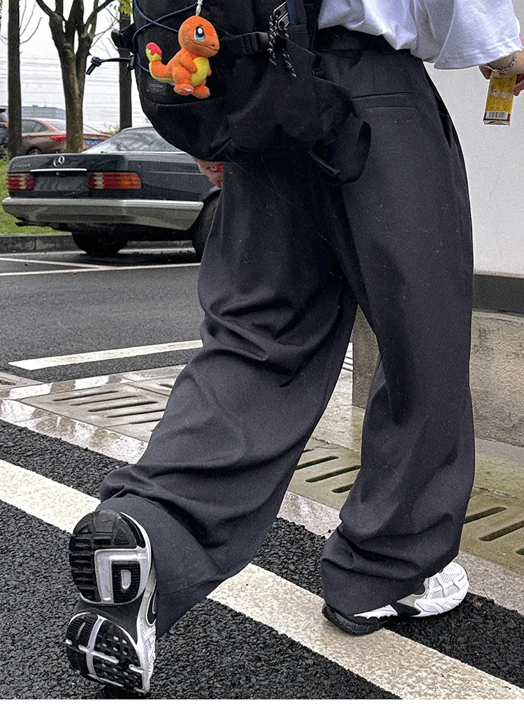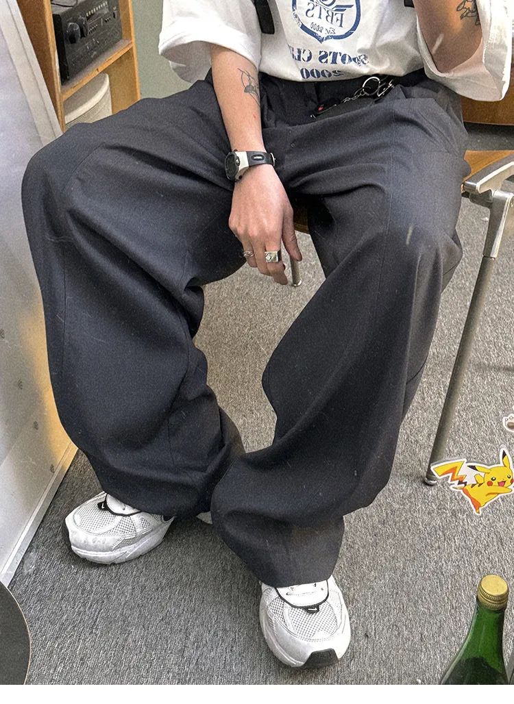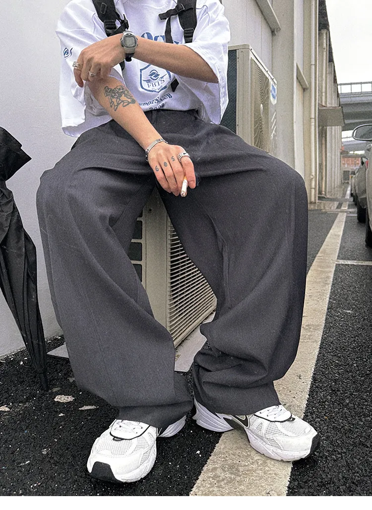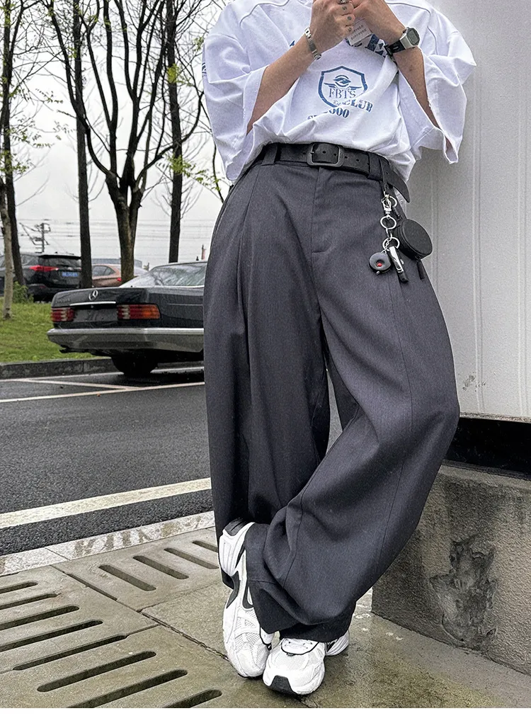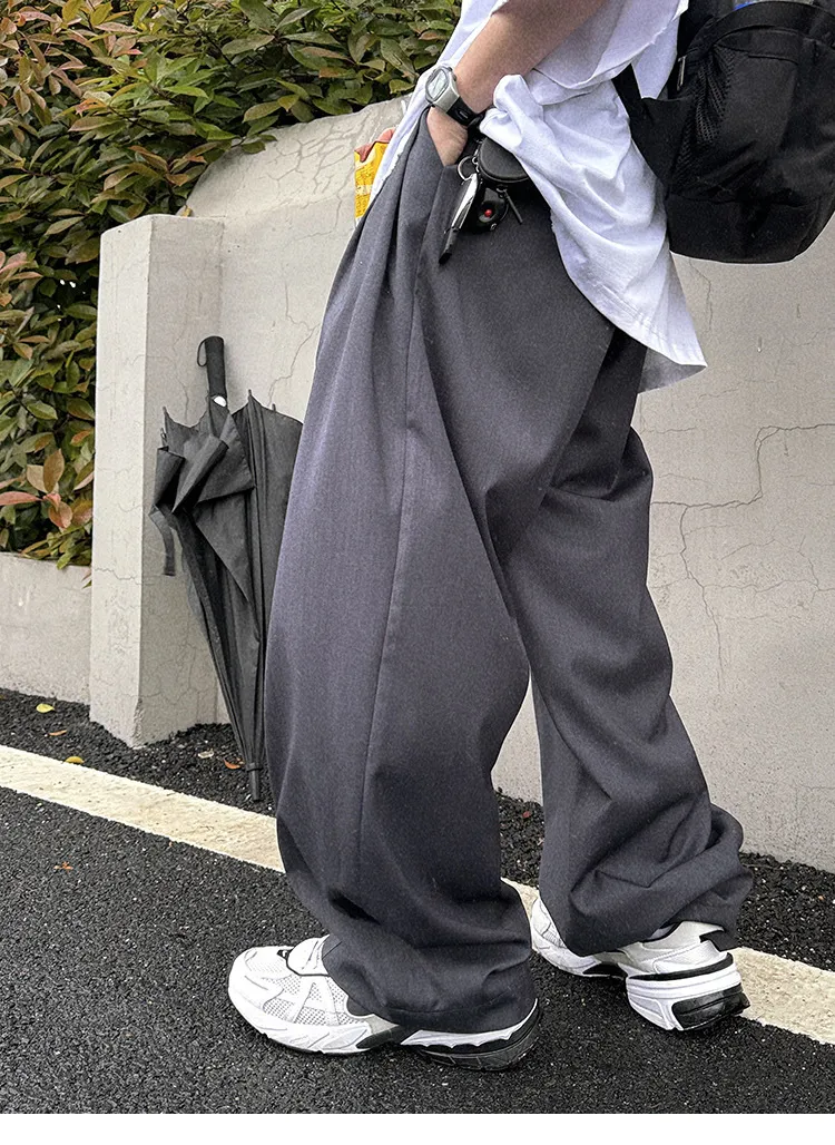 AUROCEAN 男高深灰 復古學院 收褶 闊腿 堆堆褲 西裝褲(深灰色)