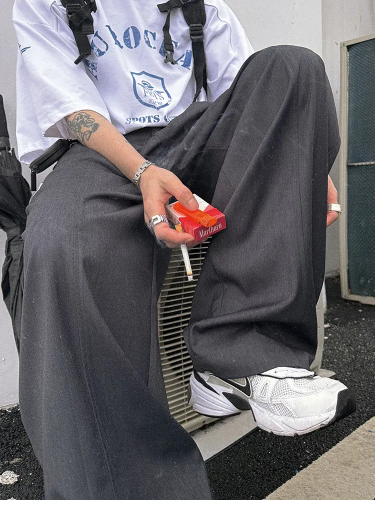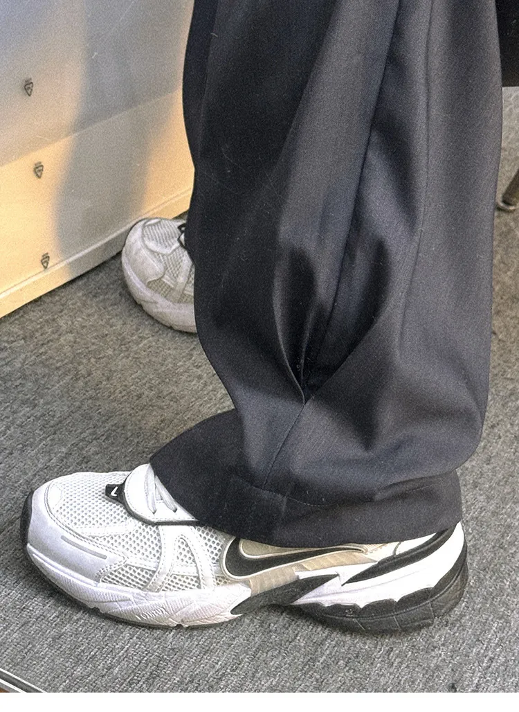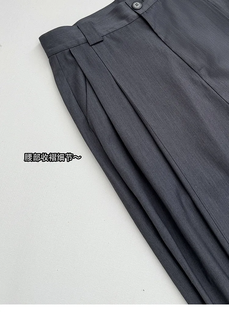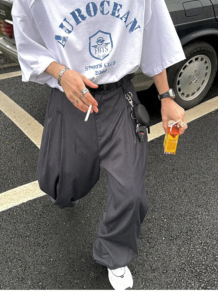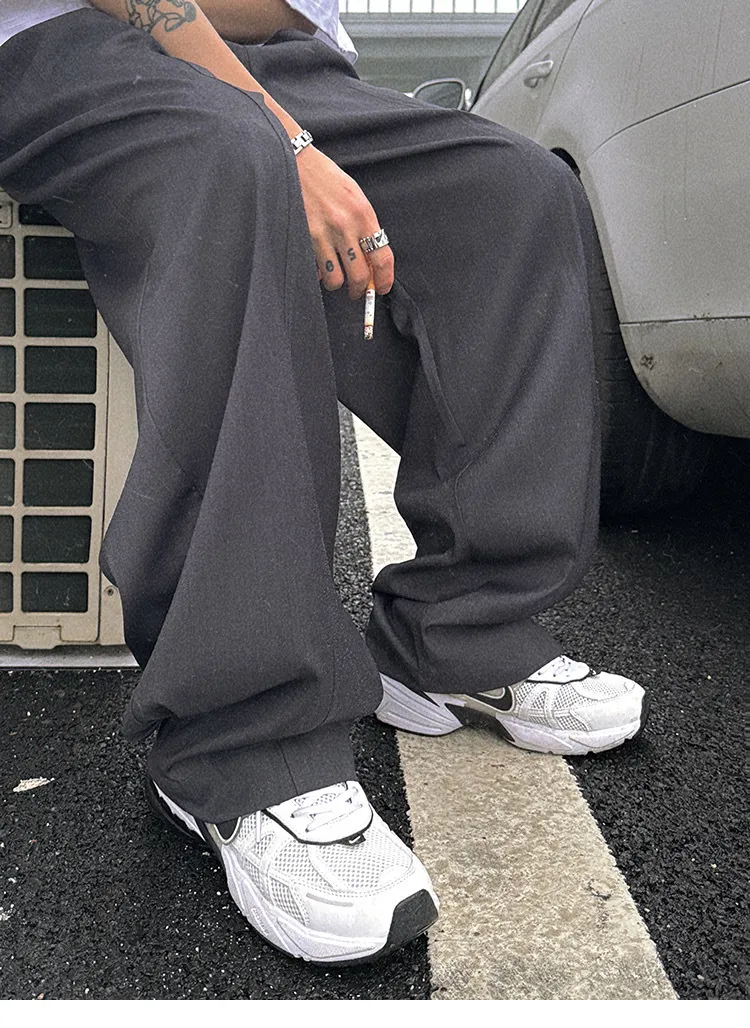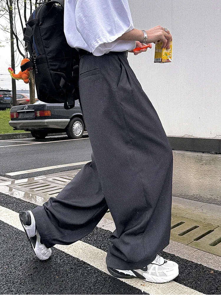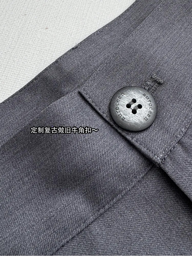 AUROCEAN 男高深灰 復古學院 收褶 闊腿 堆堆褲 西裝褲(深灰色)