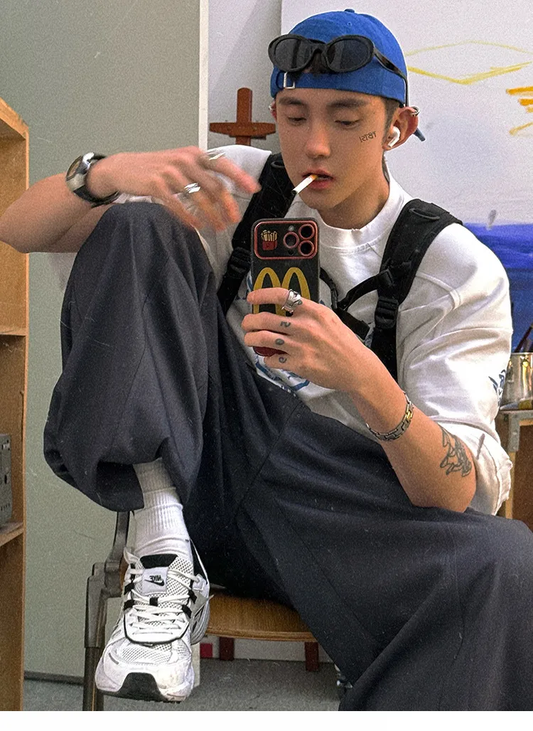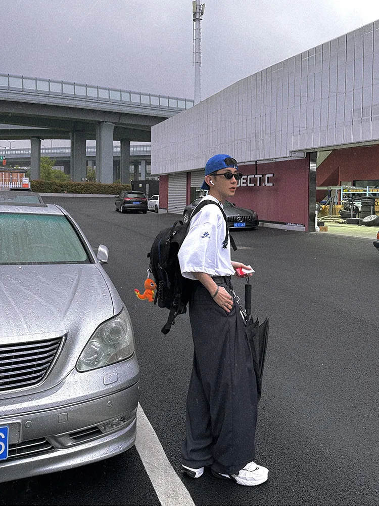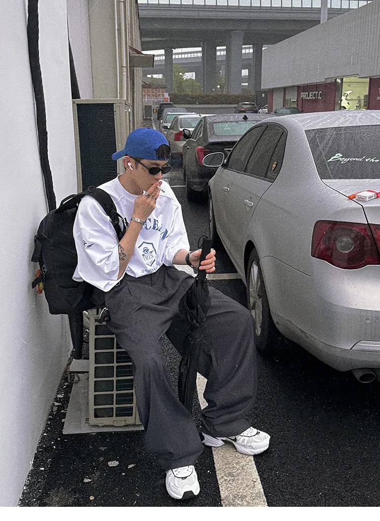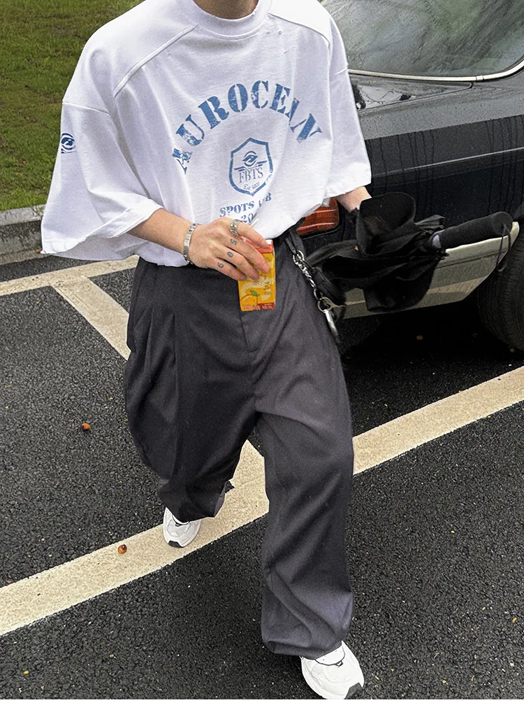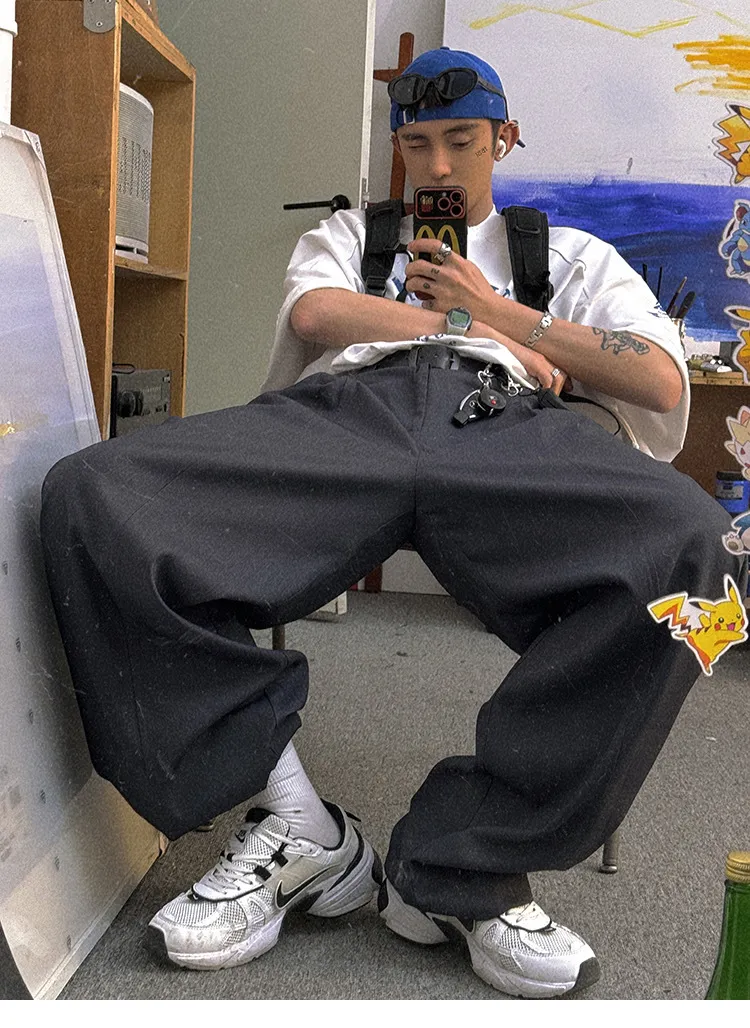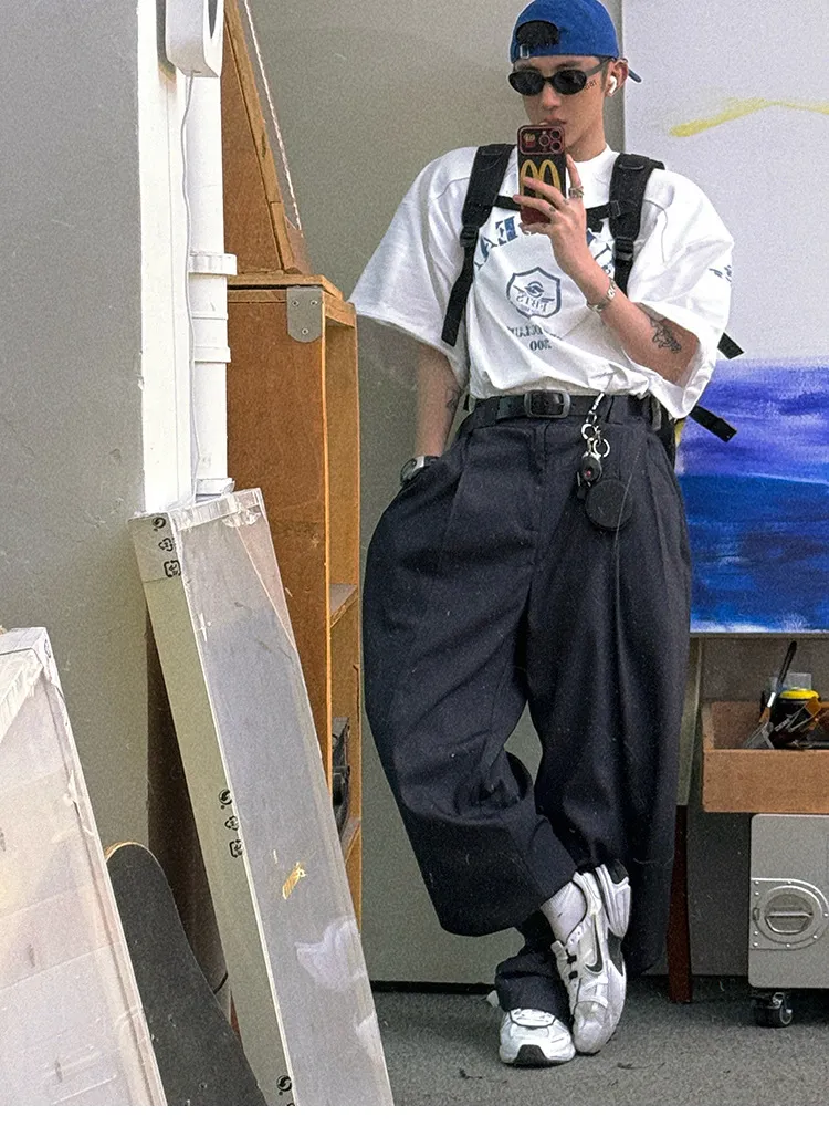 AUROCEAN 男高深灰 復古學院 收褶 闊腿 堆堆褲 西裝褲(深灰色)