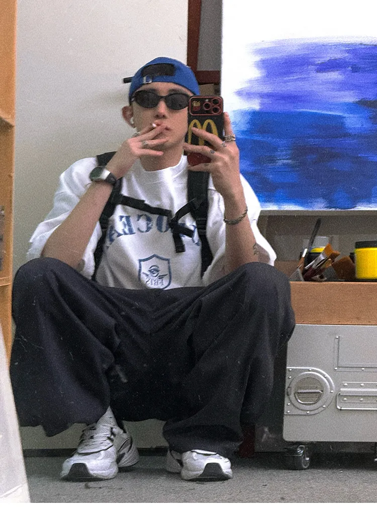 AUROCEAN 元氣少年 刺繡 插肩 撞色 320G 重磅 寬鬆 短袖 TEE(黃色)