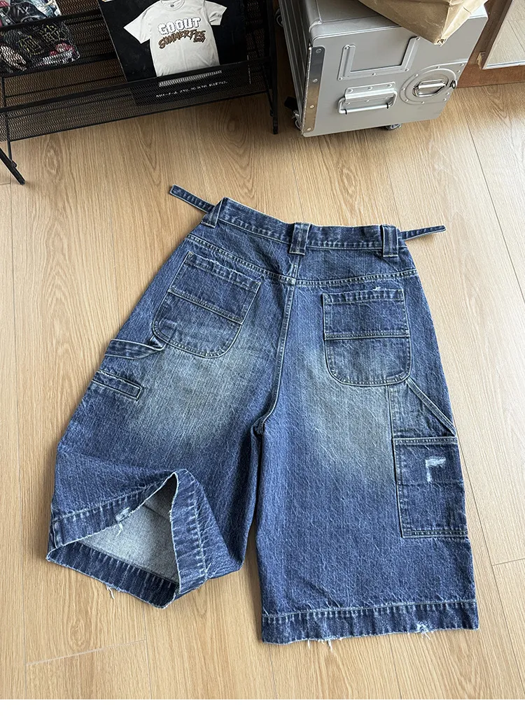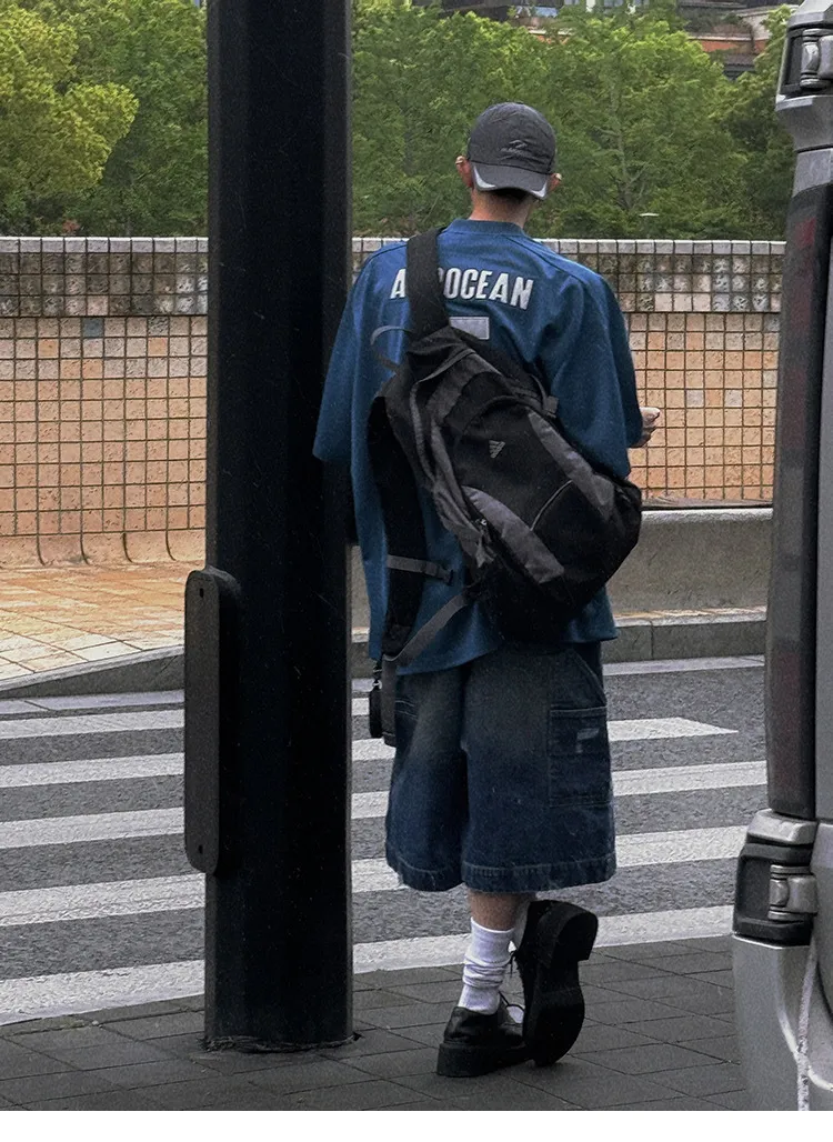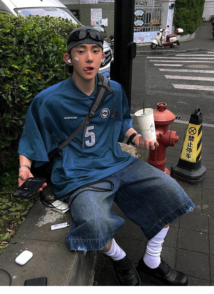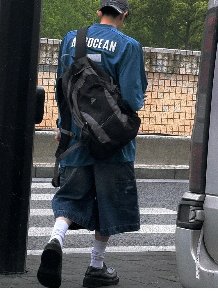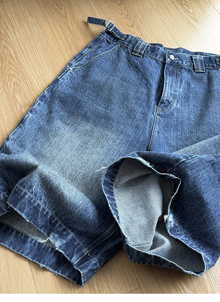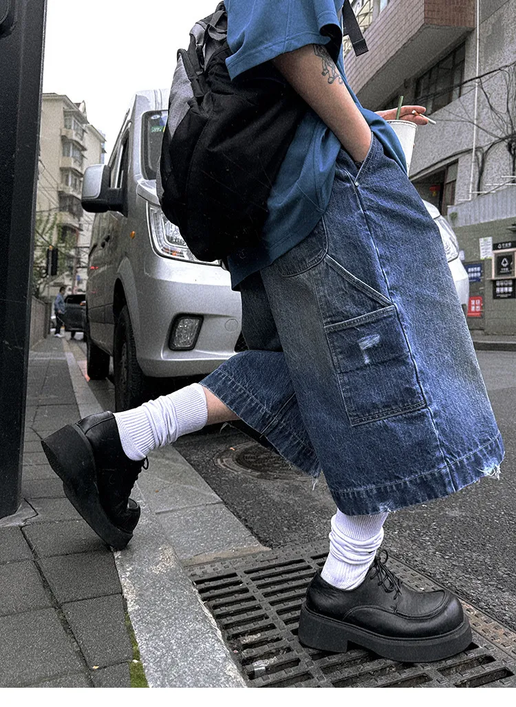 AUROCEAN 訂製水洗 暗紋 破壞 迷彩 寬版 六分褲 短褲(深灰色)