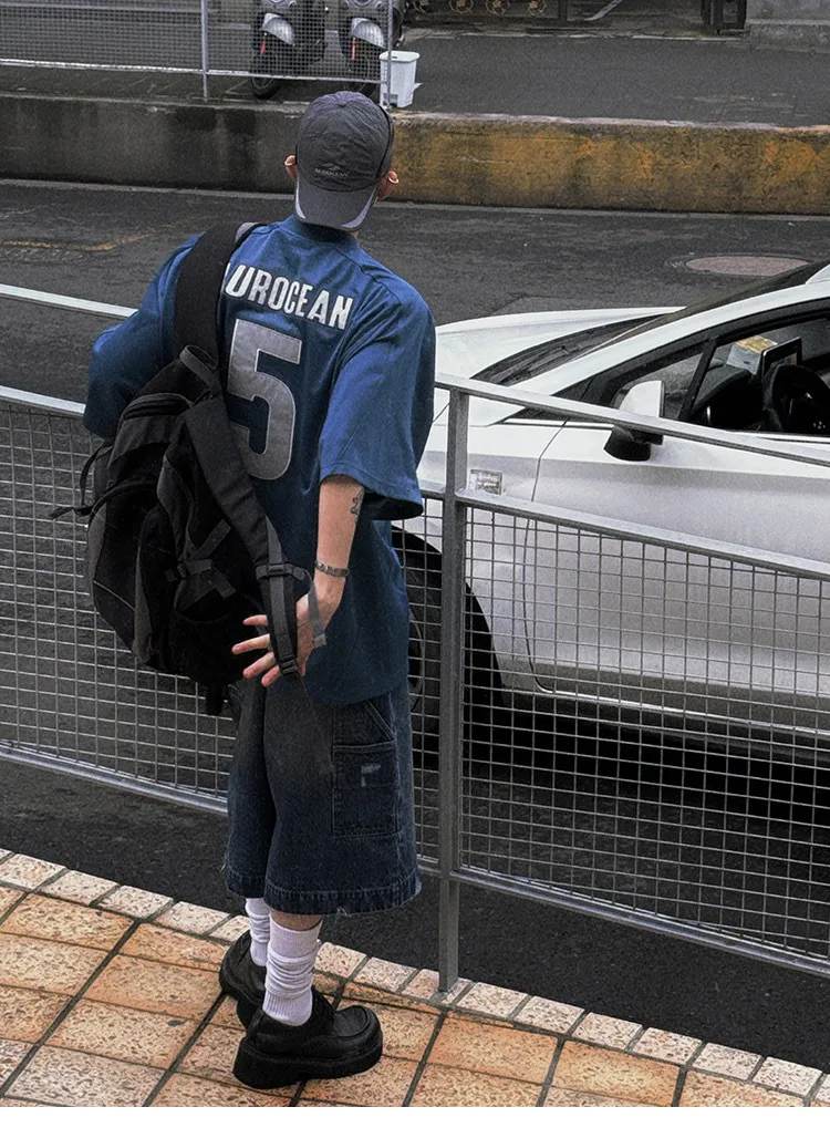 AUROCEAN 破舊油墨 印花 磨損 重磅 短袖 TEE(藏青色)