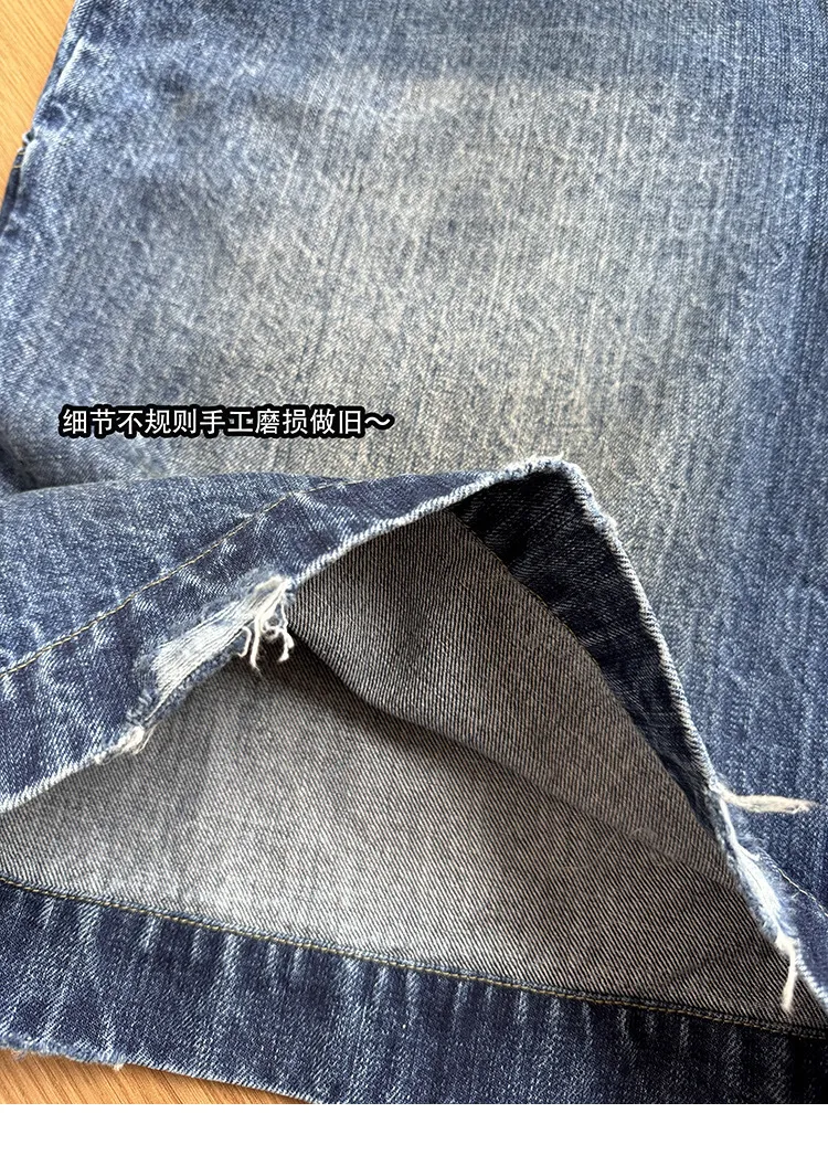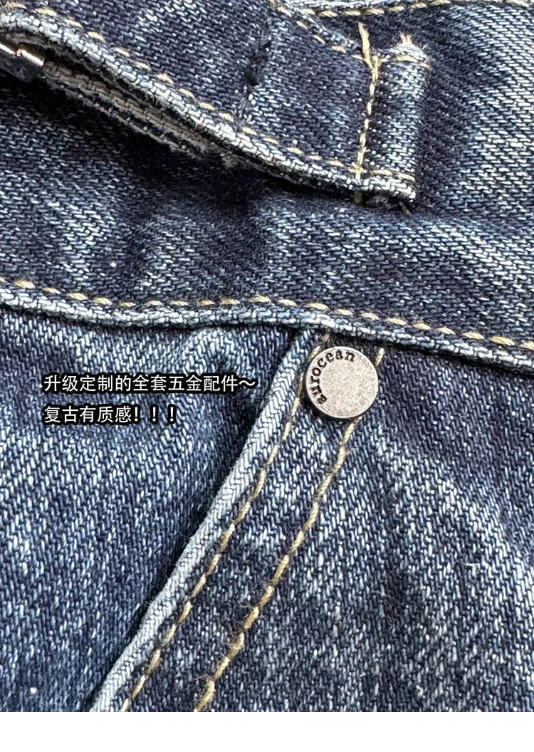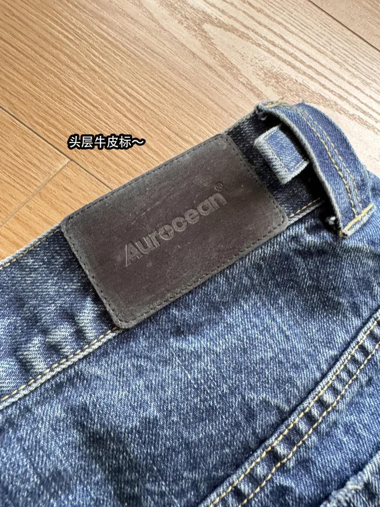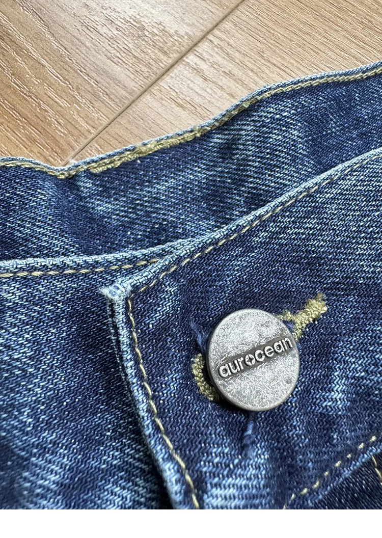 AUROCEAN 微髒深藍 訂製面料 做舊 工裝感 七分褲 牛仔褲(深藍色)