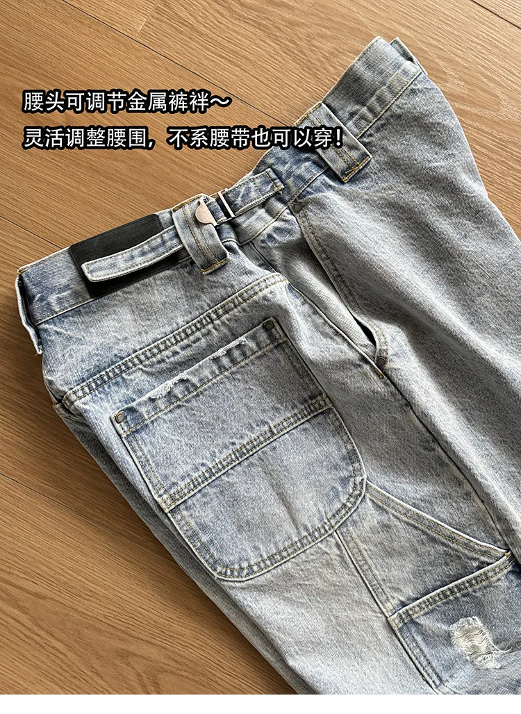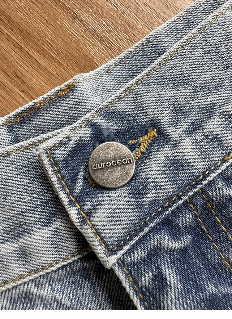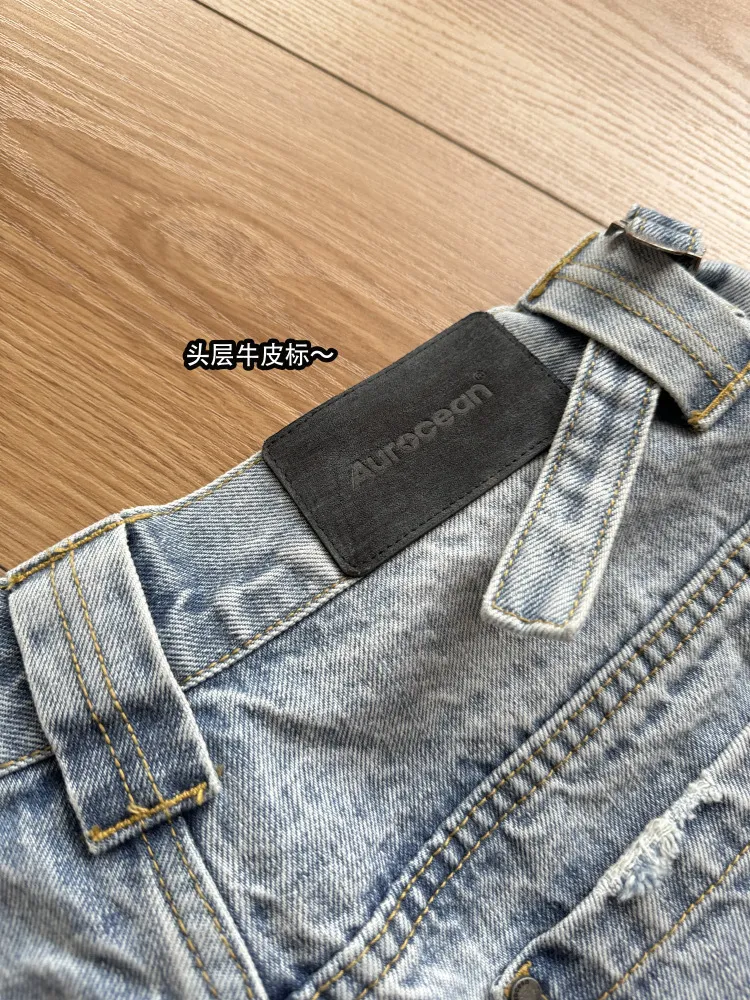 AUROCEAN 髒帥深藍 水洗 做舊破壞 420G重磅 牛仔褲(深藍色)