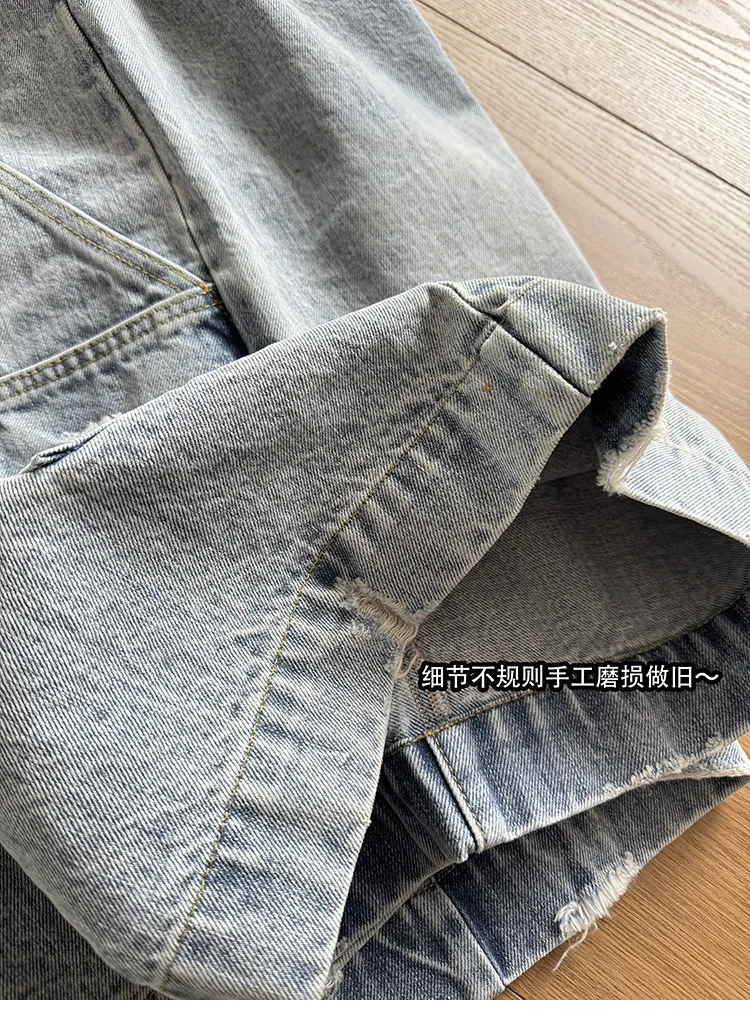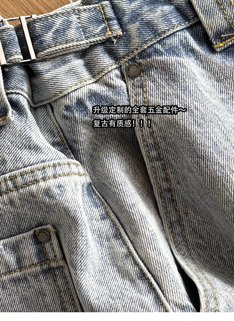 AUROCEAN 清爽淺色 訂製面料 工裝感 七分褲 牛仔褲(淺藍色)