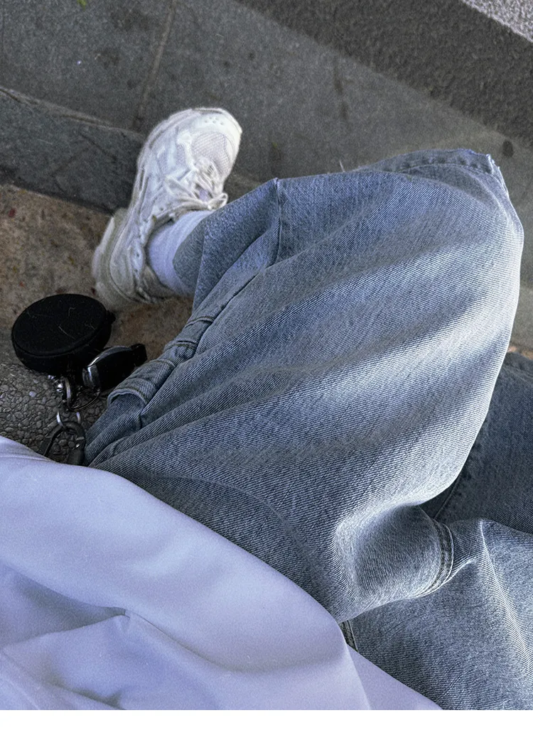 AUROCEAN 訂製水洗 暗紋 破壞 迷彩 闊腿 工裝褲 長褲(深灰色)