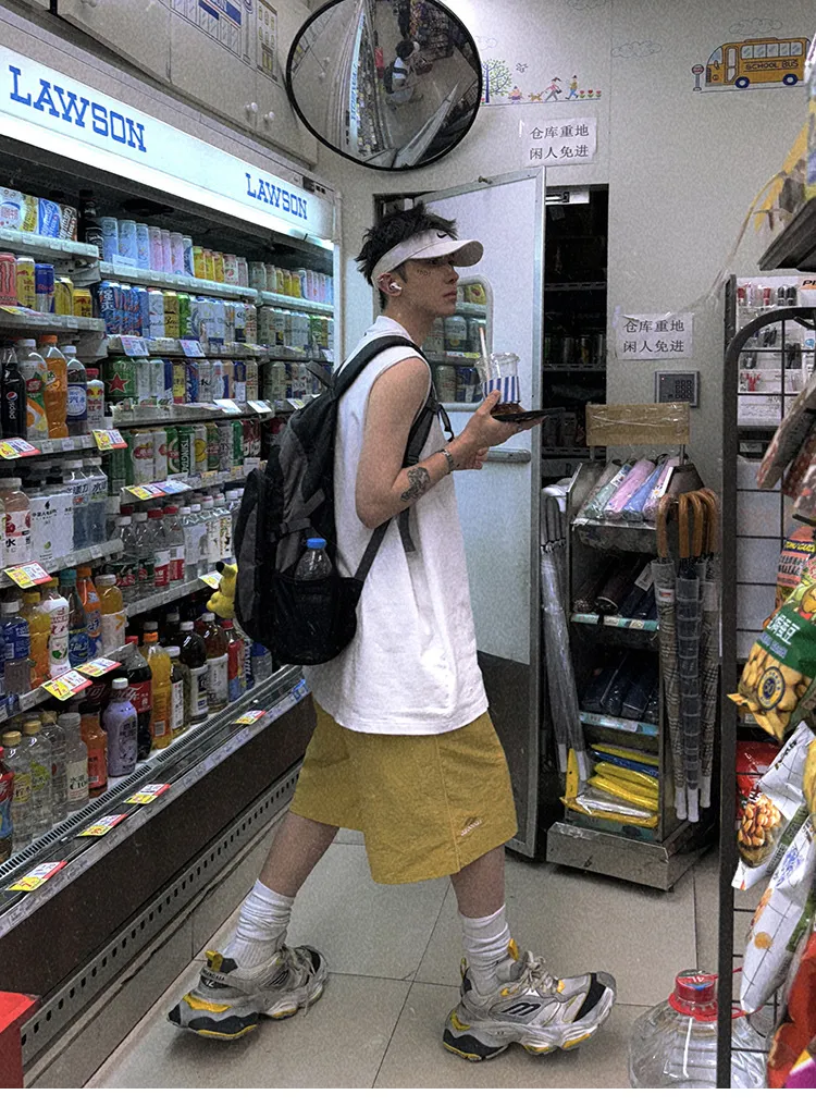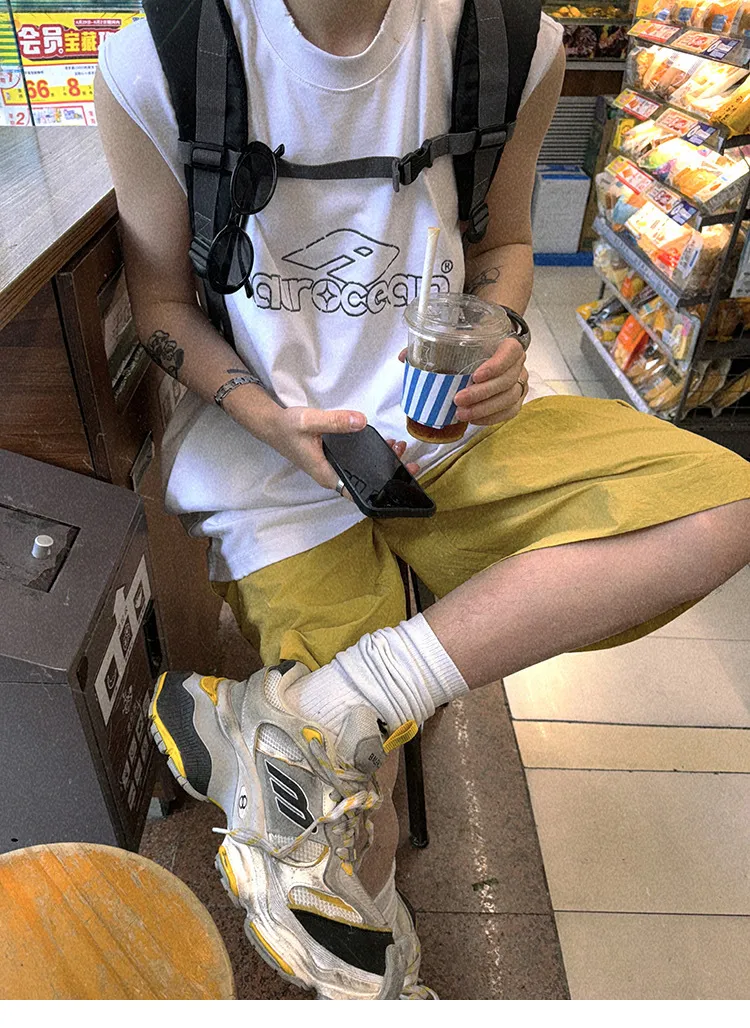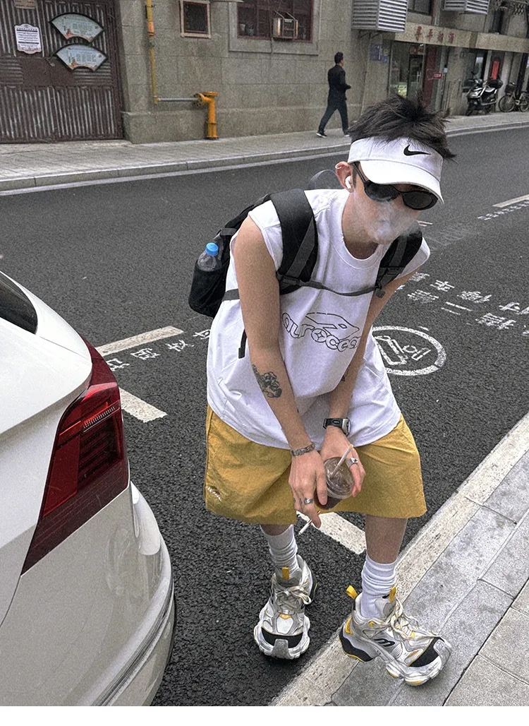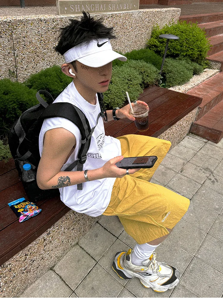AUROCEAN 元氣盛夏 水洗 速乾 沙灘 短褲 五分褲(淡黃色)