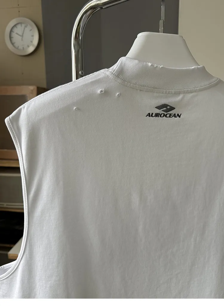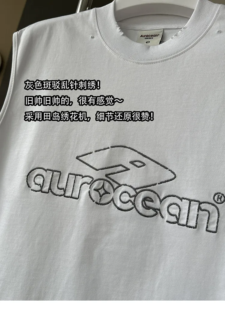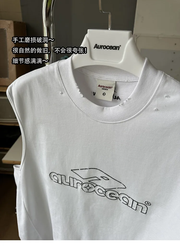 AUROCEAN 斑駁感刺繡 破壞領口 坦克 背心(白色)