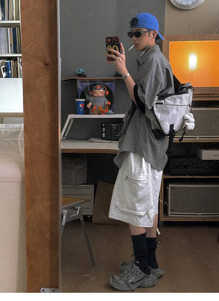 AUROCEAN 灰調 暗紋 破壞 迷彩 寬版 六分褲 短褲(淺灰色)