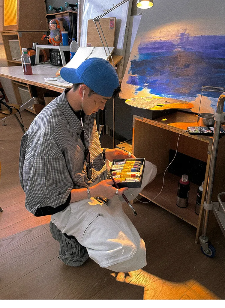 AUROCEAN 微髒深藍 訂製面料 做舊 工裝感 七分褲 牛仔褲(深藍色)