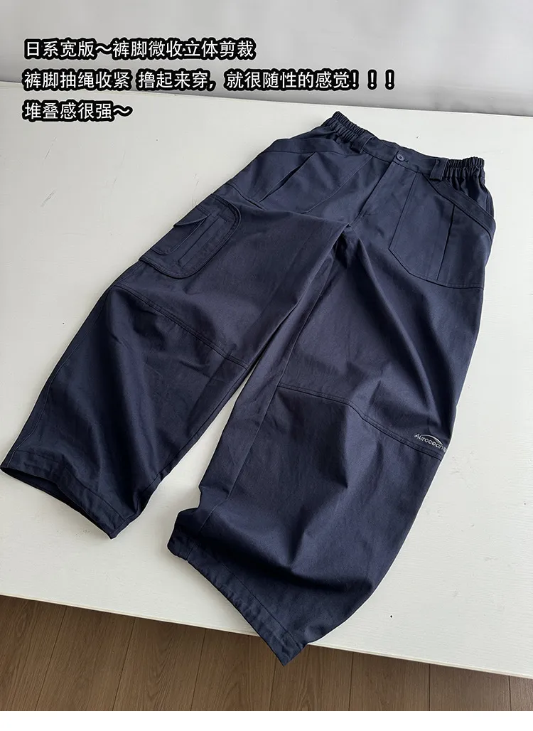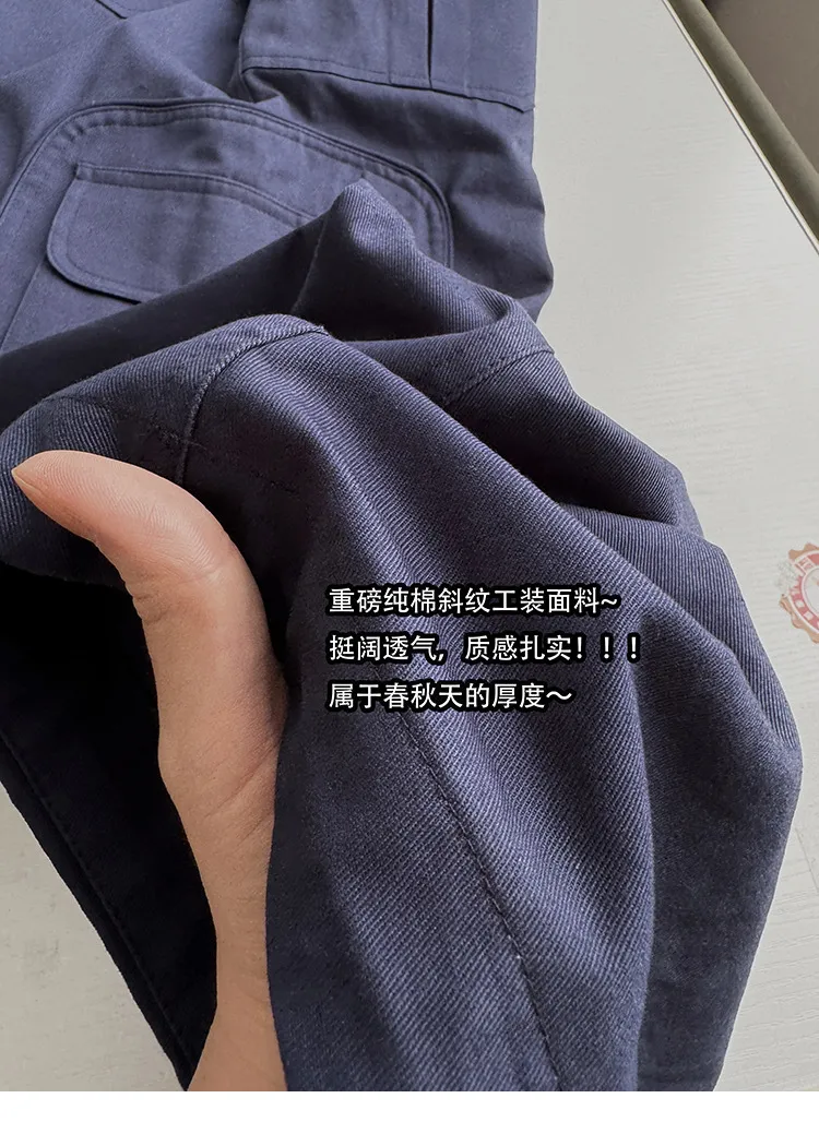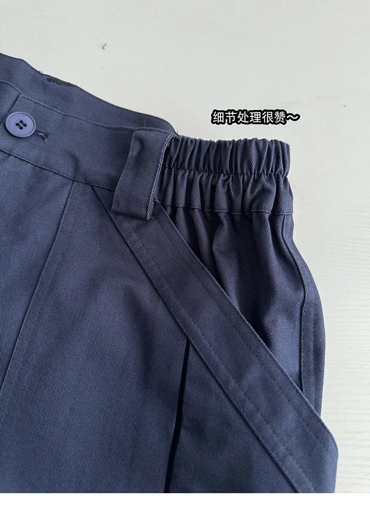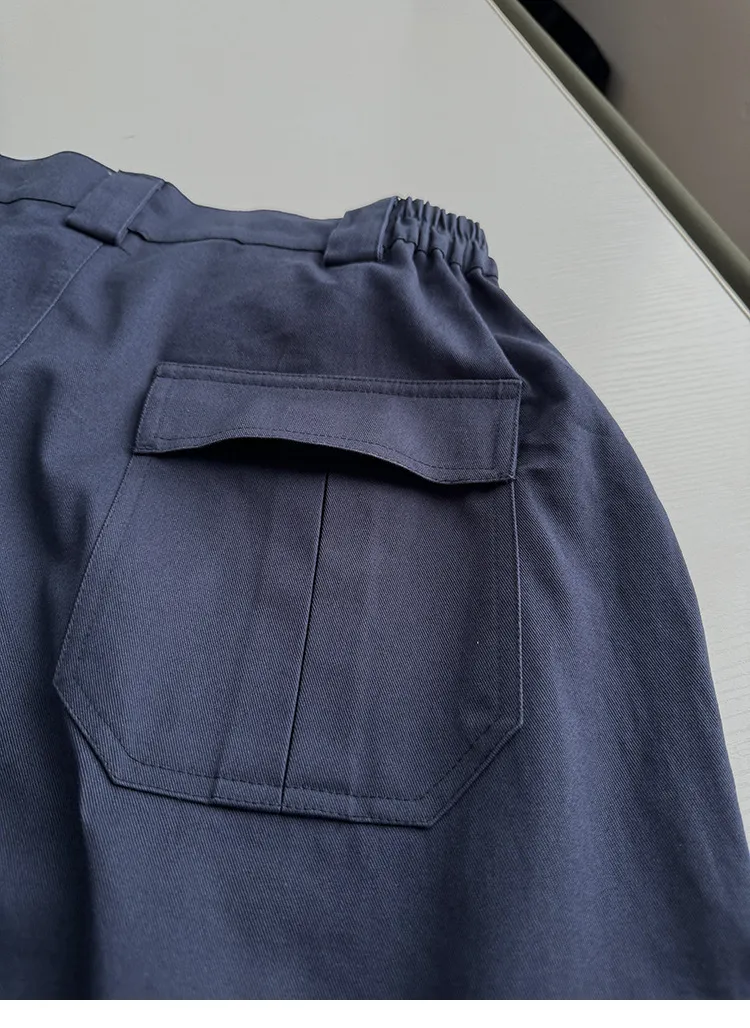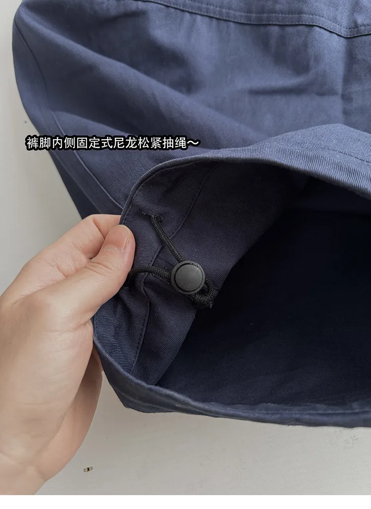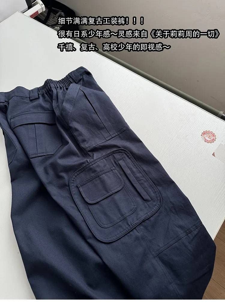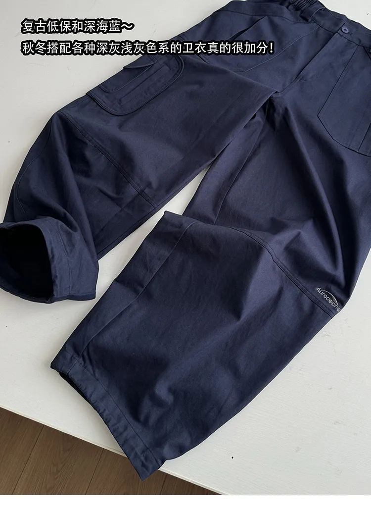 AUROCEAN 復古 深海藍 日系 工裝褲 長褲(深藍色)