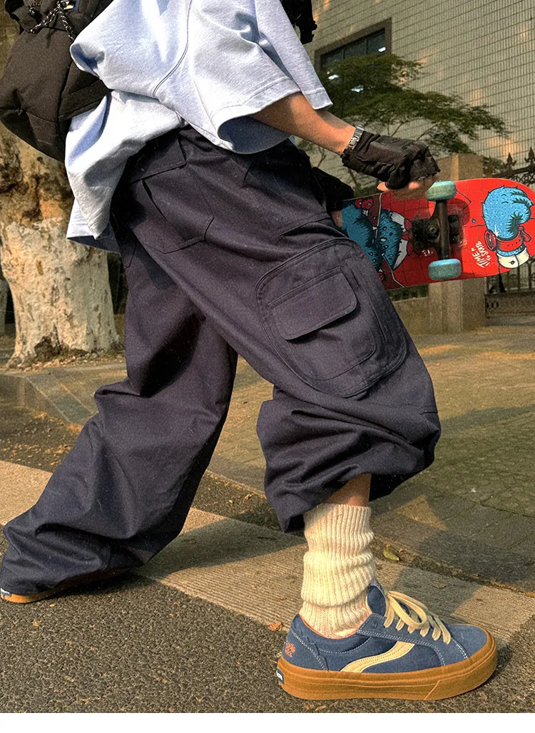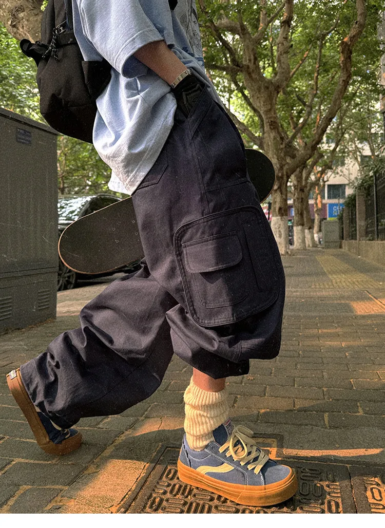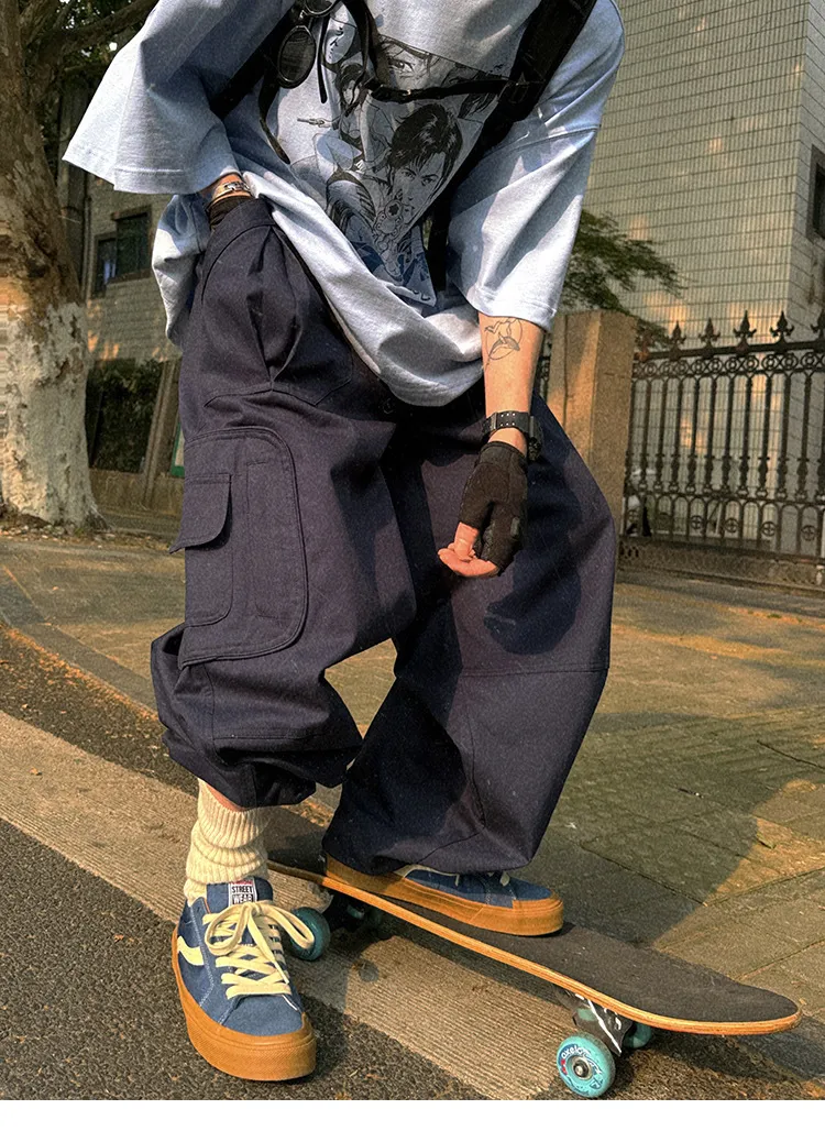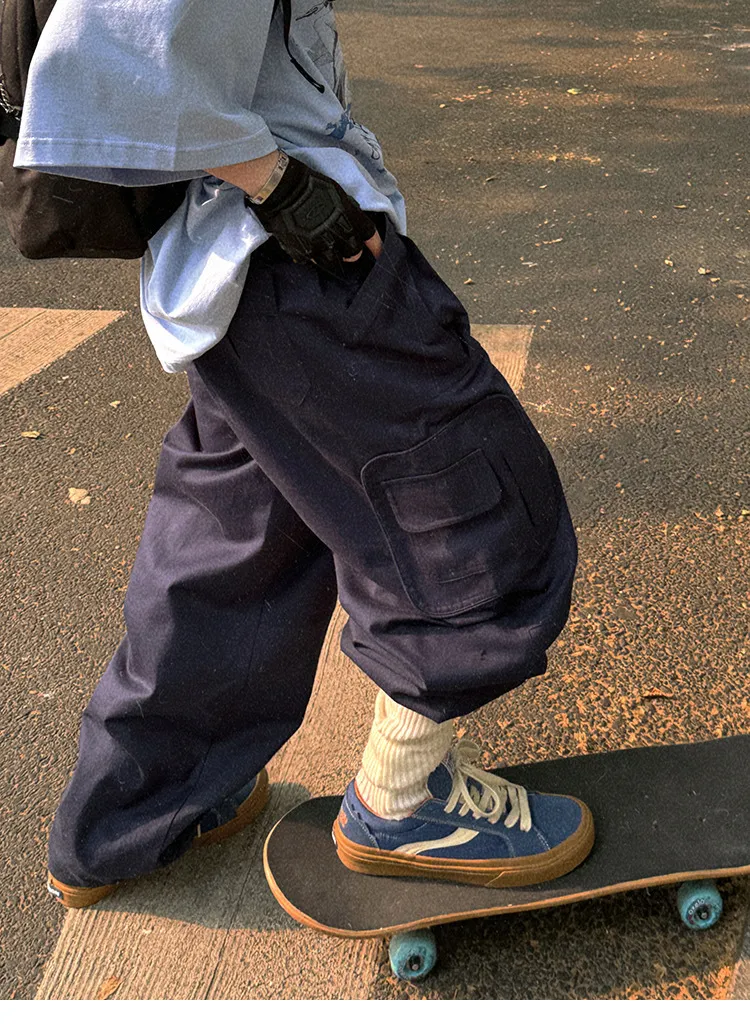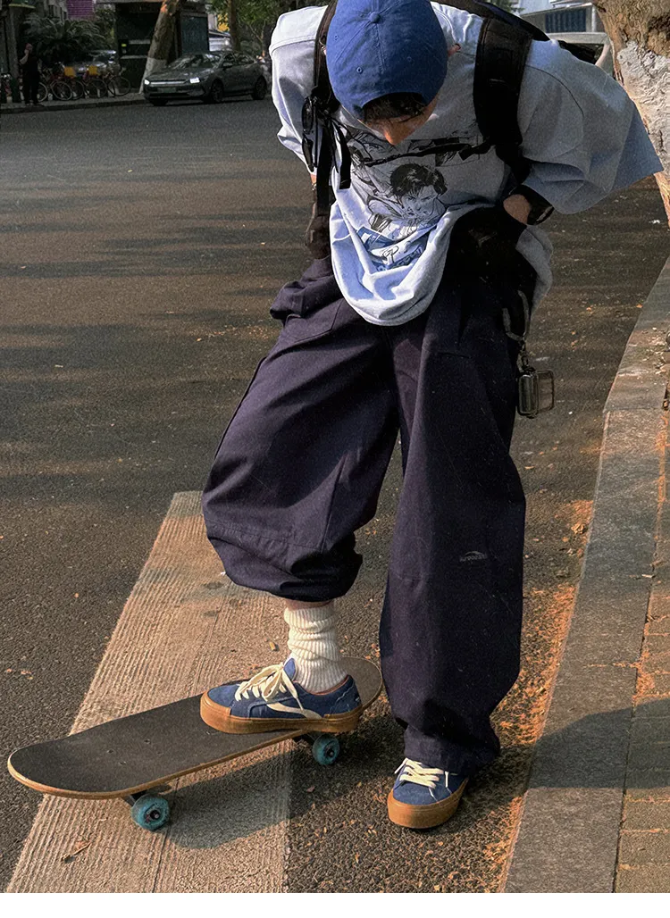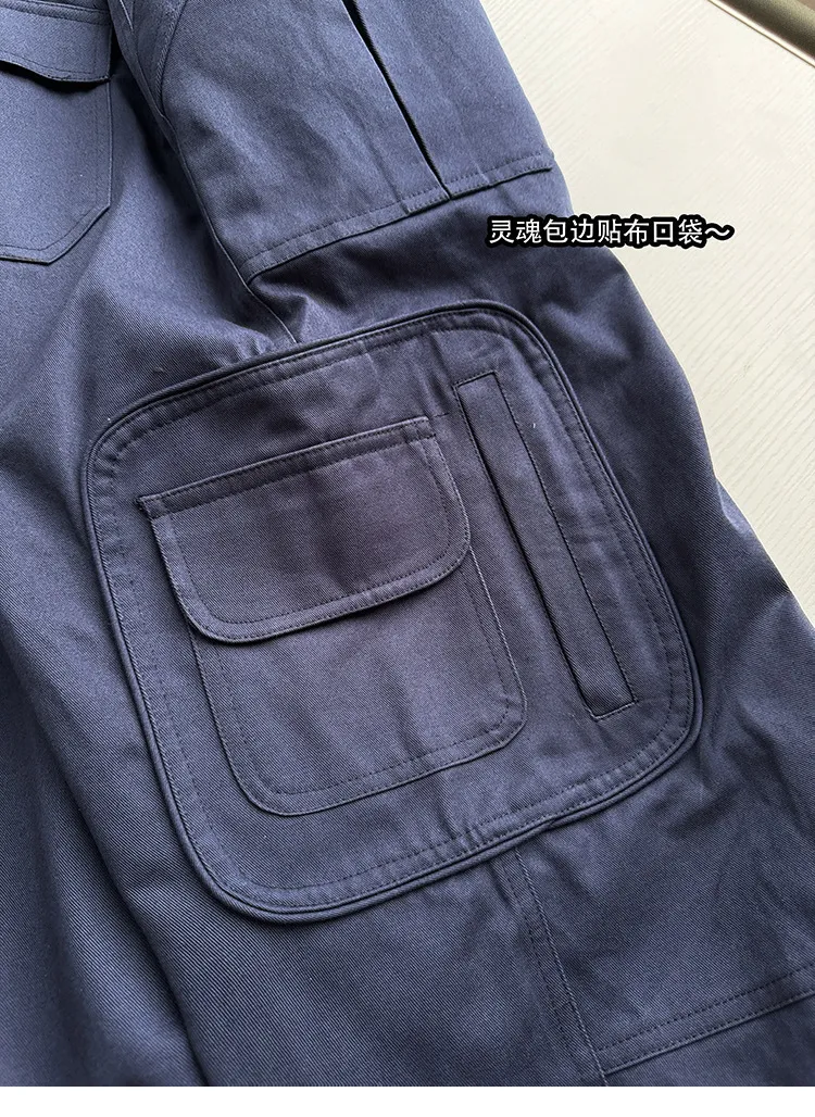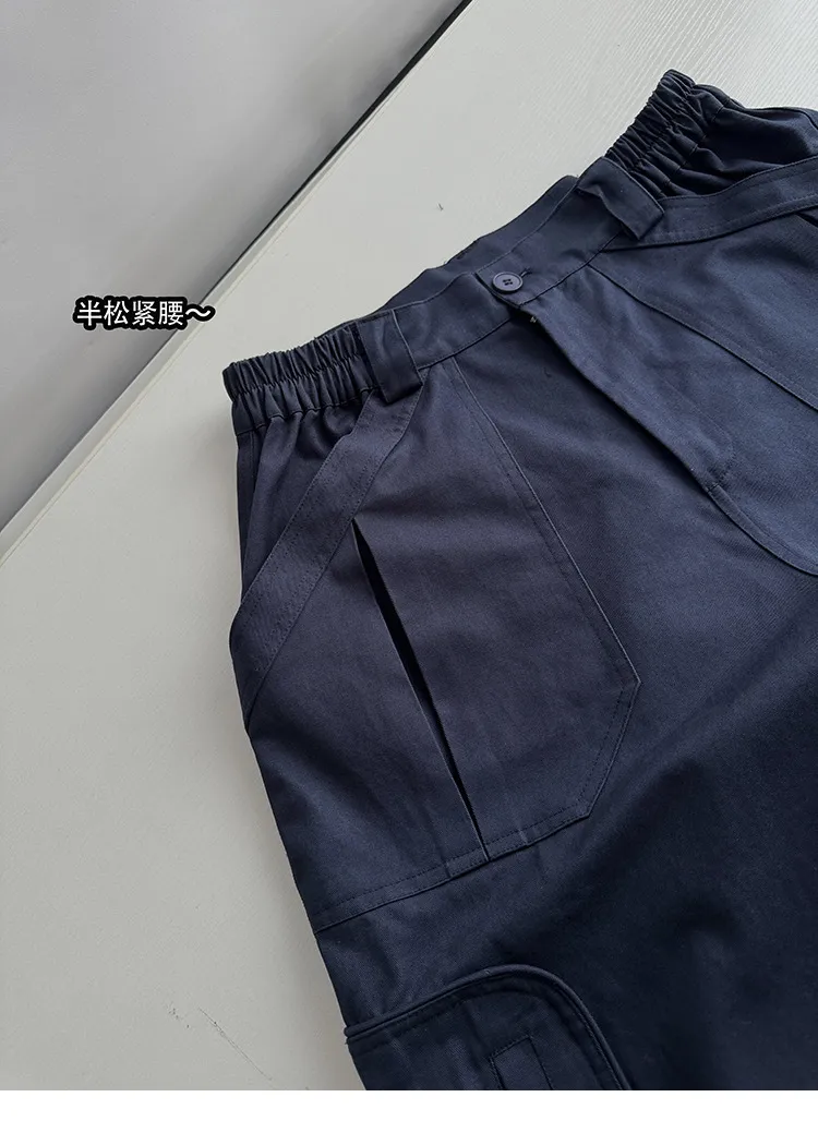 AUROCEAN 復古 深海藍 日系 工裝褲 長褲(深藍色)