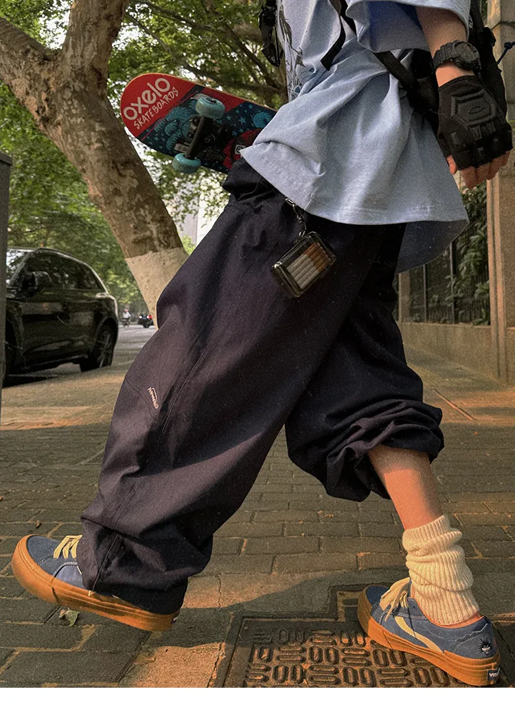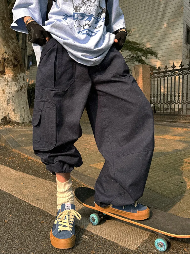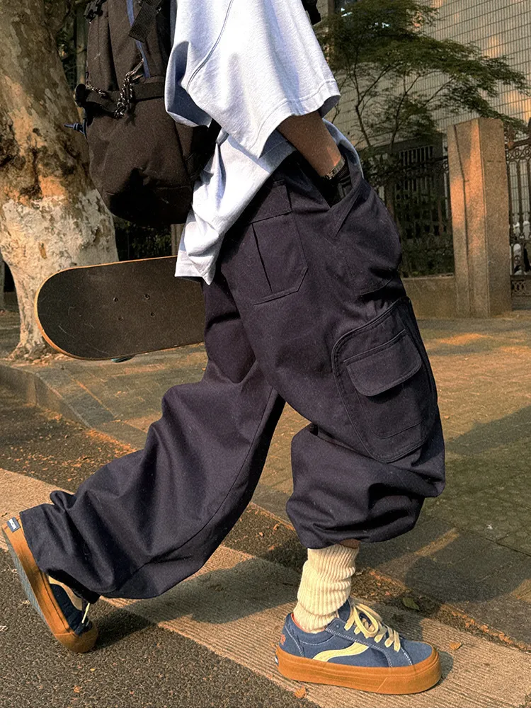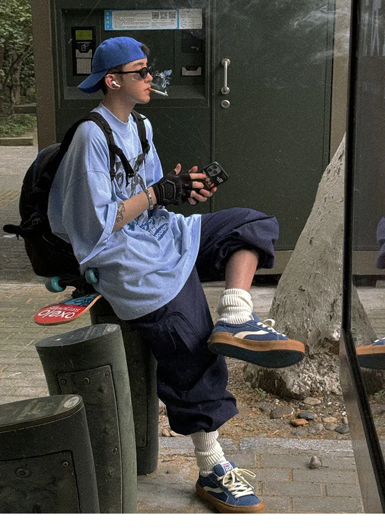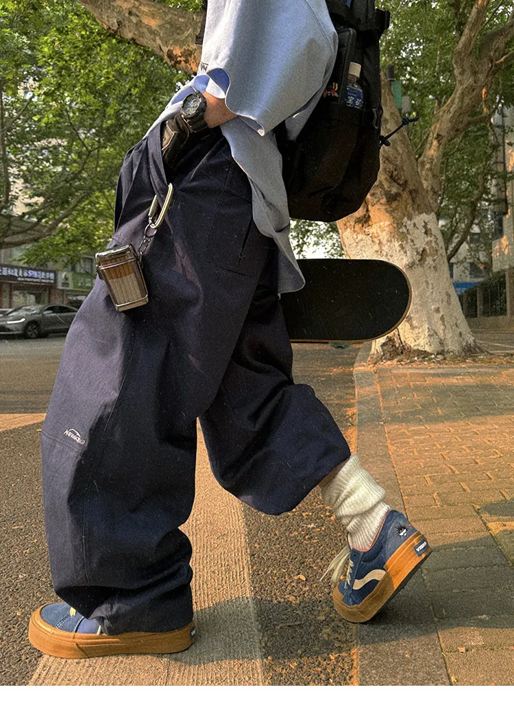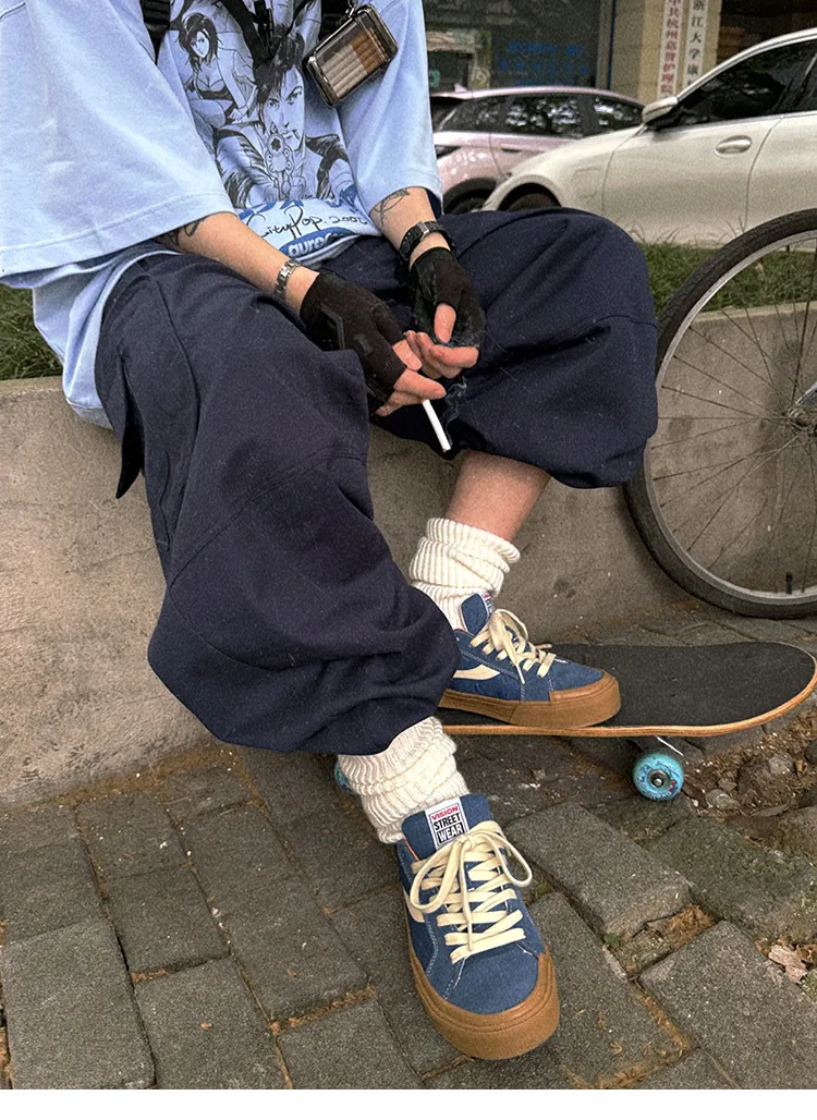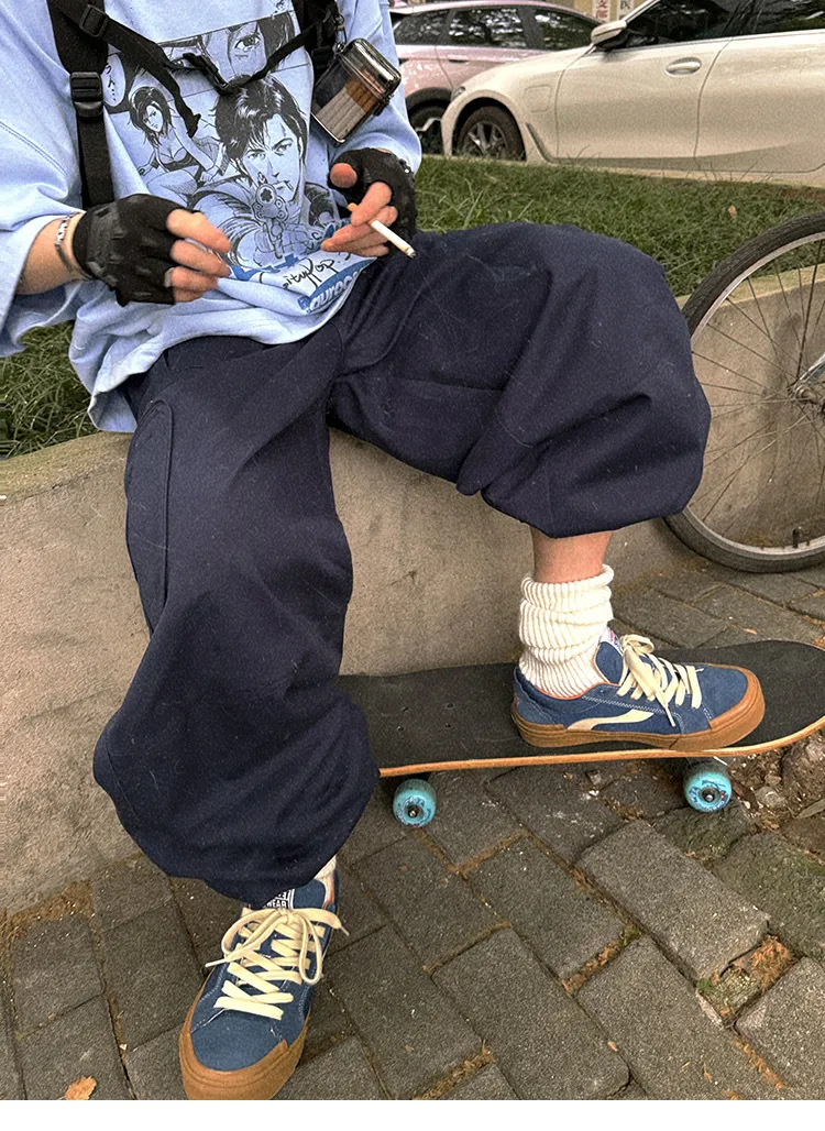 AUROCEAN 復古 深海藍 日系 工裝褲 長褲(深藍色)