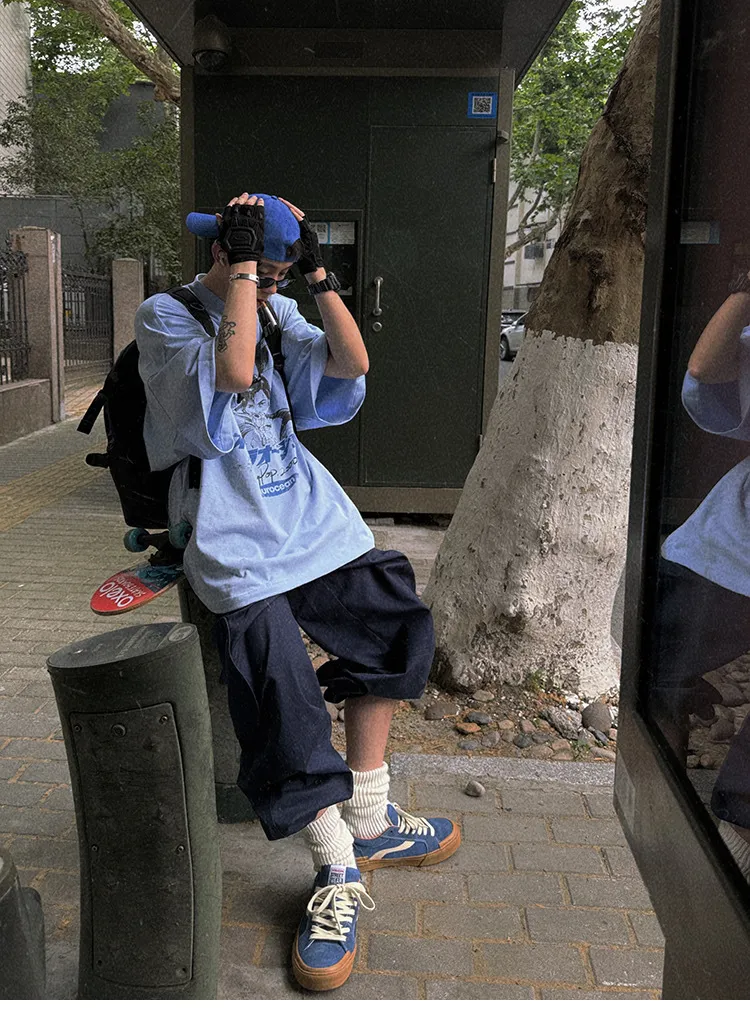 AUROCEAN 破舊油墨 印花 磨損 重磅 短袖 TEE(藏青色)