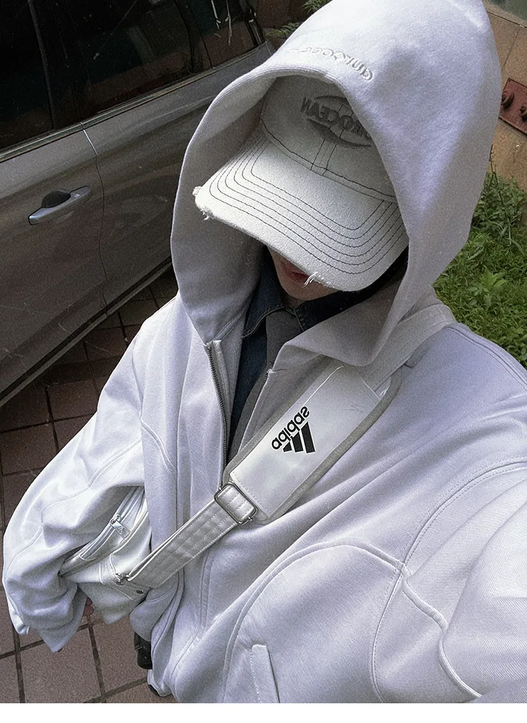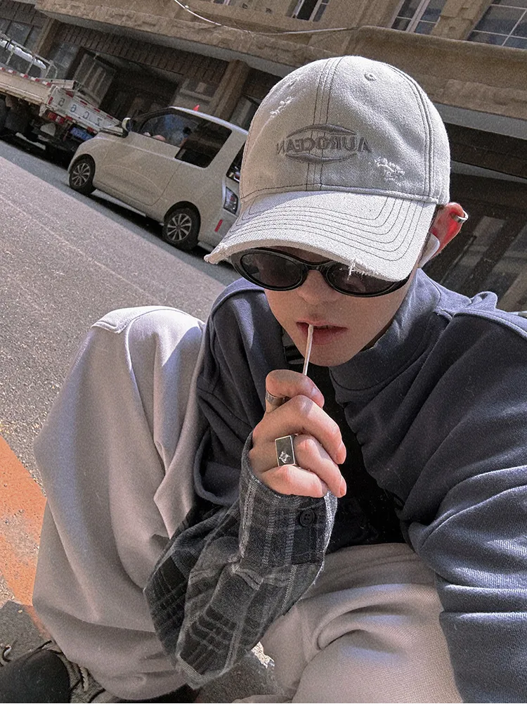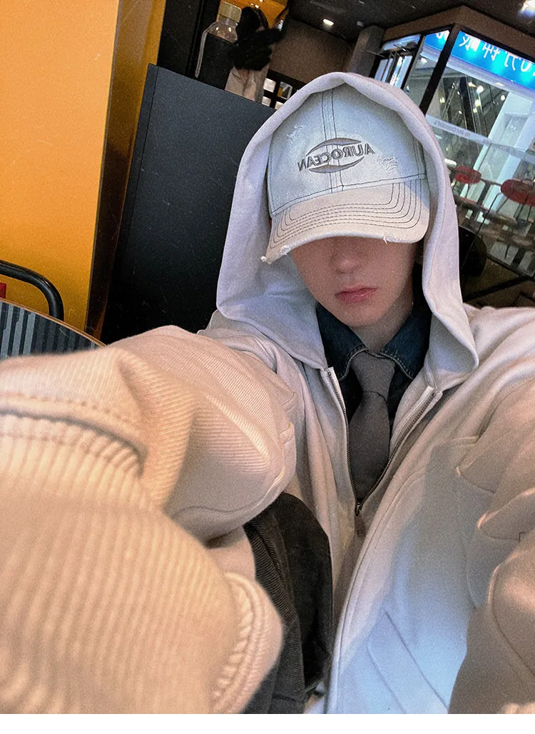 AUROCEAN 故障印花 水洗破壞 寬短 帽踢(水洗灰色)