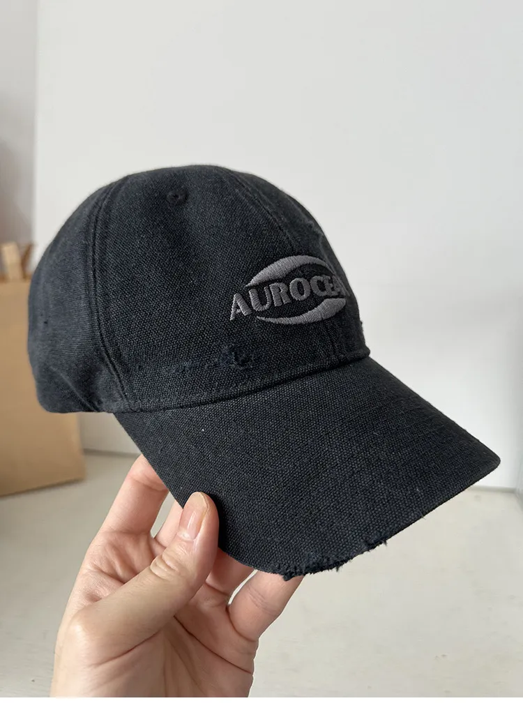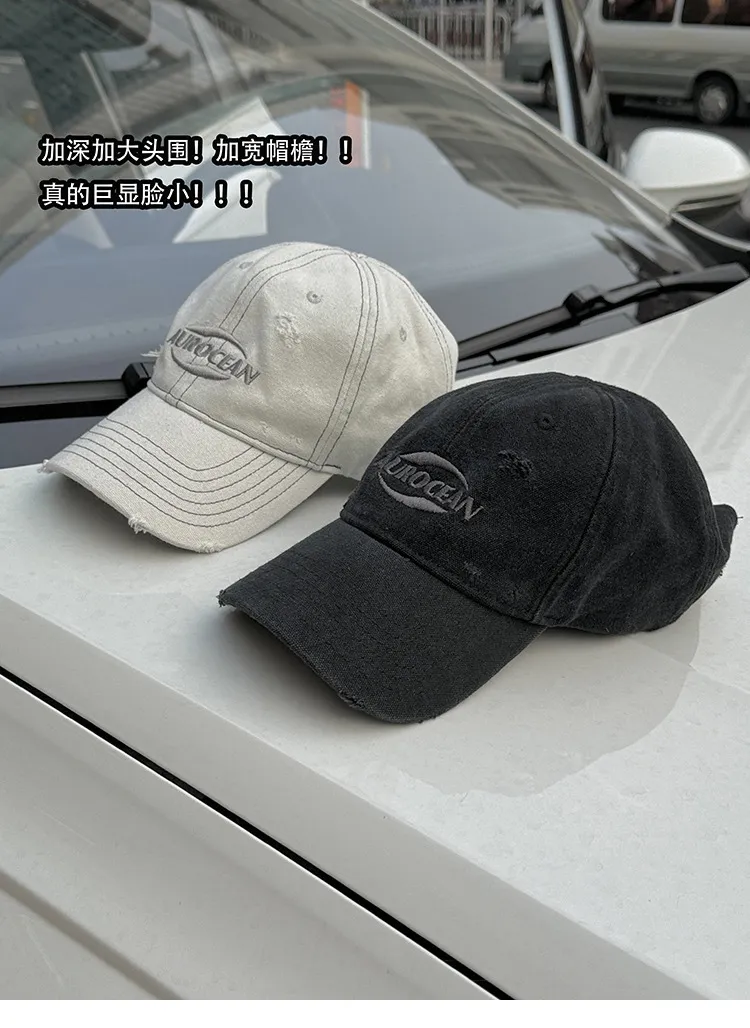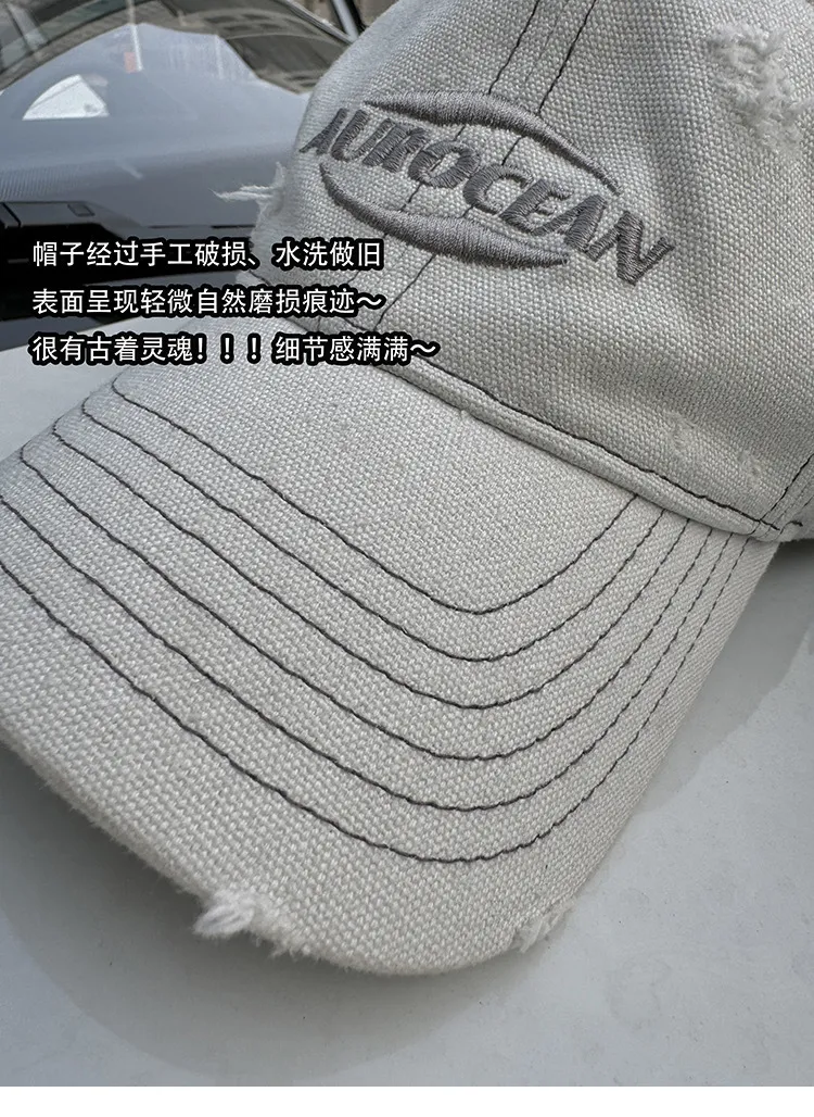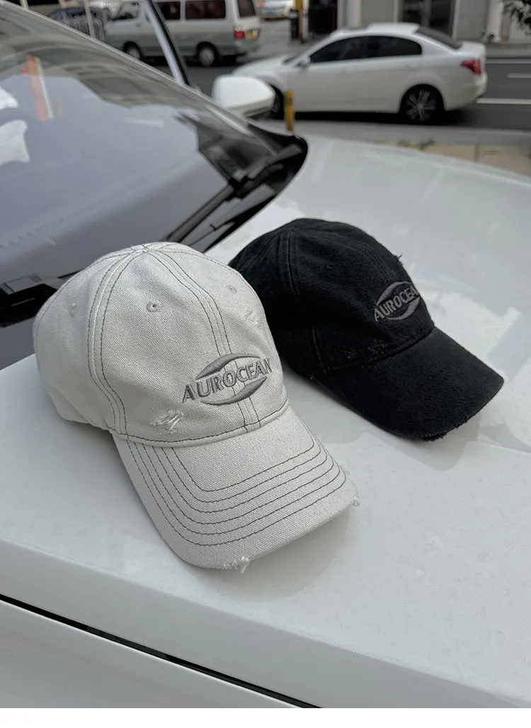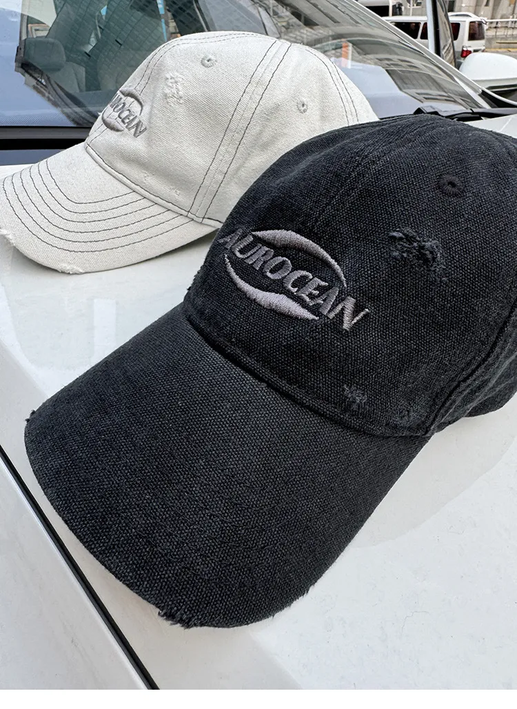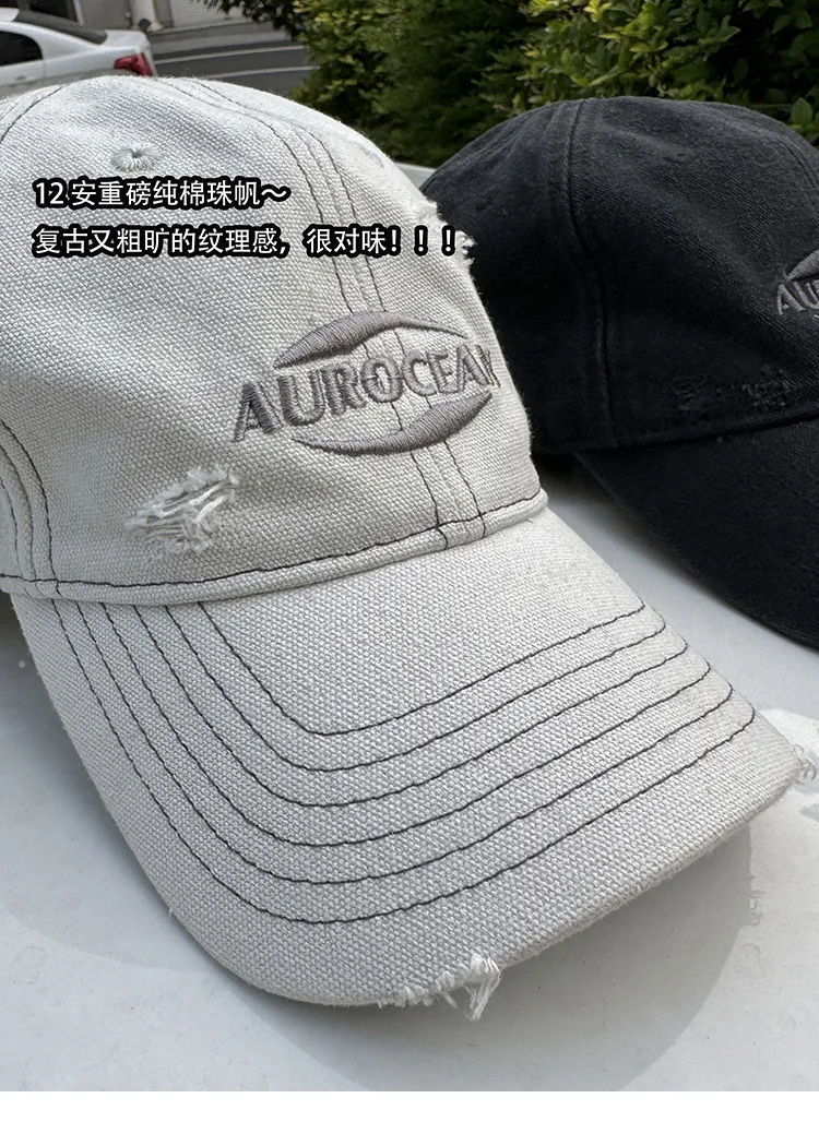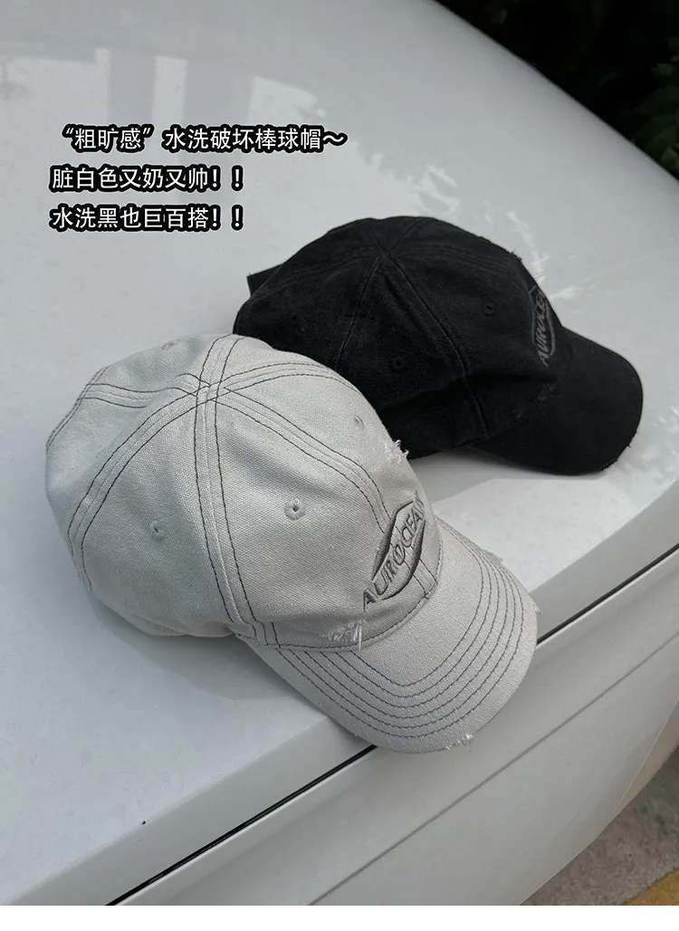 AUROCEAN 水洗破壞 刺繡LOGO 加深加大頭圍 棒球帽(髒白色/水洗黑色)