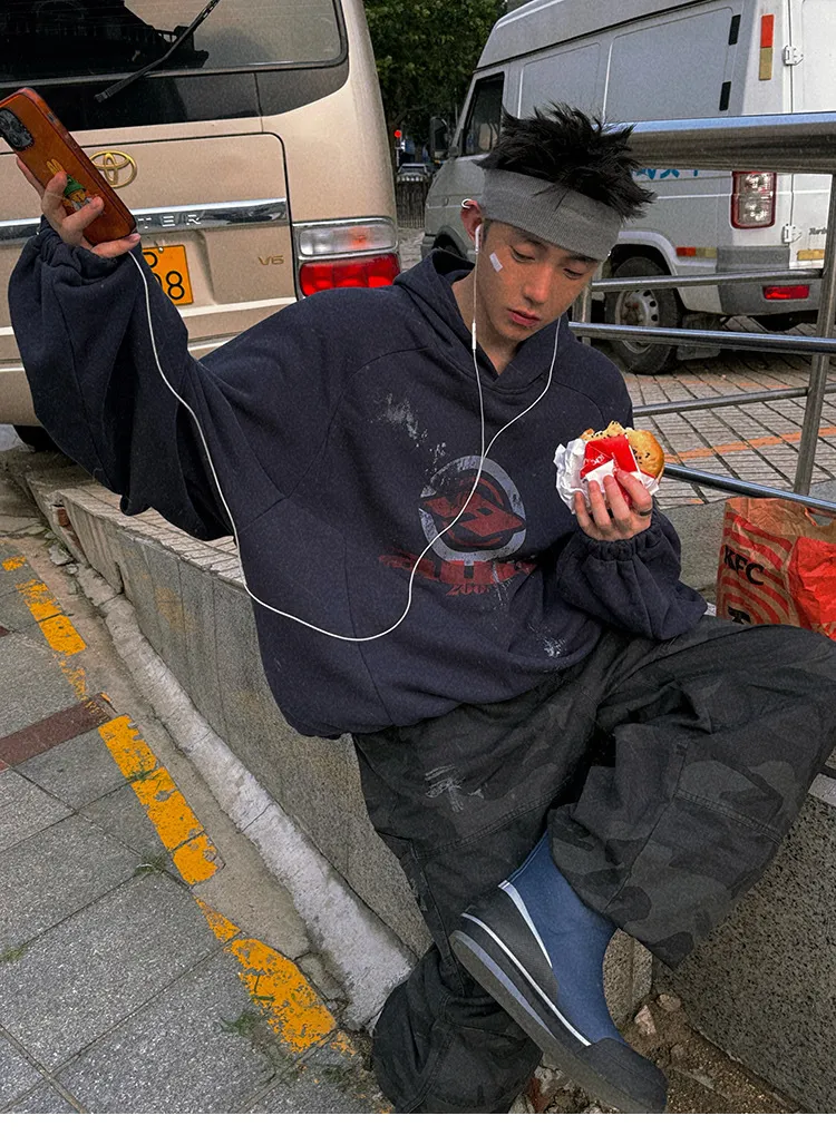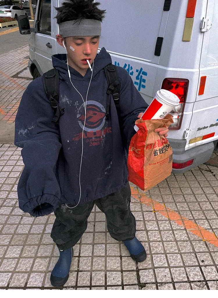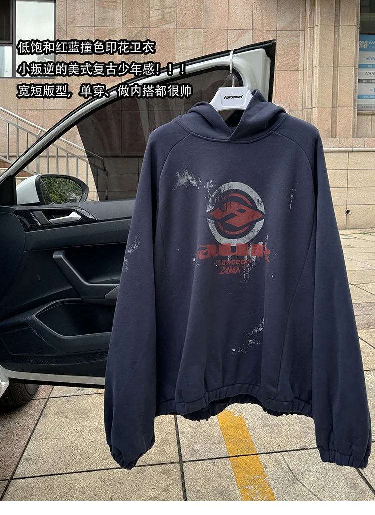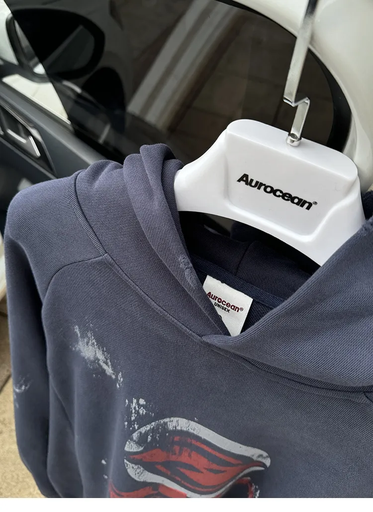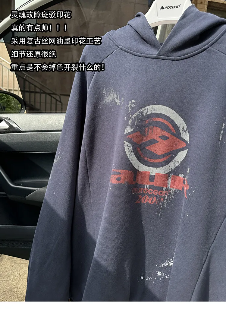 AUROCEAN 故障印花 水洗破壞 寬短 帽踢(水洗灰色)