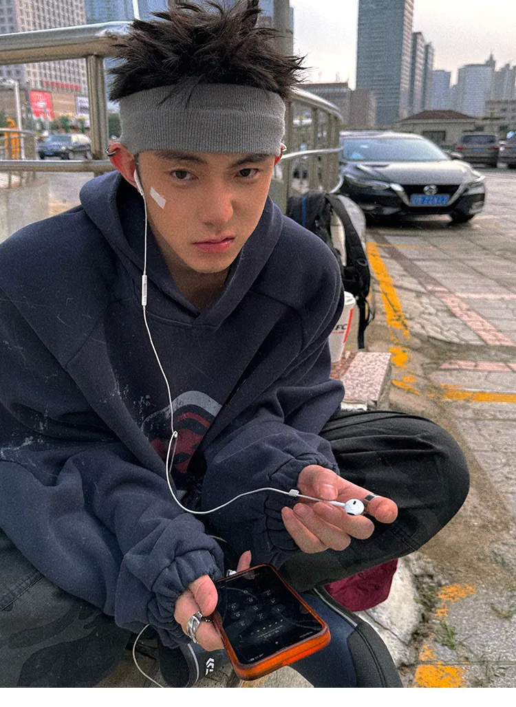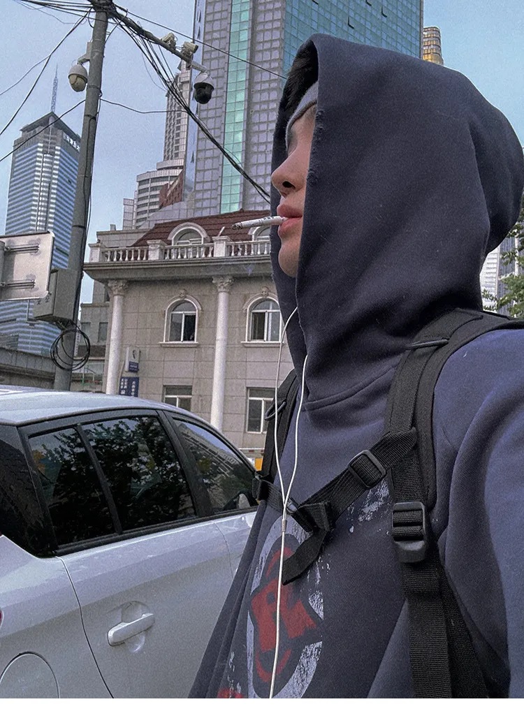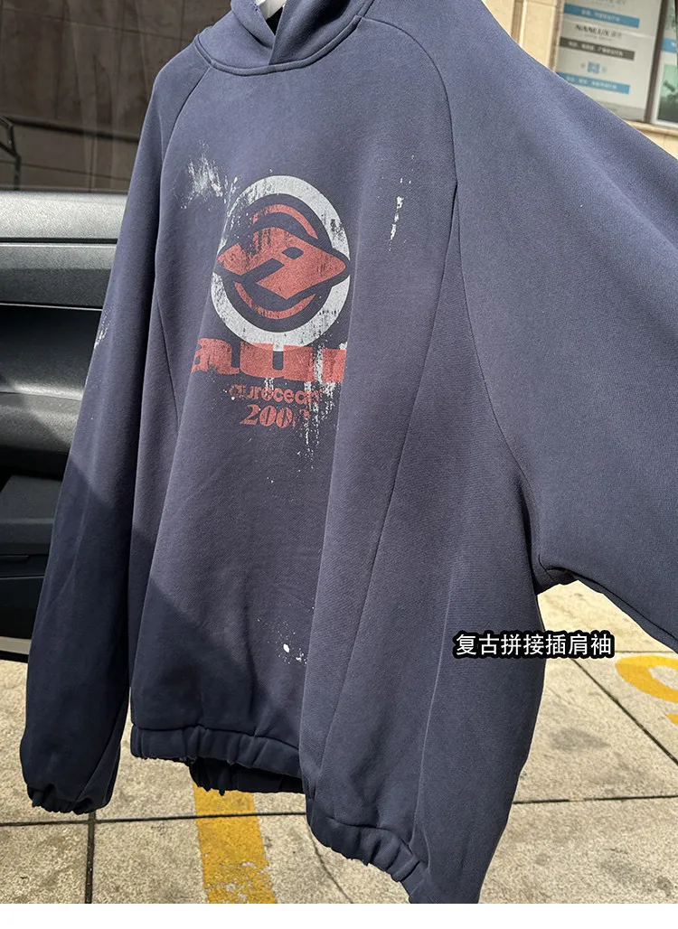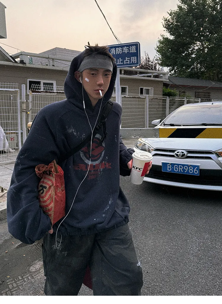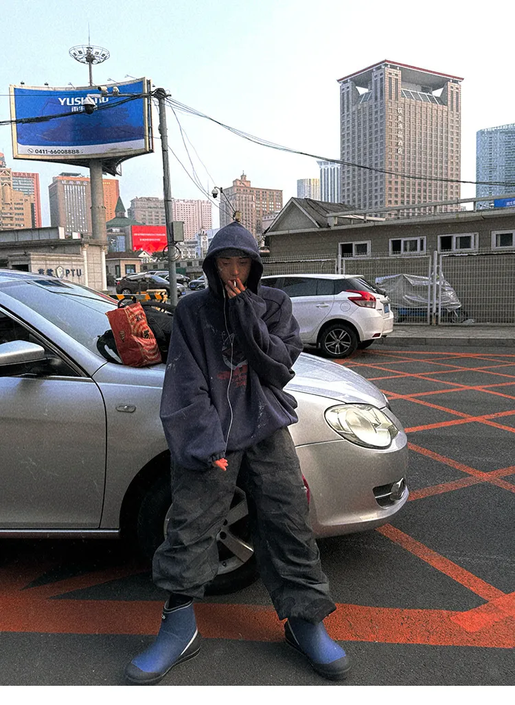 AUROCEAN 故障印花 水洗破壞 寬短 帽踢(水洗灰色)