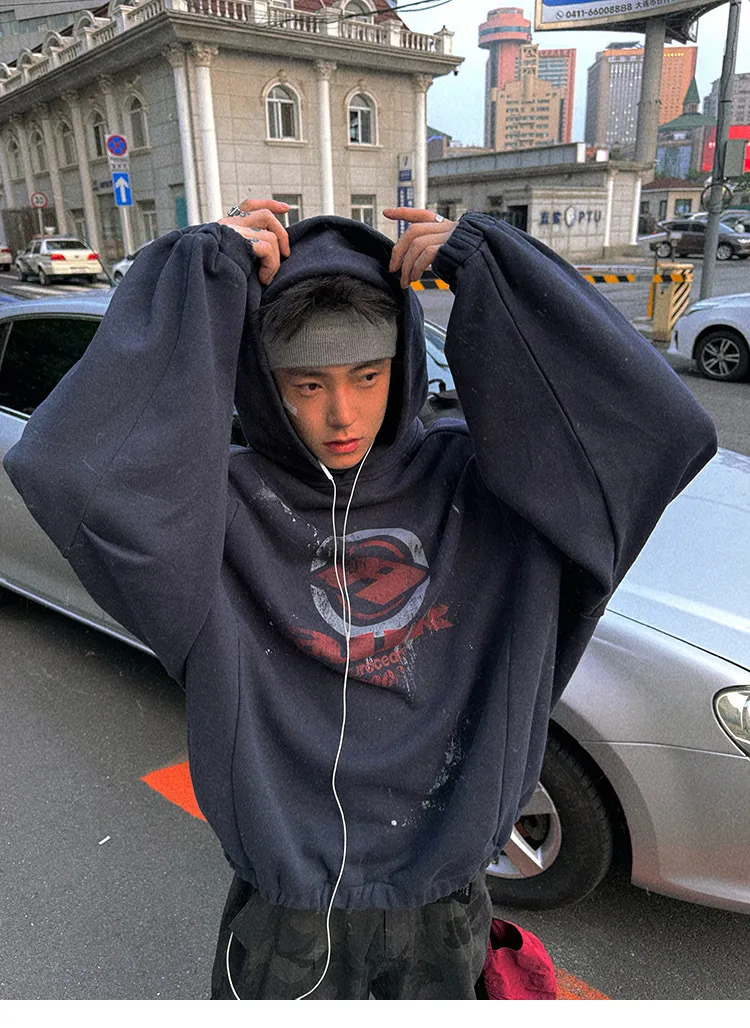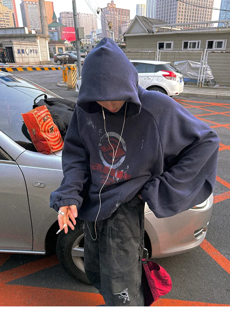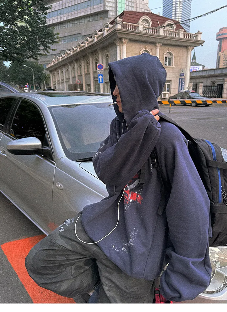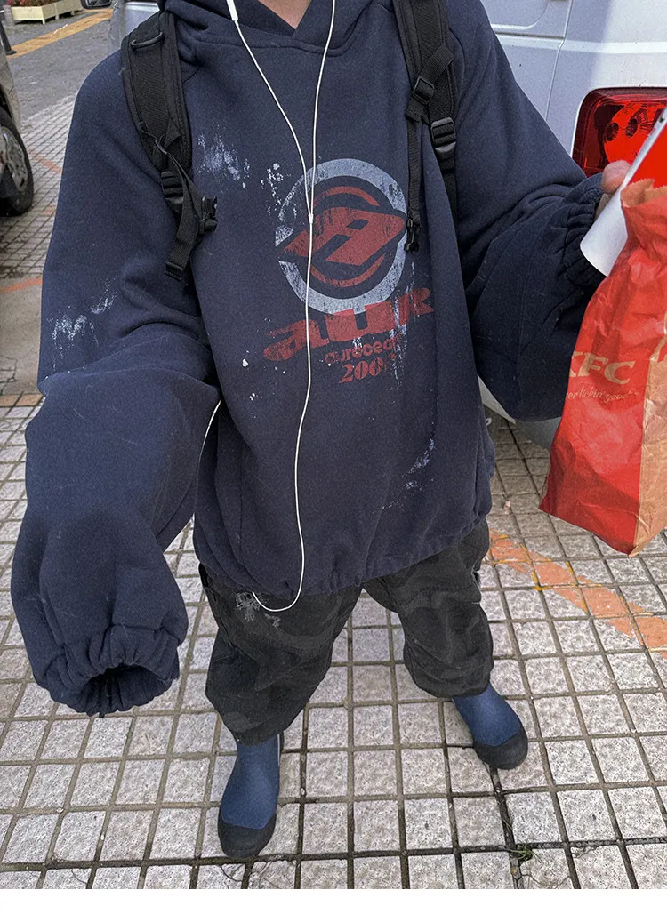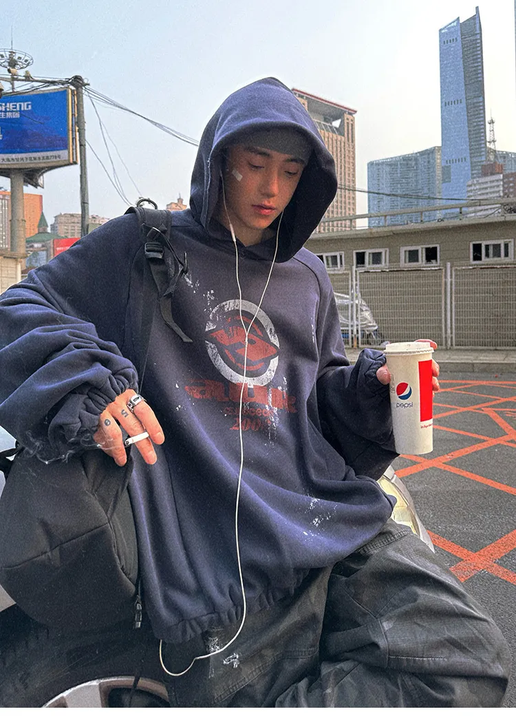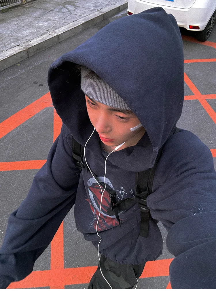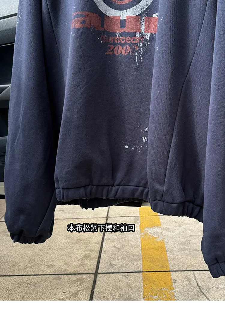 AUROCEAN 故障印花 水洗破壞 寬短 帽踢(藏青色)