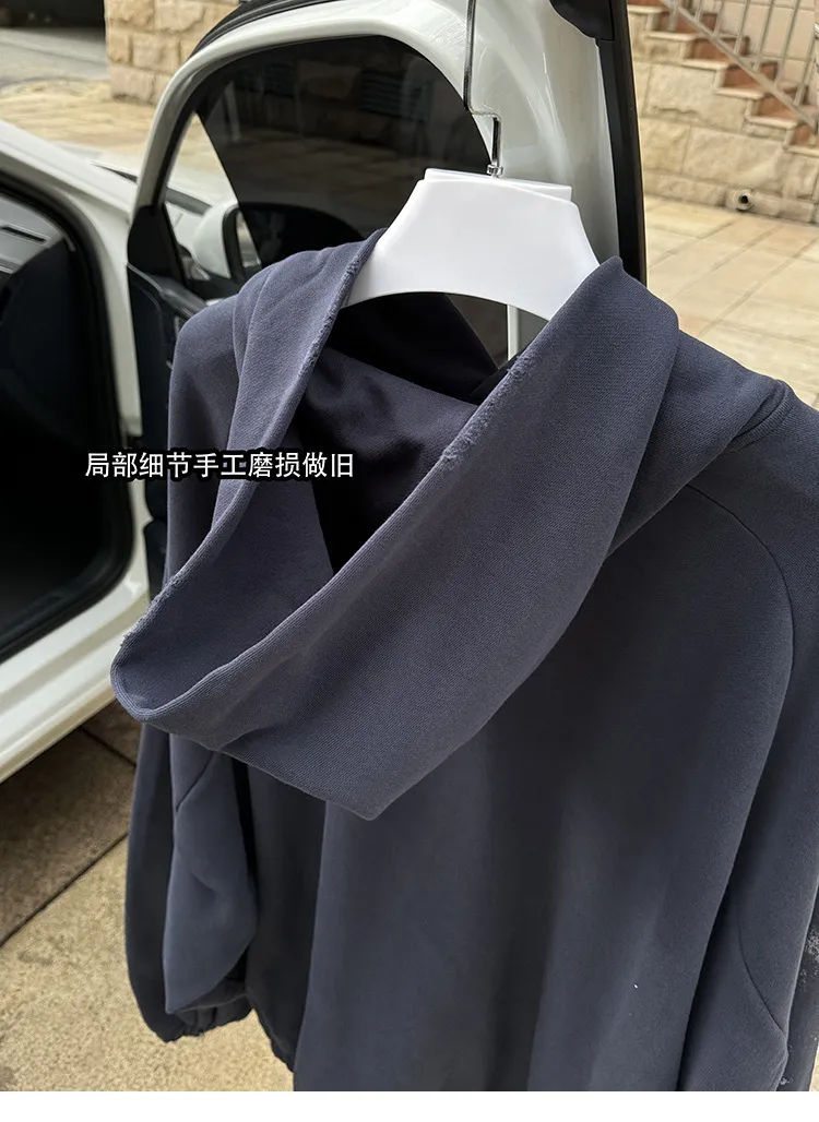 AUROCEAN 美式男孩 假兩件拼接 刺繡LOGO 重磅小高領 大學踢(深灰色)