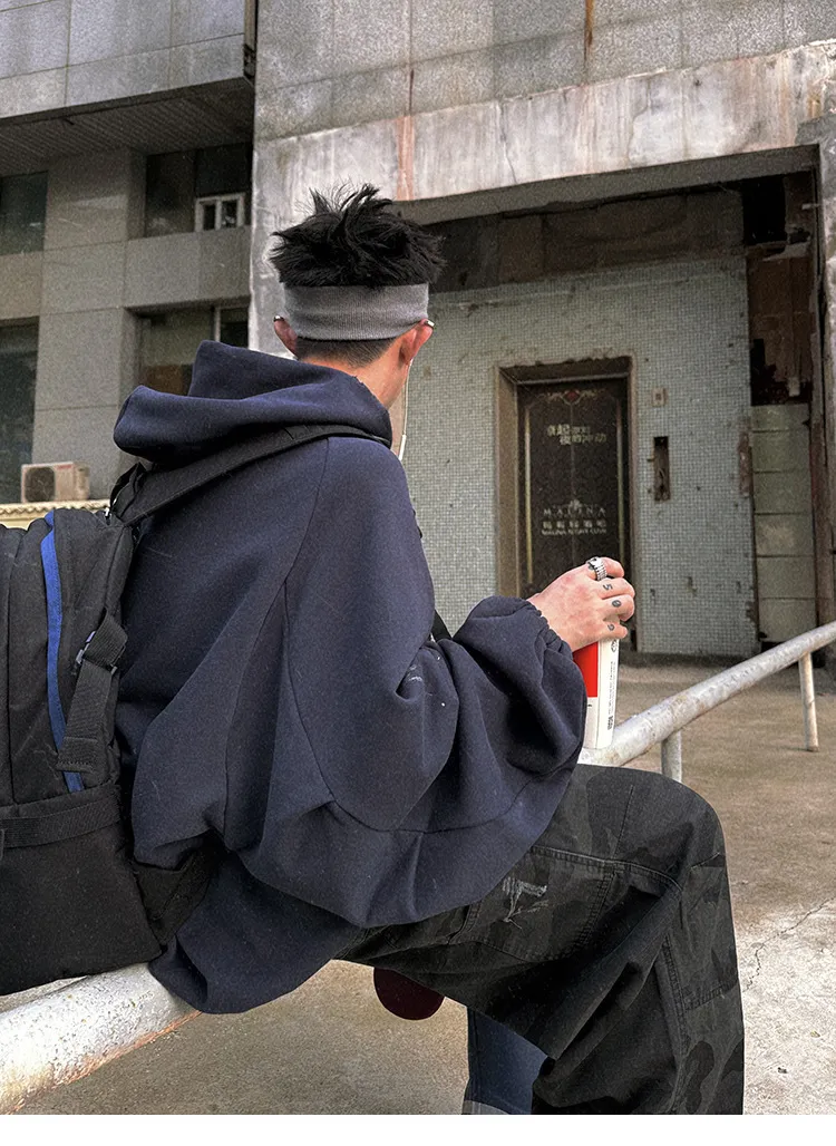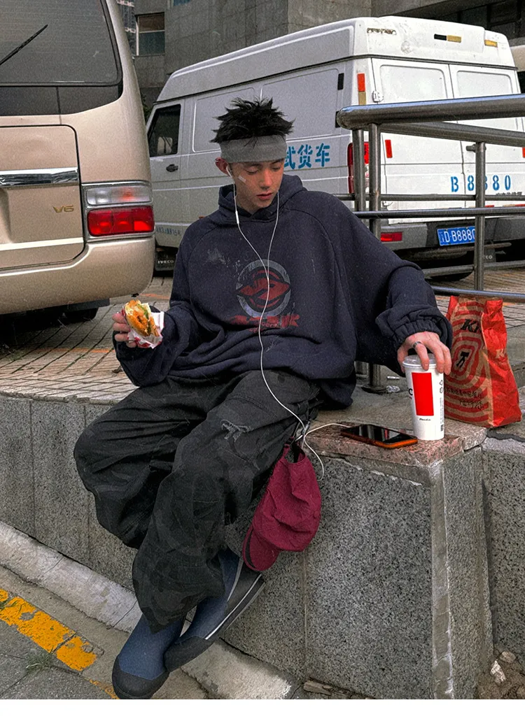 AUROCEAN 故障印花 水洗破壞 寬短 帽踢(水洗黑色)