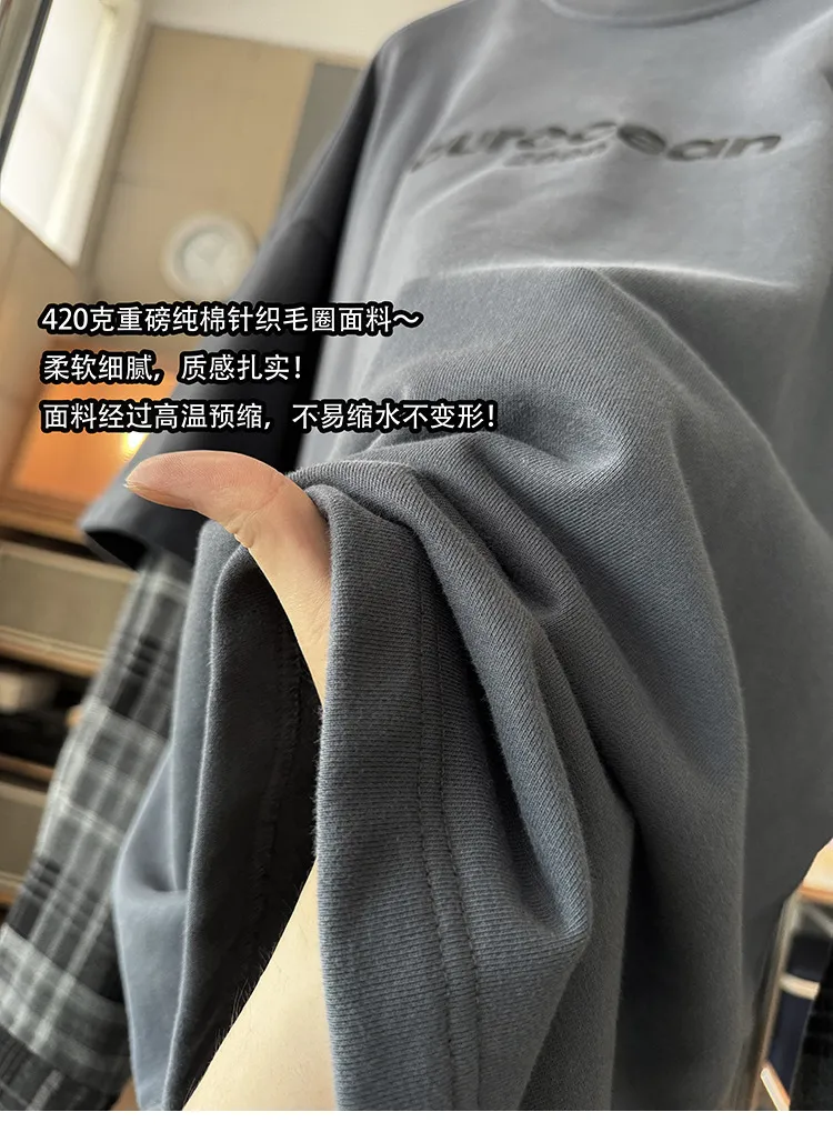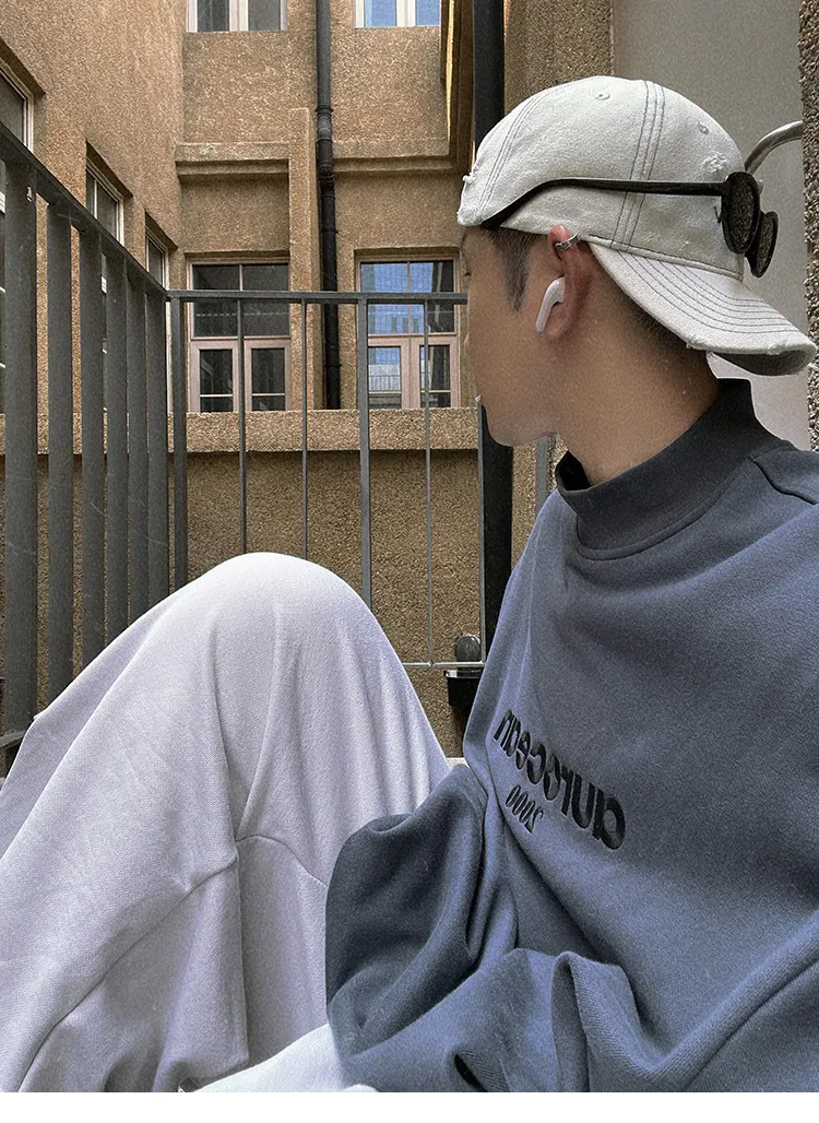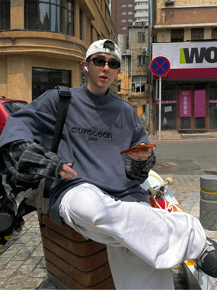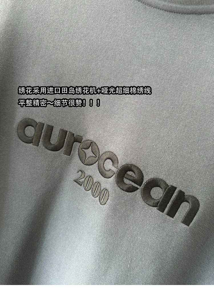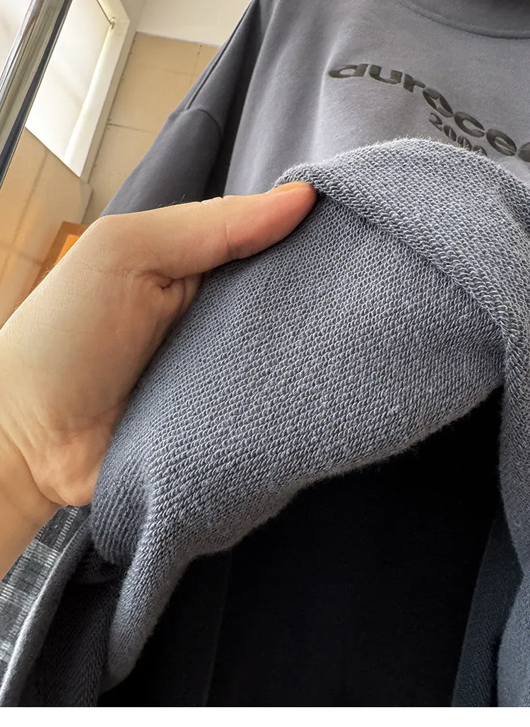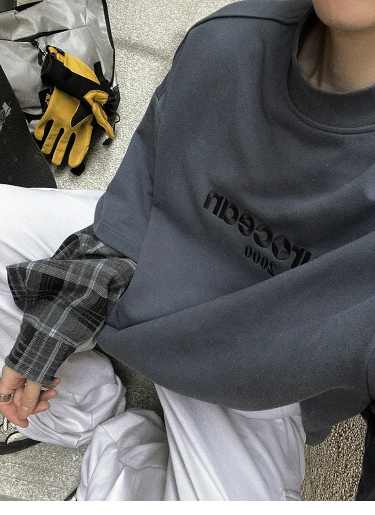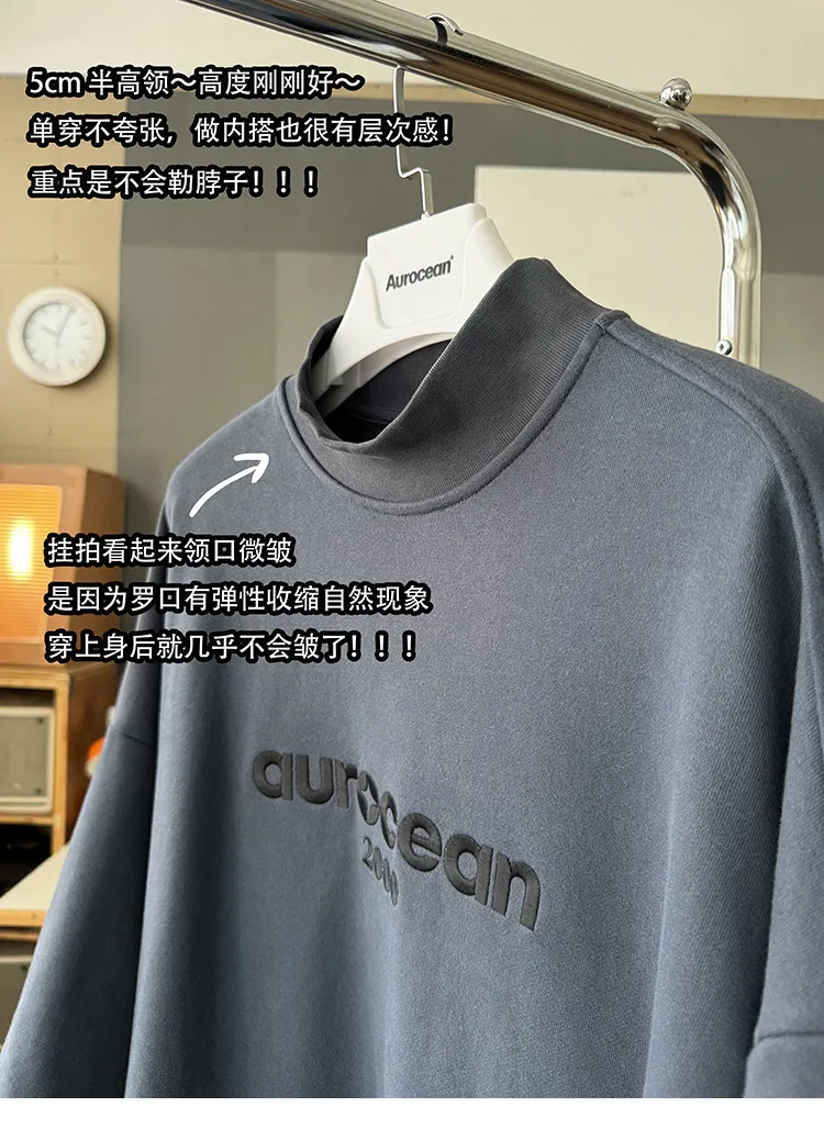 AUROCEAN 美式男孩 假兩件拼接 刺繡LOGO 重磅小高領 大學踢(深灰色)