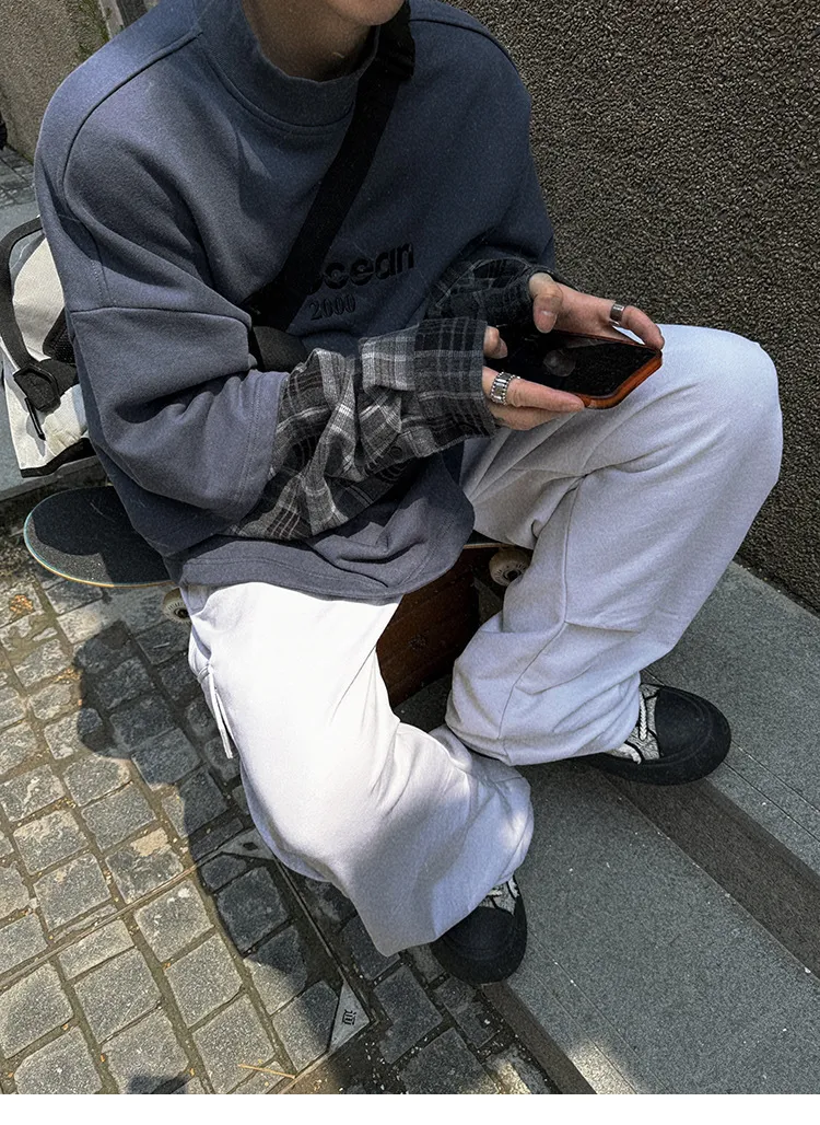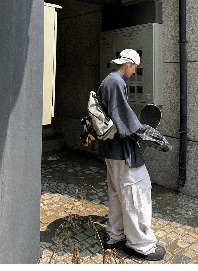 AUROCEAN 立體收褶 大口袋 400G重磅 棉褲 闊腿褲 (冷鐵灰色)