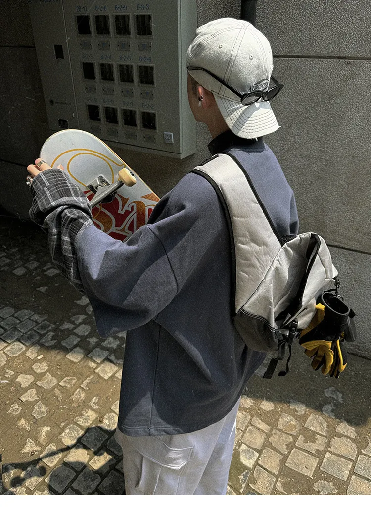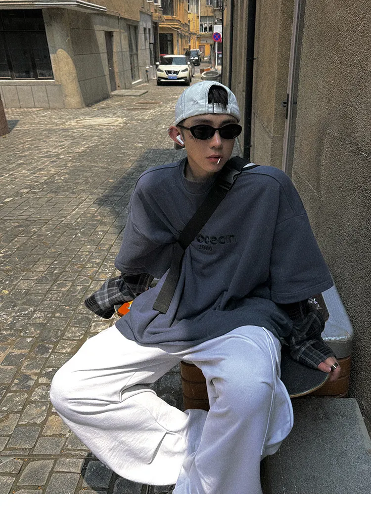 AUROCEAN 故障印花 水洗破壞 寬短 帽踢(水洗灰色)