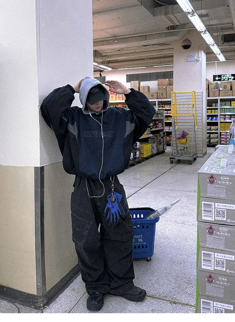 AUROCEAN 故障印花 水洗破壞 寬短 帽踢(水洗黑色)