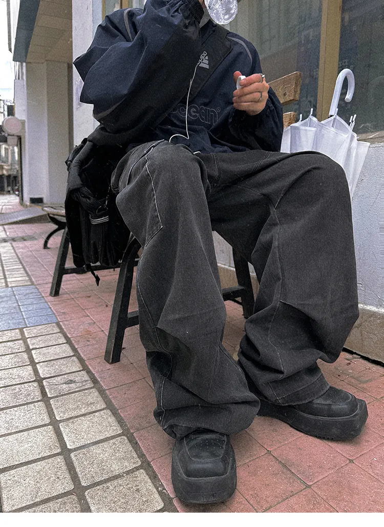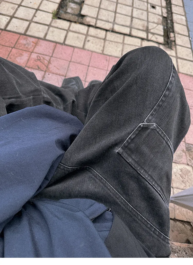 ARGUE REMAKE感 拼接 水洗 廓形 牛仔褲 (黑色)