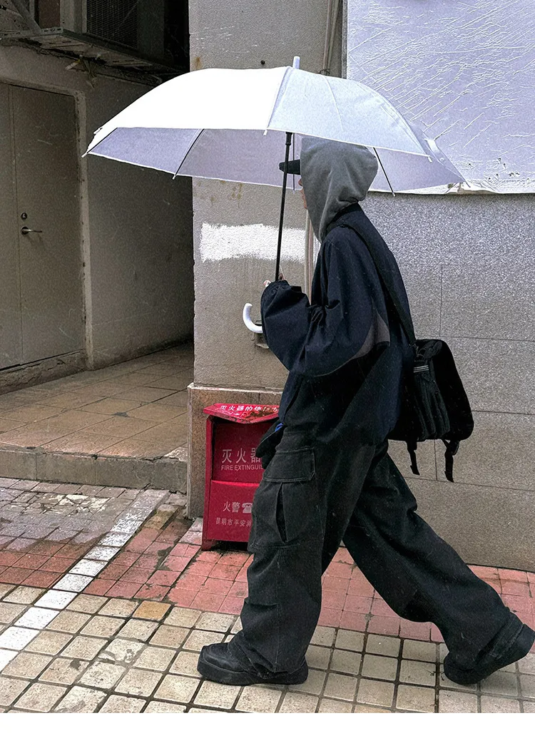 AUROCEAN 復古邊條 堆疊感 解構拼接 尼龍 運動褲 長褲 (黑色)