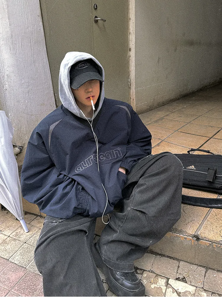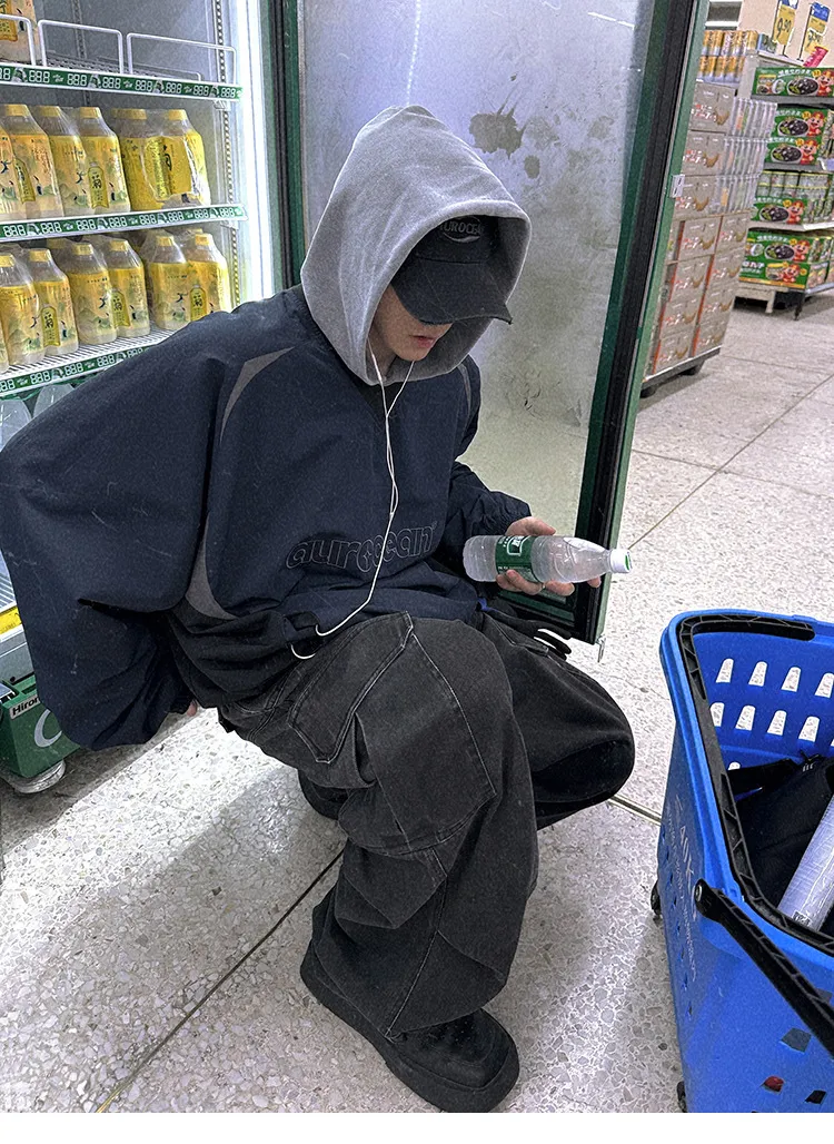 AUROCEAN 故障印花 水洗破壞 寬短 帽踢(水洗灰色)