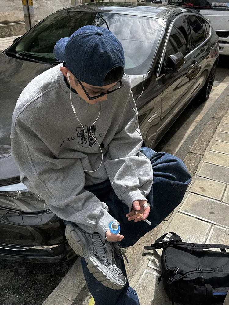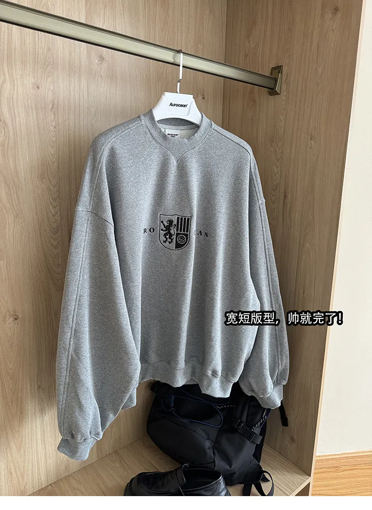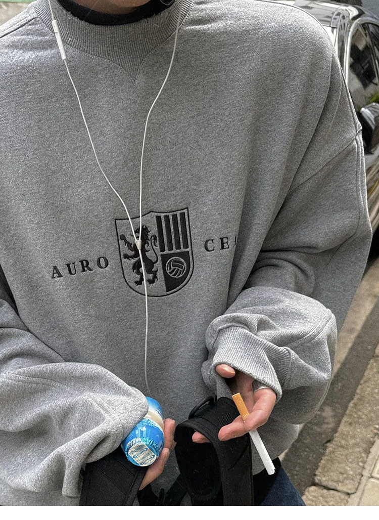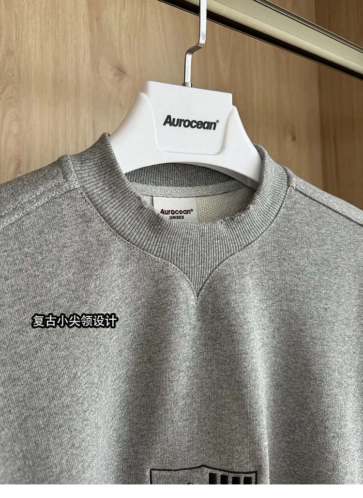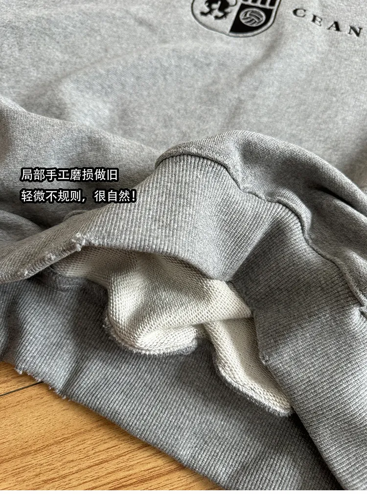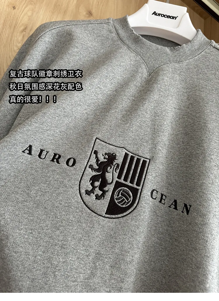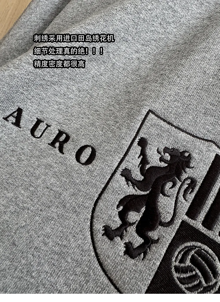 AUROCEAN 復古學院 刺繡 480G 重磅 破壞 大學踢(花灰色)