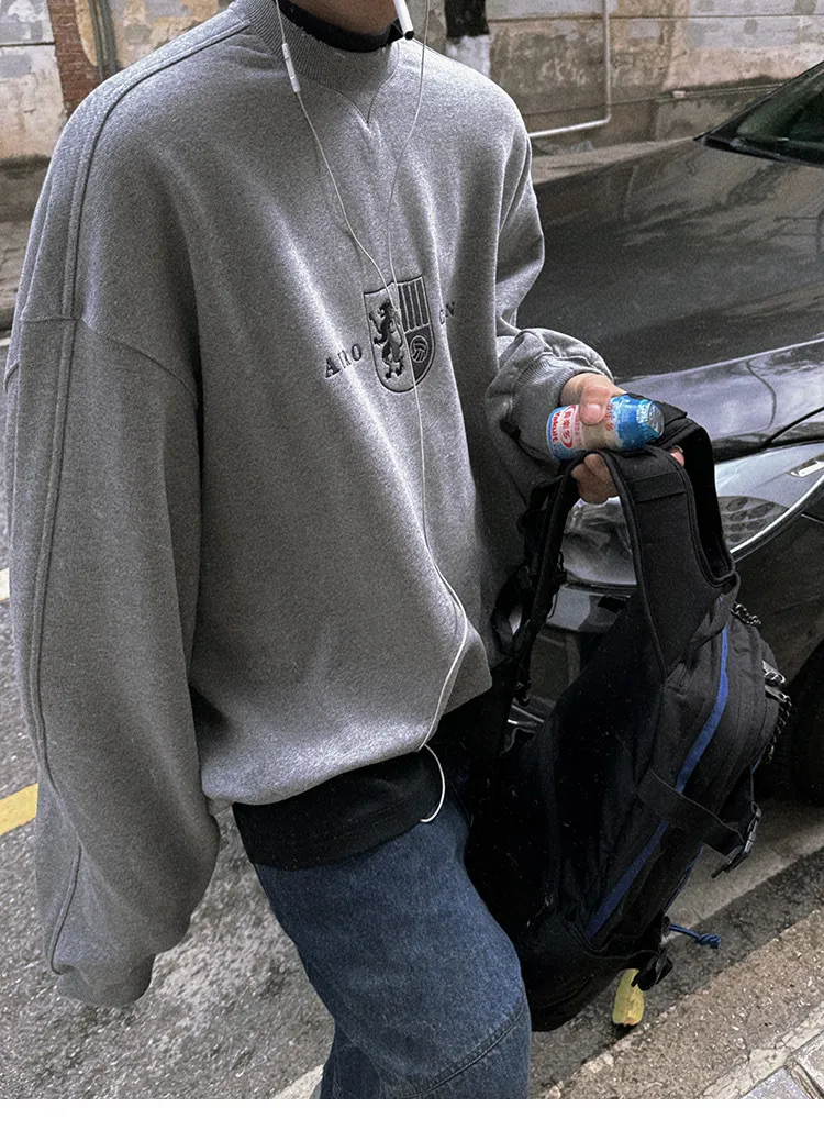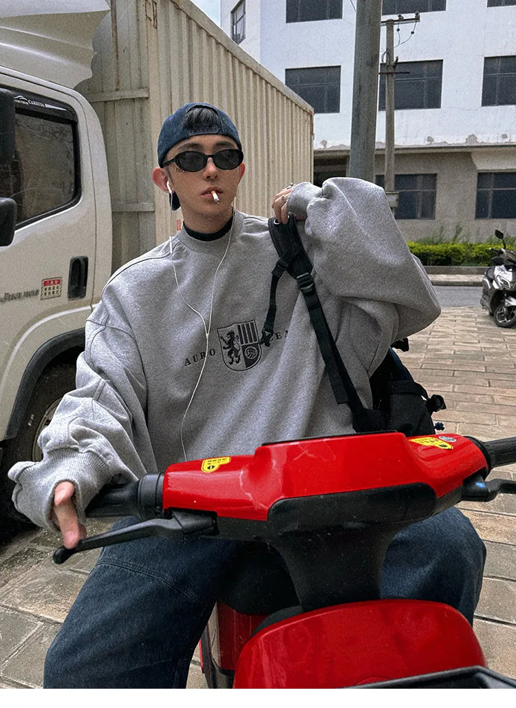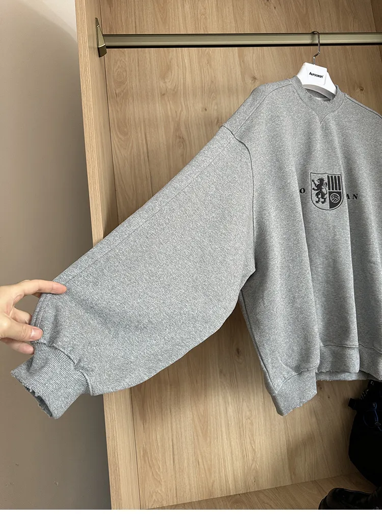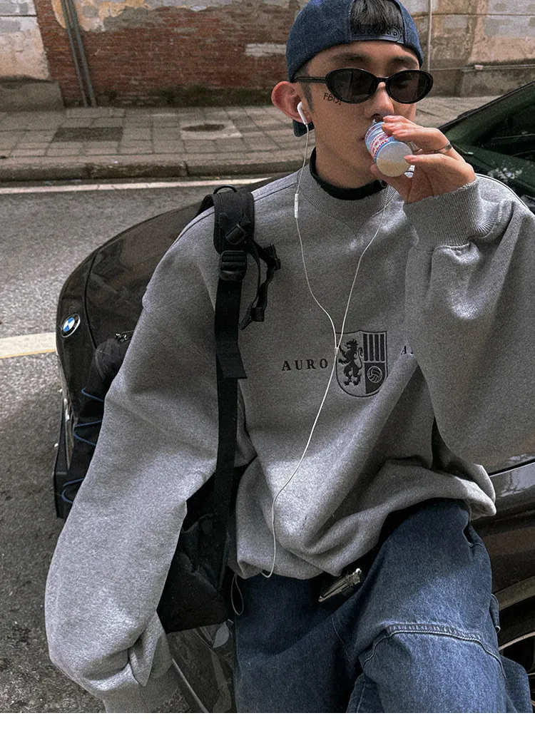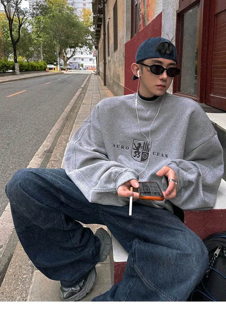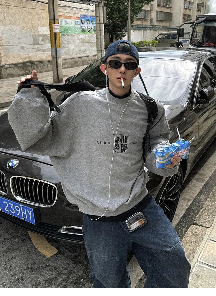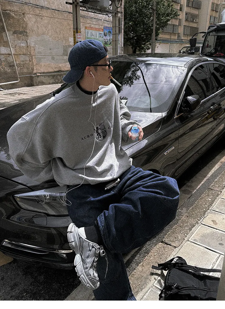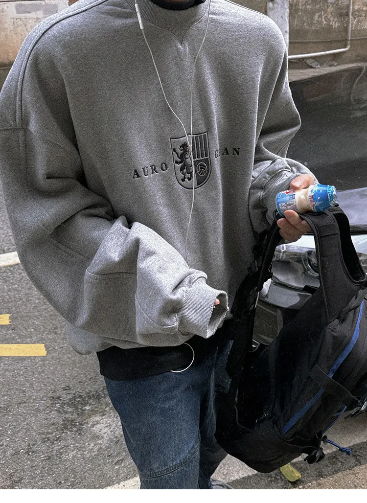 AUROCEAN 復古學院 刺繡 480G 重磅 破壞 大學踢(花灰色)