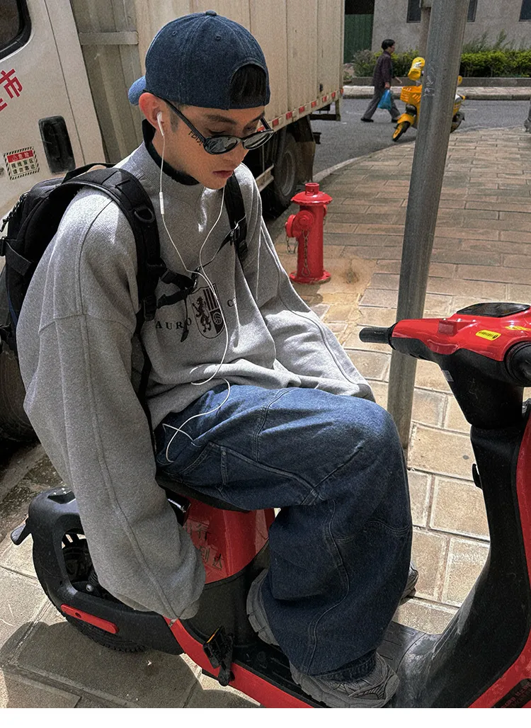 AUROCEAN 水洗舊感 灰藍 立體剪裁 牛仔褲 (灰藍色)