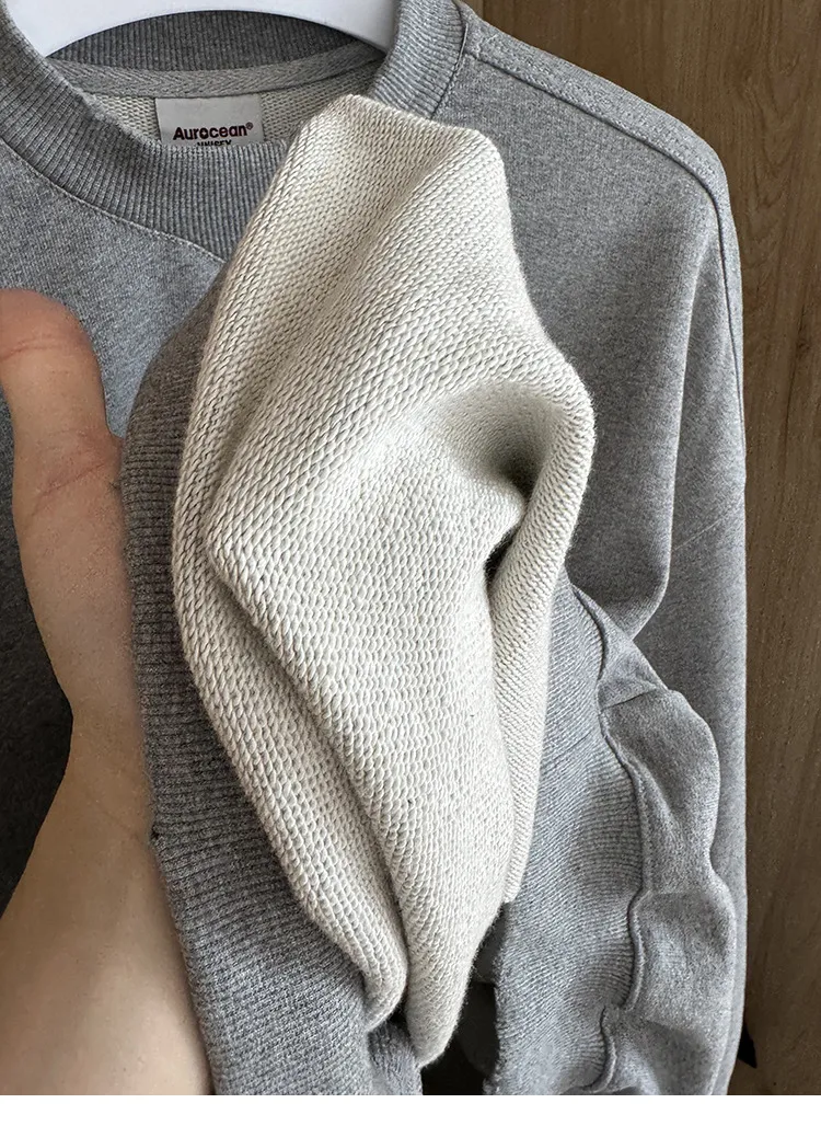 AUROCEAN 加厚 水洗純棉 學院風 廓形 襯衫(灰白色)