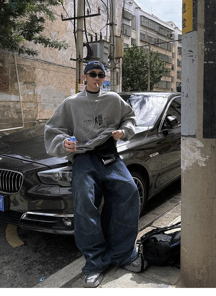 AUROCEAN 復古學院 刺繡 480G 重磅 破壞 大學踢(藏青色)