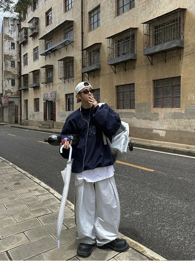 AUROCEAN 古著感 尼龍拼接 短寬 防風外套(藏青色)