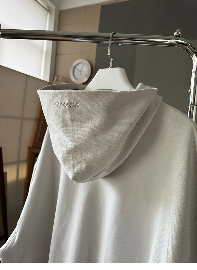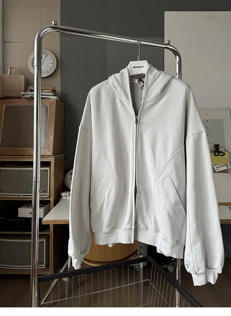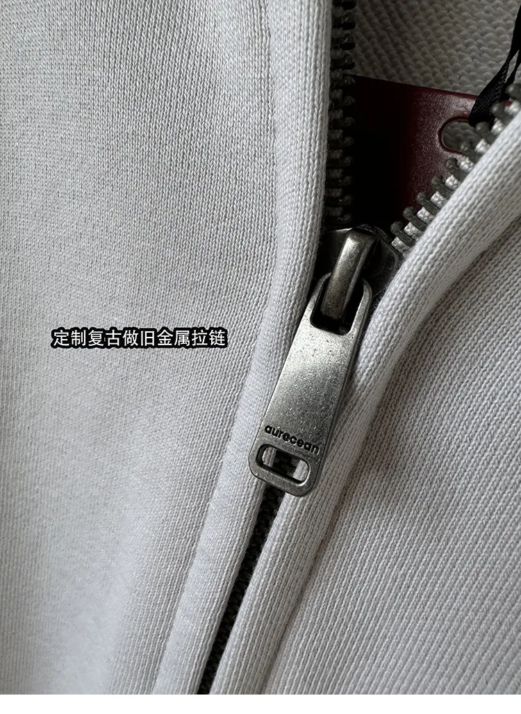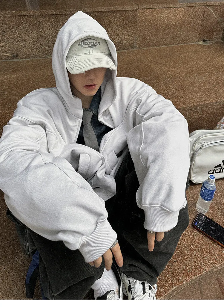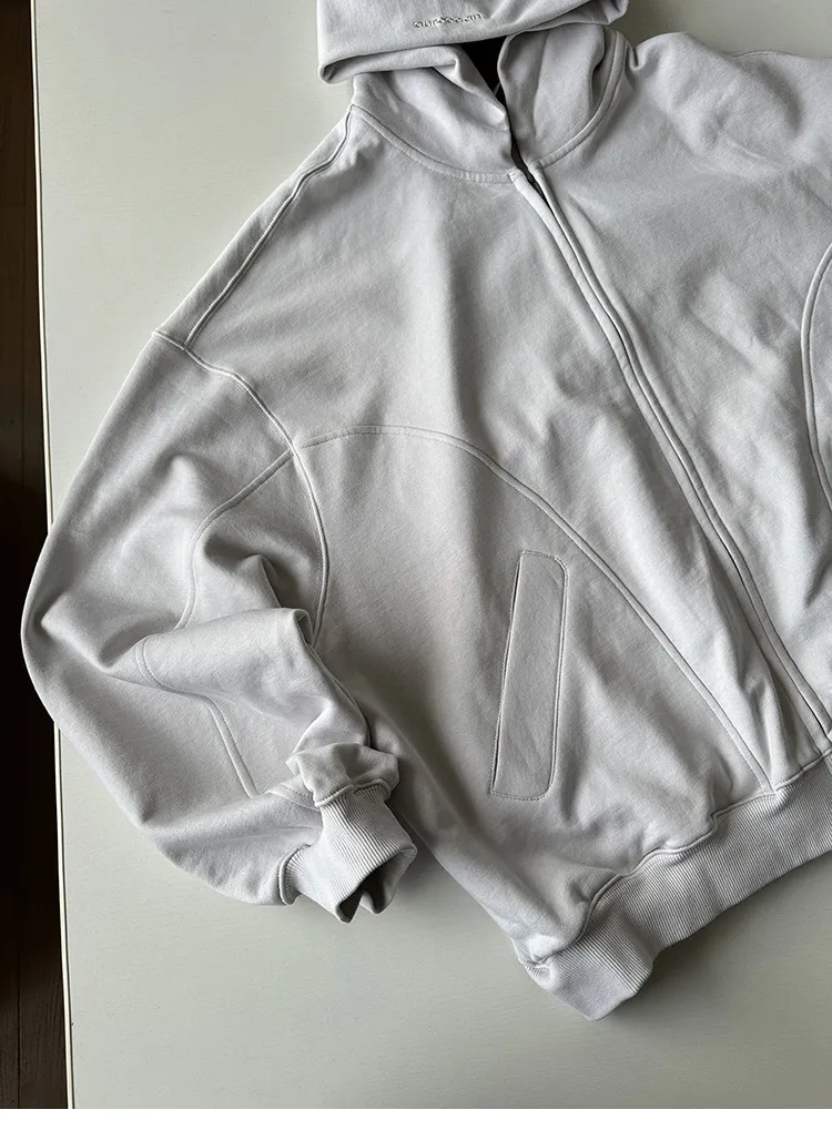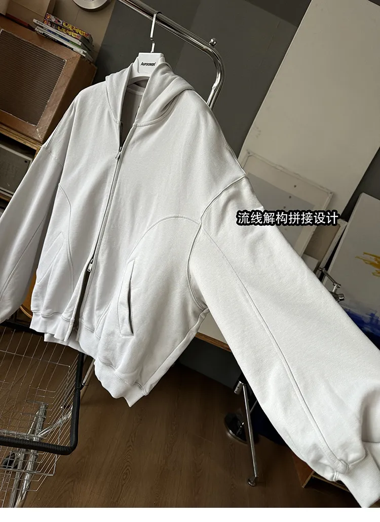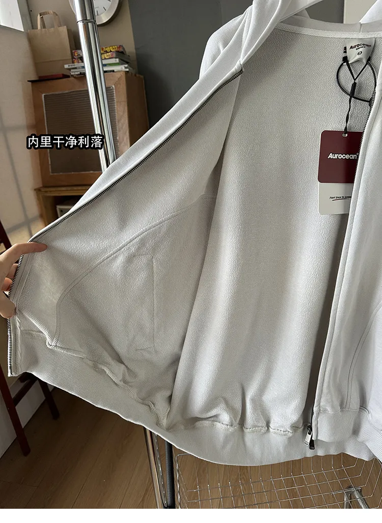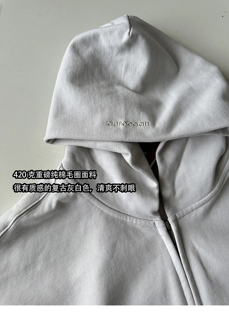 AUROCEAN 灰白 寬短連帽 重磅 純棉解構 外套(灰白色)